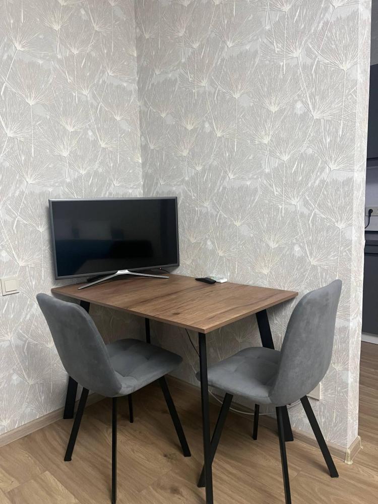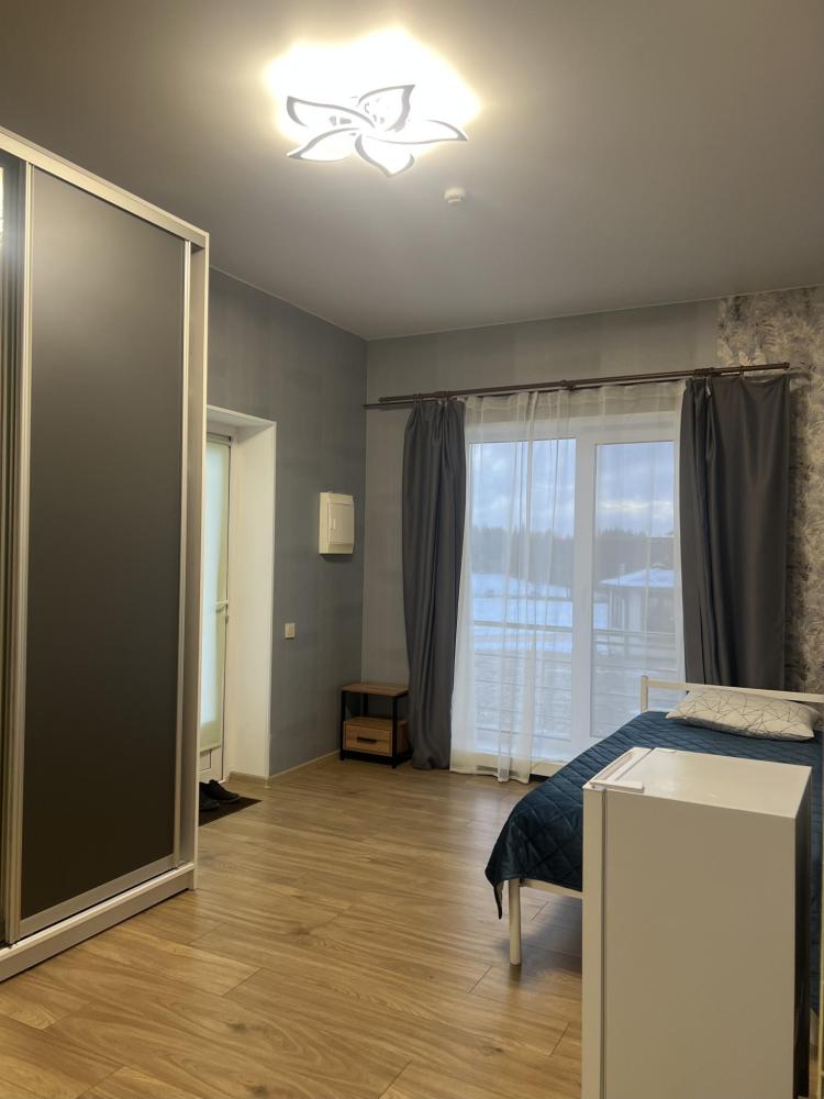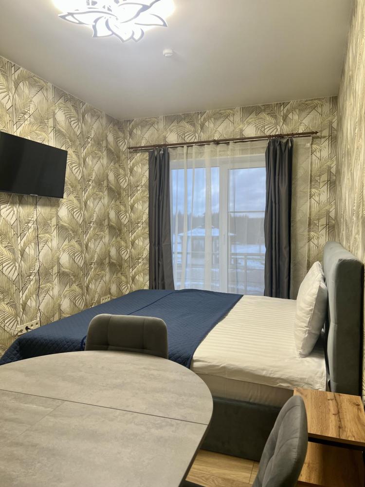 Номер студия общей площадью 25 кв.м. для размещения до 4 гостей. За окном — живописный вид из окна. Летом взгляд ласкают зелёные просторы поля и таинственная глубина леса. Зимой же пейзаж преображается: перед вами раскинется белоснежная равнина, а деревья, укутанные снежным покрывалом, создадут атмосферу зимней сказки. В номере есть всё для комфортного проживания: - большая кровать King size; - прикроватная тумбочка; - чистое постельное бельё; - шкаф с вешалками и халатами; - телевизор; - Wi-Fi; - кондиционер; Кухня: - обеденный стол и стулья; - чайник; - кофе и чай. Санузел: - душевая кабина; - туалет; - зеркало с подсветкой; - фен; - полотенца для двух человек; - одноразовые средства личной гигиены (зубная паста, щётка, шампунь, мыло, тапочки).