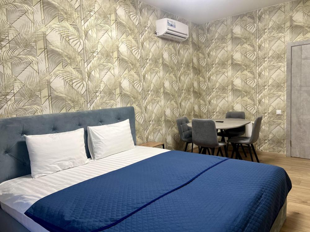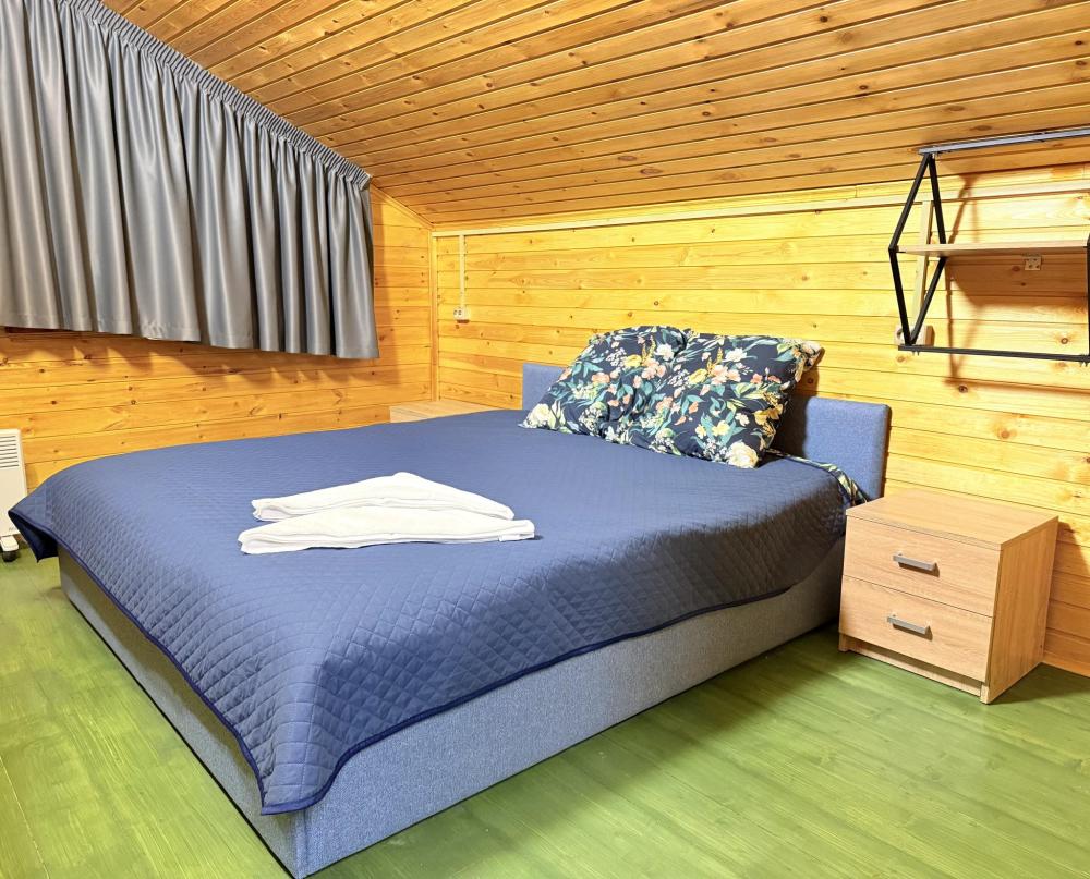 Комфортабельный номер, рассчитан на двух человек, с возможностью размещения двух дополнительных мест, с живописным видом — из окон открываются умиротворяющие пейзажи: зелёное поле, густой лес и ухоженная придомовая территория. Отдельный вход обеспечивает приватность и удобство прибытия в любое время. В номере есть всё для комфортного проживания: - большая кровать King size; - прикроватные тумбочки; - чистое постельное бельё; - шкаф с вешалками и халатами; - телевизор; - Wi-Fi; - кондиционер; Кухня: - обеденный стол и стулья; - чайник; - кофе и чай. Санузел: - ванная; - душевая кабина; - туалет; - зеркало с подсветкой; - фен; - полотенца для двух человек; - одноразовые средства личной гигиены (зубная паста, щётка, шампунь, мыло, тапочки).