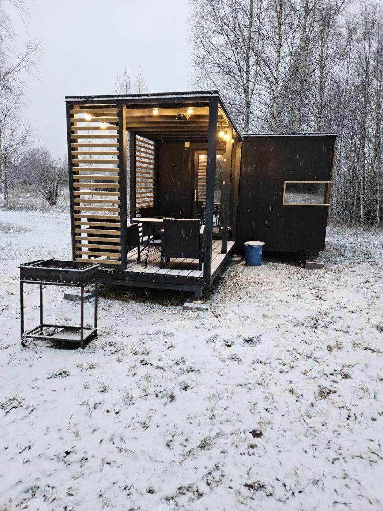 Датский Хюгге «Мини» Компактный уютный домик с крытой террасой. Внутри двуспальная кровать, а также санузел с биотуалетом и рукомойником. Максимальная вместимость 2 человека. Удобства: биотуалет (как на яхте) и умывальник внутри дома. Модуль полностью электрифицирован: внутри дома розетки на 220В и полноценное освещение. WiFi в общих зонах бесплатно.