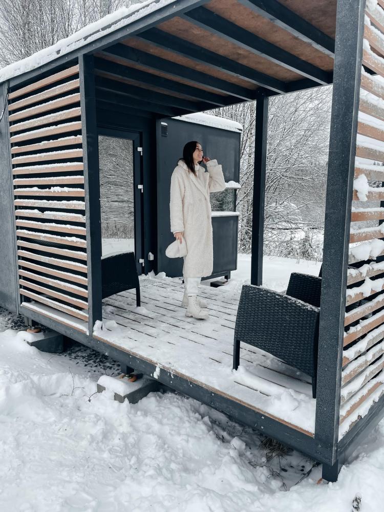 Датский Хюгге «Стандарт» Комфортабельный уютный домик с крытой террасой. Внутри двуспальная кровать, а также раскладывающийся диван. Также есть санузел с биотуалетом и рукомойником. Максимальная вместимость 4 человека. Удобства: биотуалет (как на яхте) и умывальник внутри дома. Модуль полностью электрифицирован: внутри дома розетки на 220В и полноценное освещение. WiFi в общих зонах бесплатно Площадь дома 18 кв м.