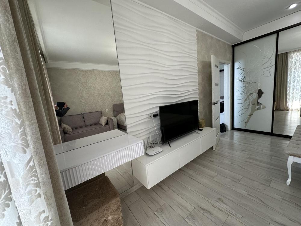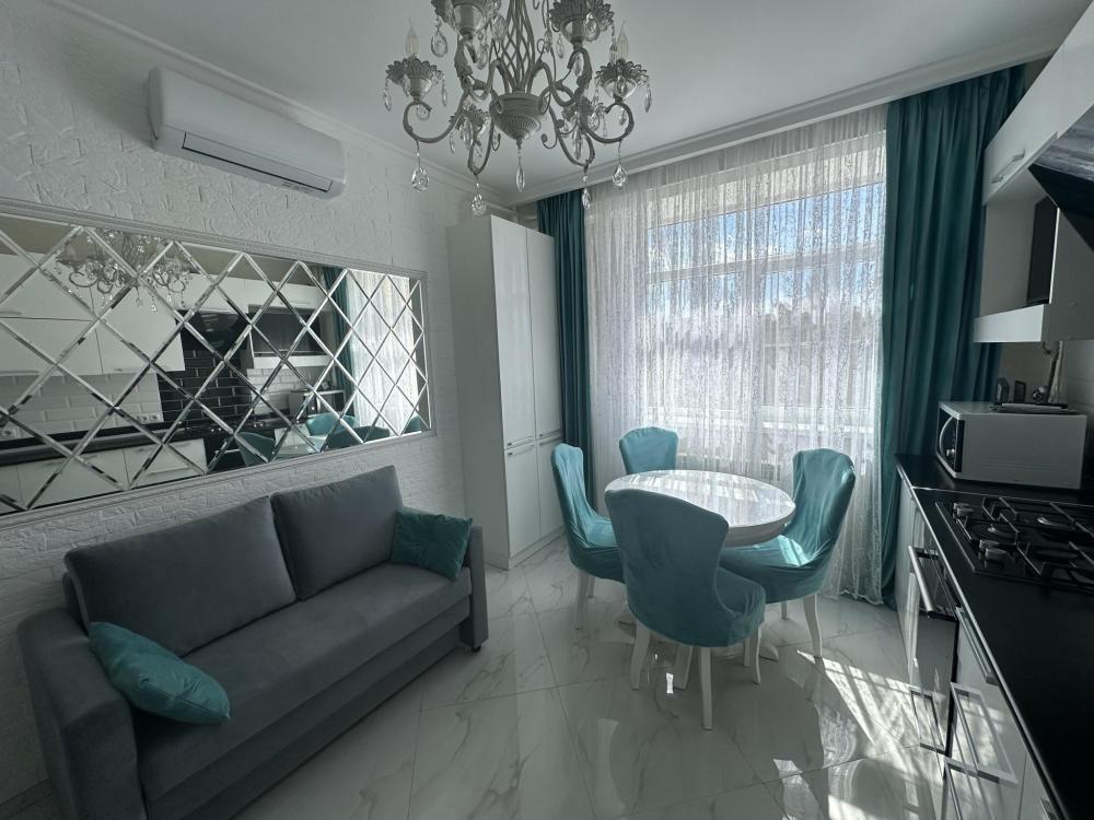 Уютная 1 комнатная квартира от собственника в новом доме с дизайнерским ремонтом и мебелью. В квартире тёплые полы, 2 сплит системы, 2 смарт телевизора, стиральная машина и посудомоечная машина, WiFi.