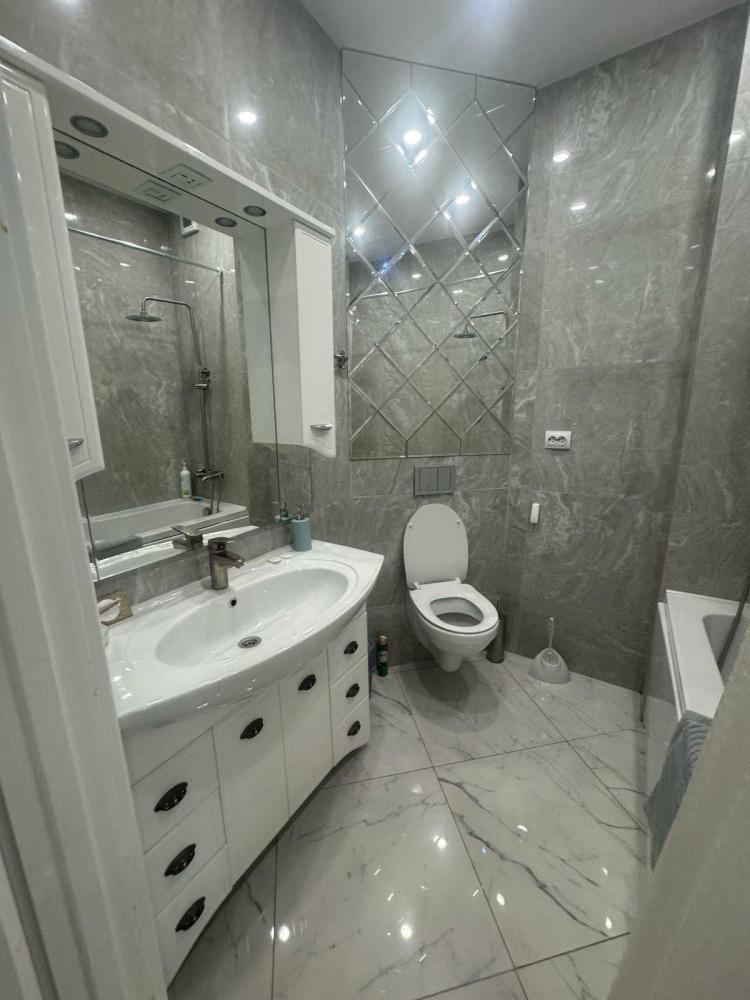 Уютная 1 комнатная квартира в новом доме с дизайнерским ремонтом и мебелью. В квартире тёплые полы, 2 сплит системы , 2 Смарт телевизора, стиральная машинка и посудомоечная машина, WiFi.