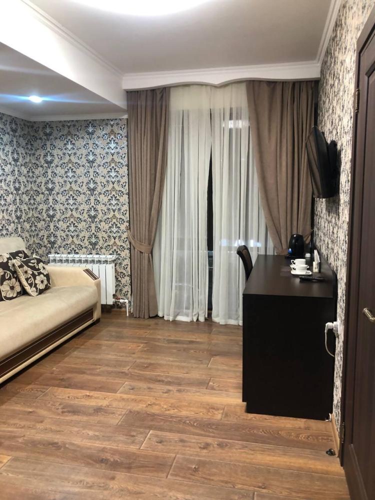 Номер категории "Стандарт" с 1-й двуспальной кроватью. Площадь 17-19 кв.м. В номере есть все необходимое ля комфортного отдыха и проживания: полотенца, банные принадлежности, зубной набор. Кондиционер, холодильник, телевизор. Чайный набор для приготовления чая и кофе, чайник и бутилированная вода.