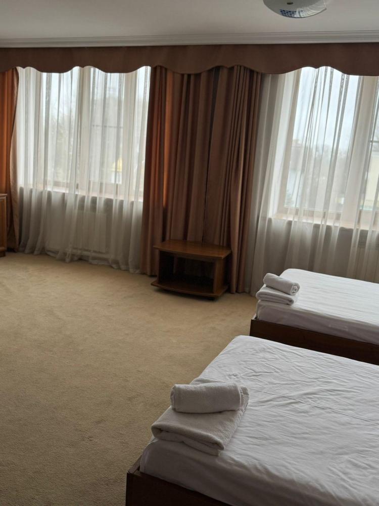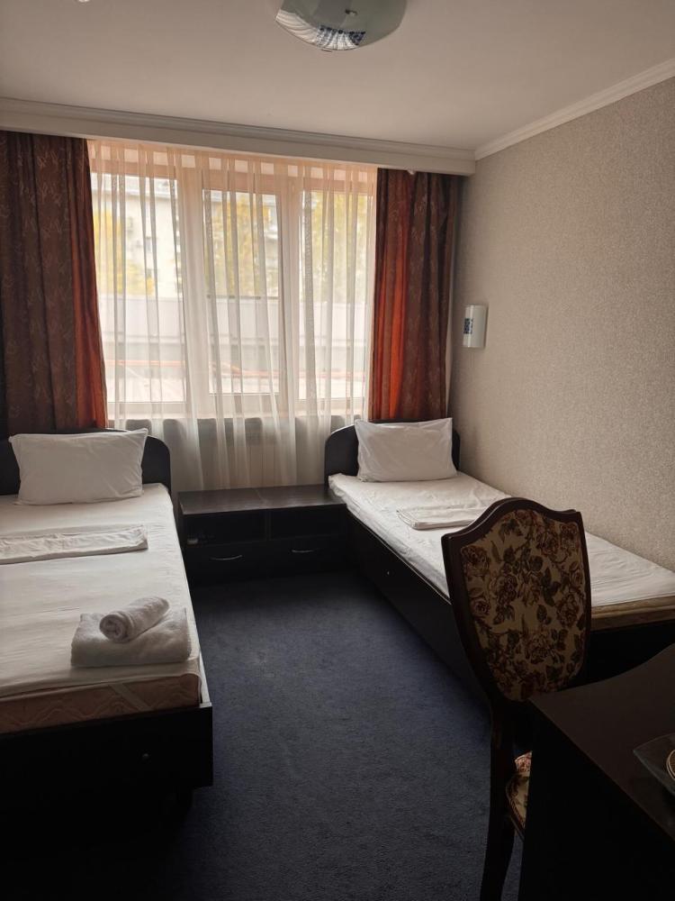 Две раздельные кровати, прикроватные тумбы, стол, стулья. Телевизор, холодильник, чайник в номере. Туалетные принадлежности, тапочки, халат. Фен предоставляется по требованию. Бесплатный Wi-Fi.