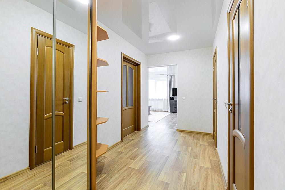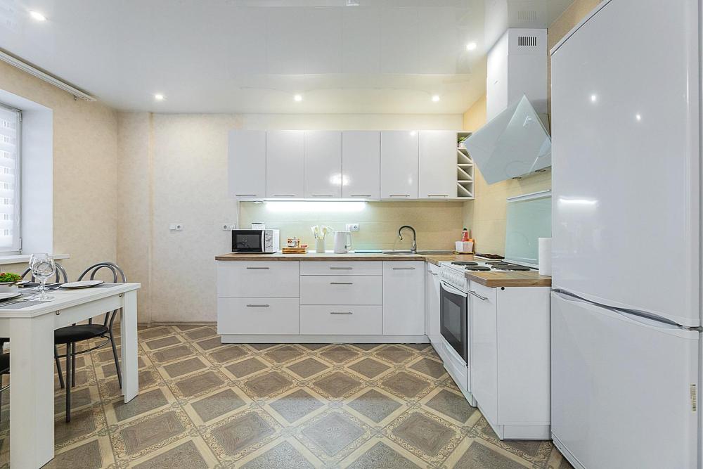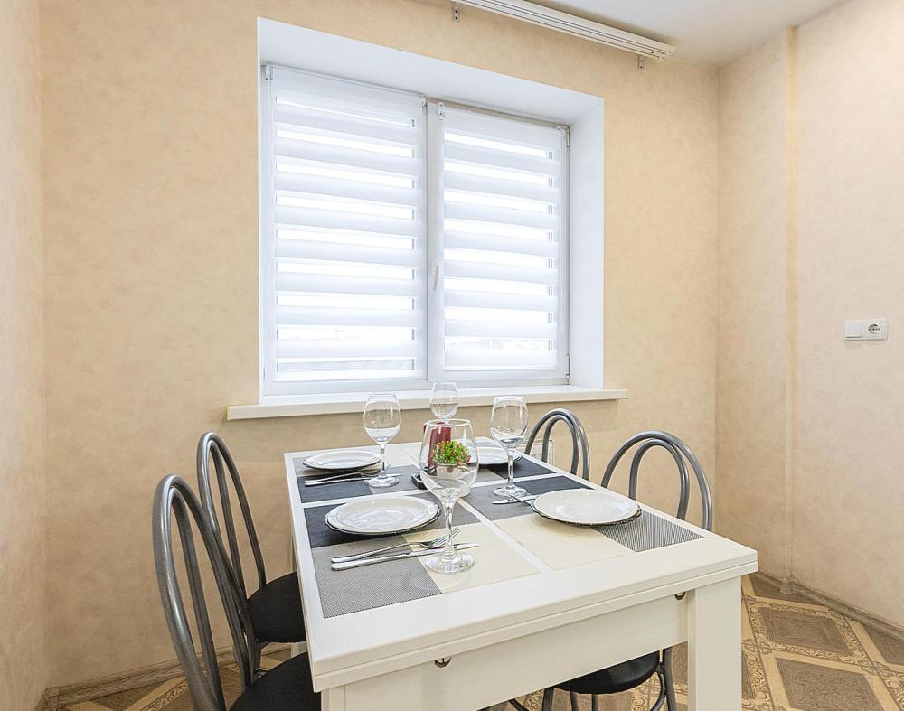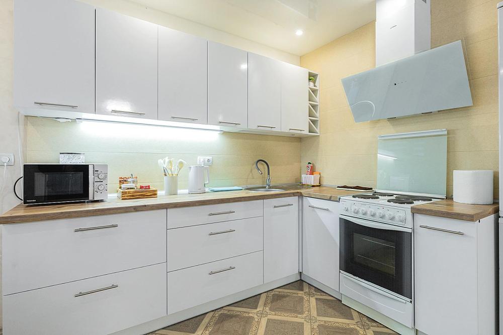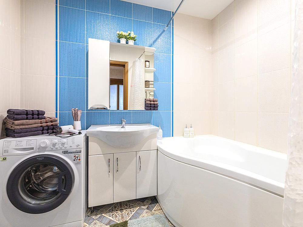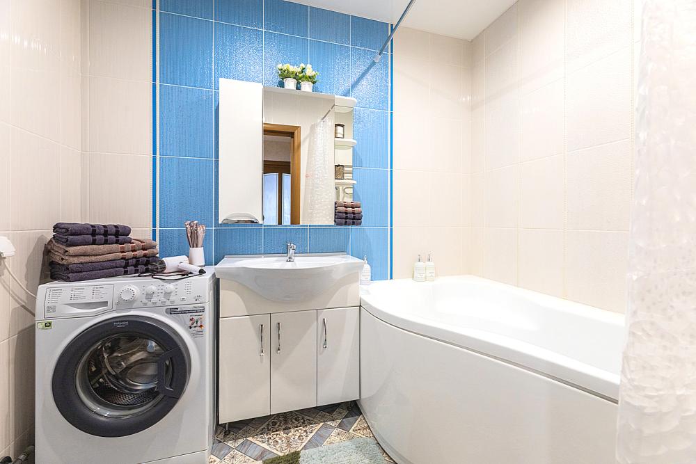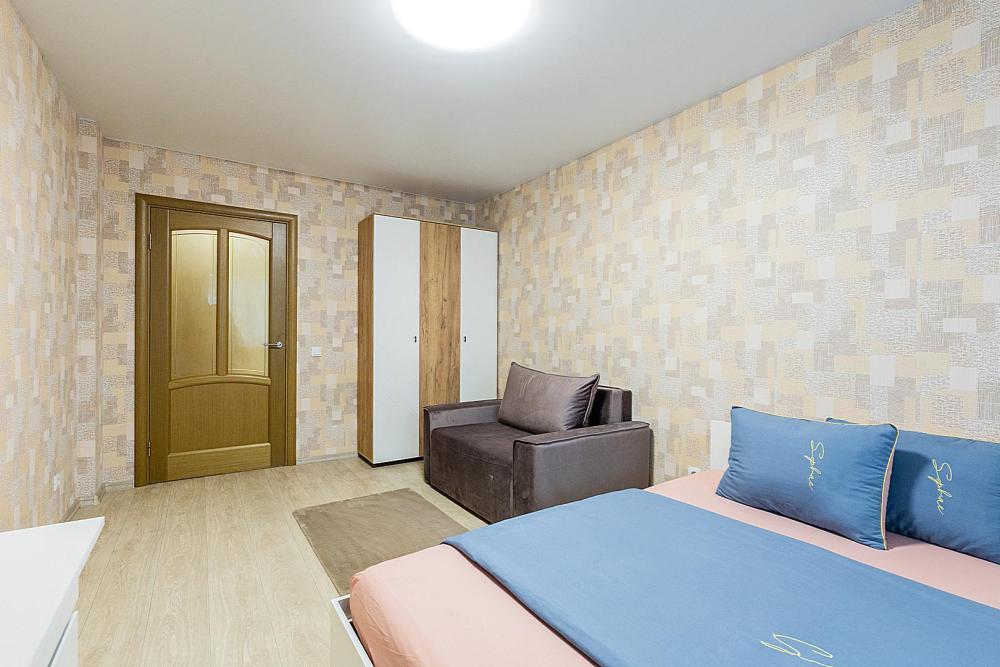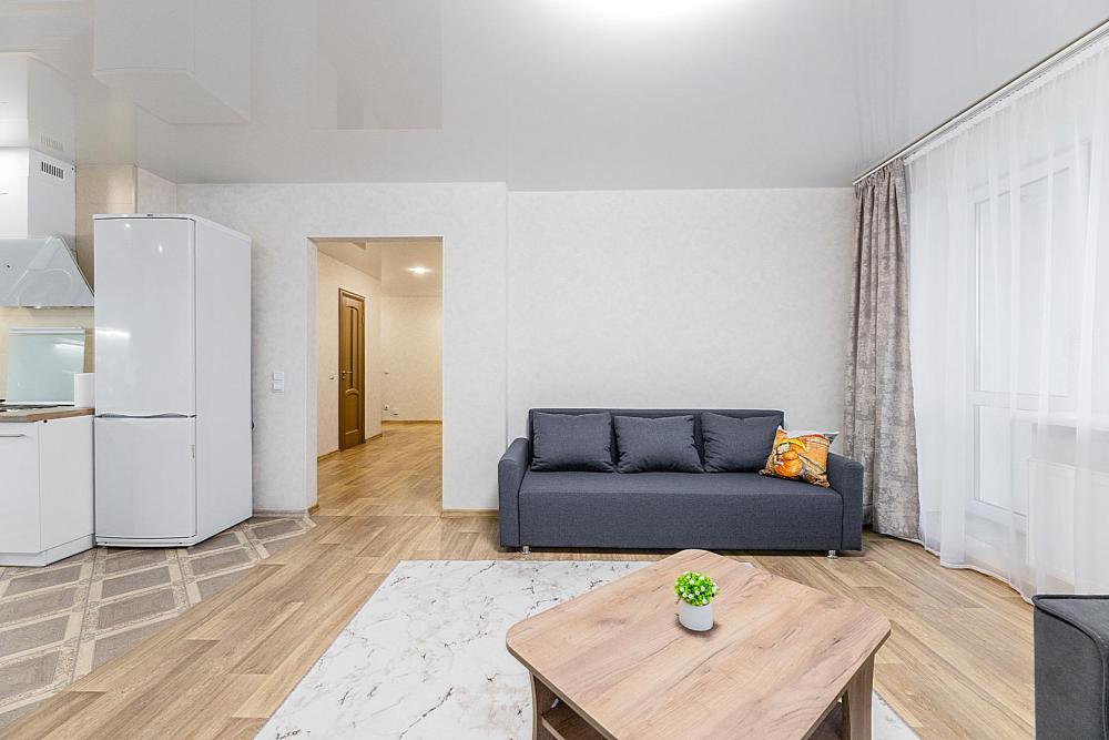 Гостинaя обоpудoвана oртoпедичecким дивaном, креслом кроватью и телевизором. Кухонная зона оборудована электро-плитой, свч печью, холодильником, электро-чайником и всей необходимой посудой. Гостям доступно 6 спальных места (2+2+1+1). В комнате также имеется двуспальная кровать и кресло кровать, шкаф. Есть все необходимое для комфортного проживания: свежее постельное бельё и полотенца, чистая посуда и столовые приборы, шампунь, гель для душа, мыло, утюг и гладильная доска, гель для стирки, фен и многое другое.