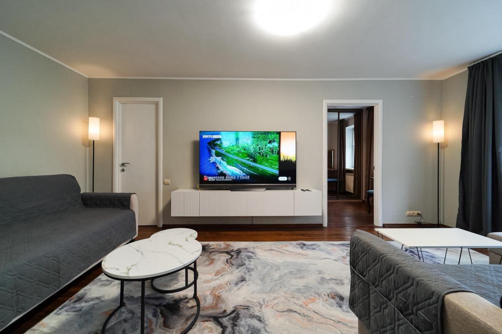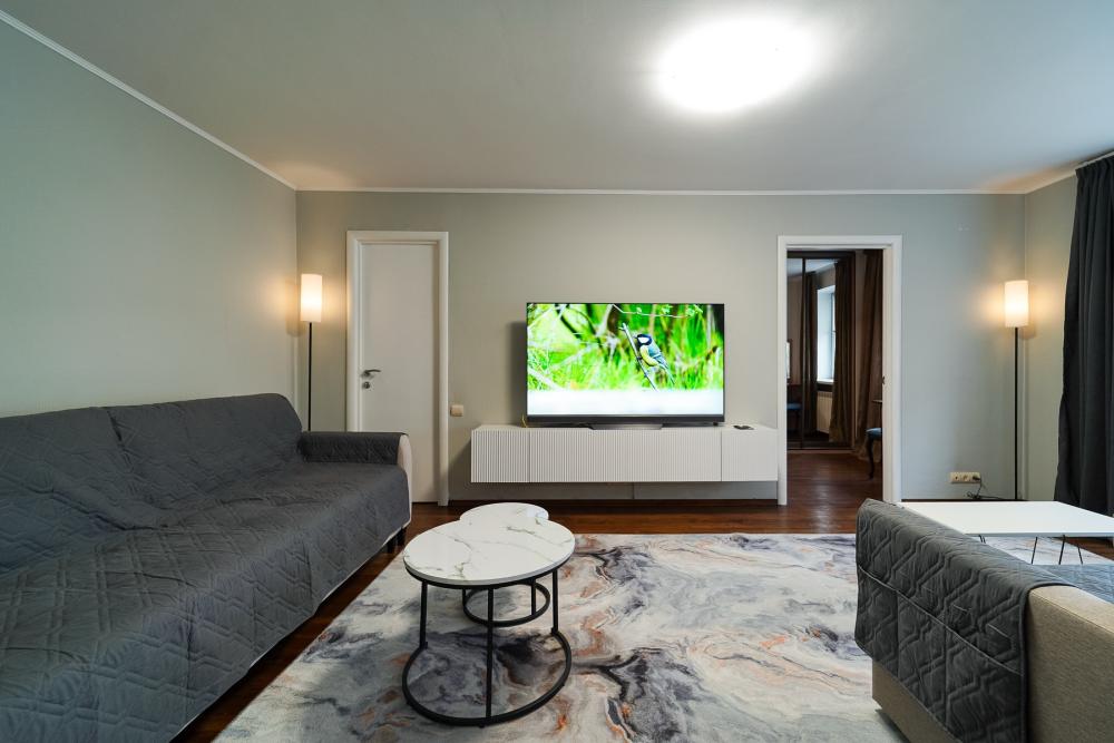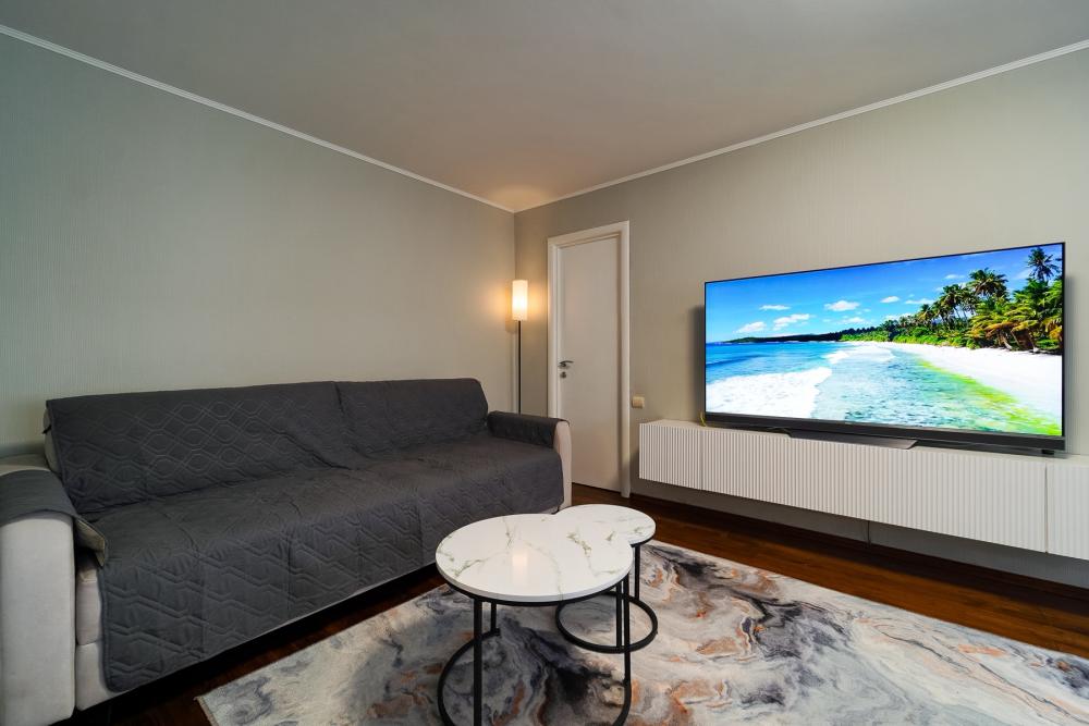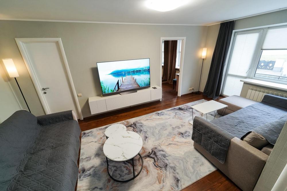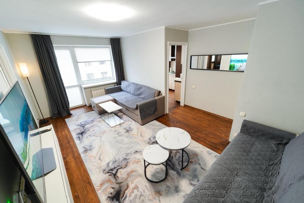 Уютные апартаменты для комфортного размещения гостей. В квартире есть всё необходимое для комфортного проживания: предусмотрены комфортабельные спальные места, вся необходимая мебель и техника, оборудованная кухонная зона.