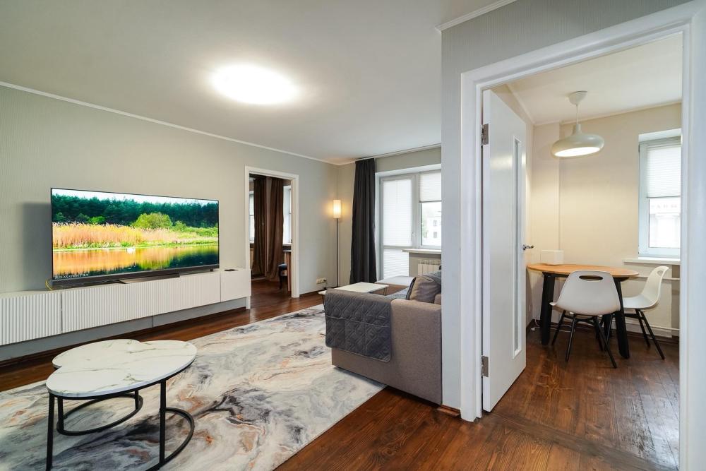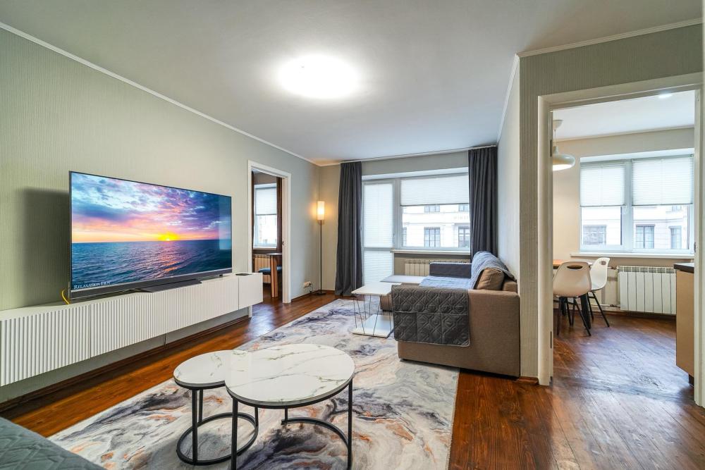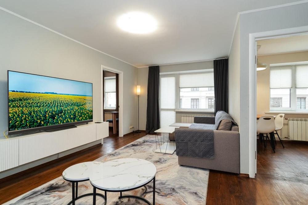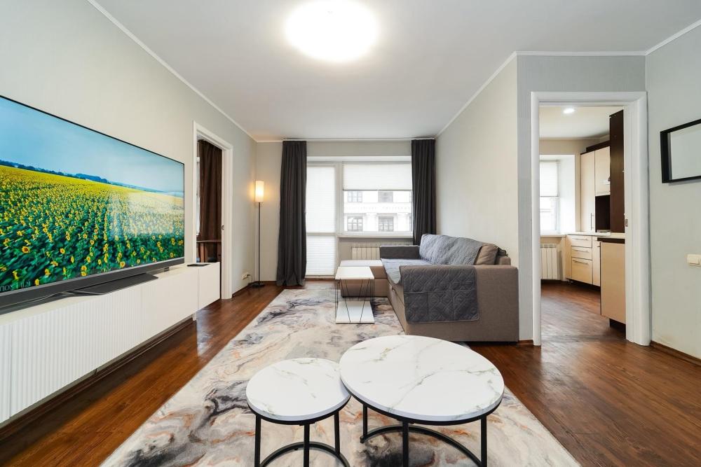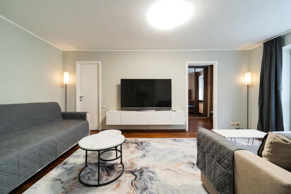 Уютные апартаменты для комфортного размещения гостей. В квартире есть всё необходимое для комфортного проживания: предусмотрены комфортабельные спальные места, вся необходимая мебель и техника, оборудованная кухонная зона.