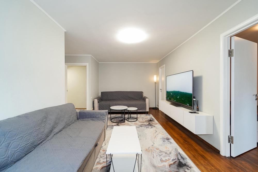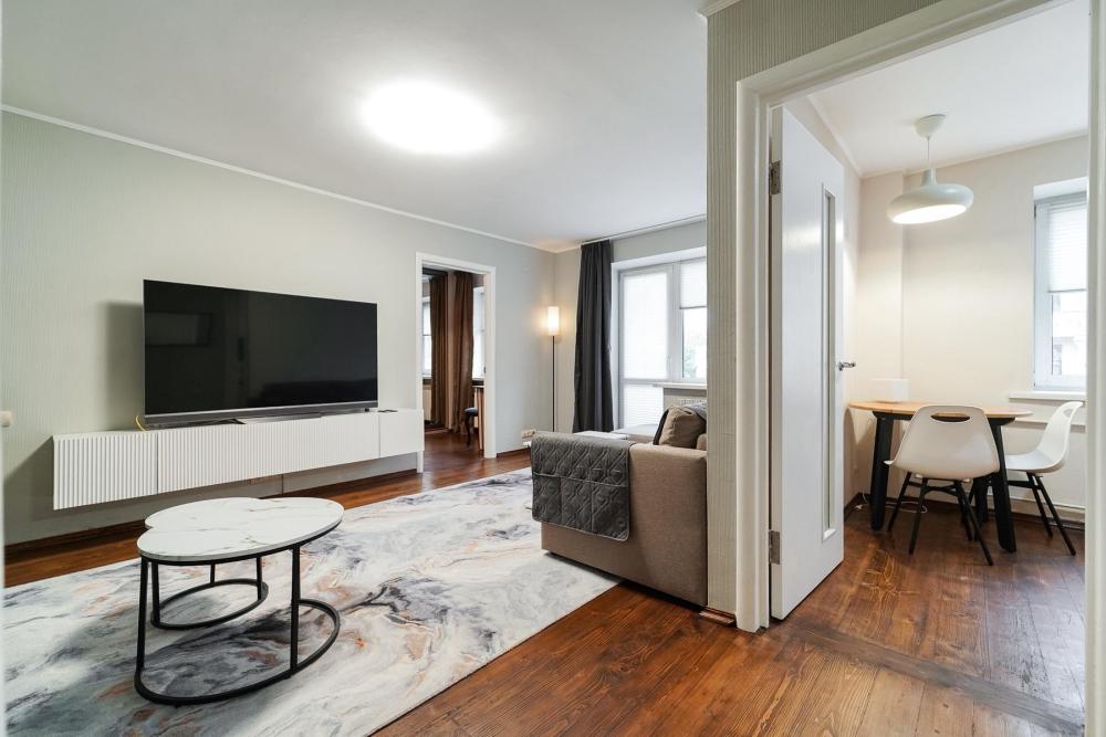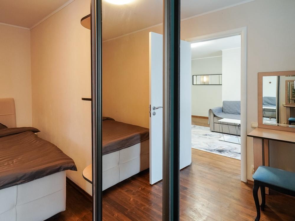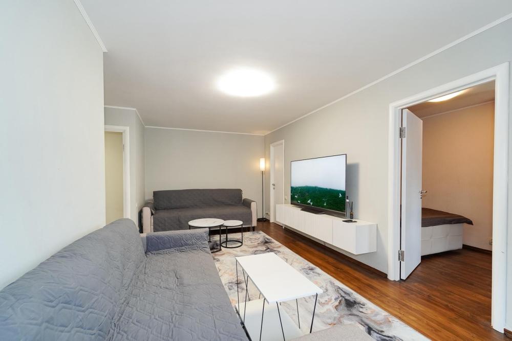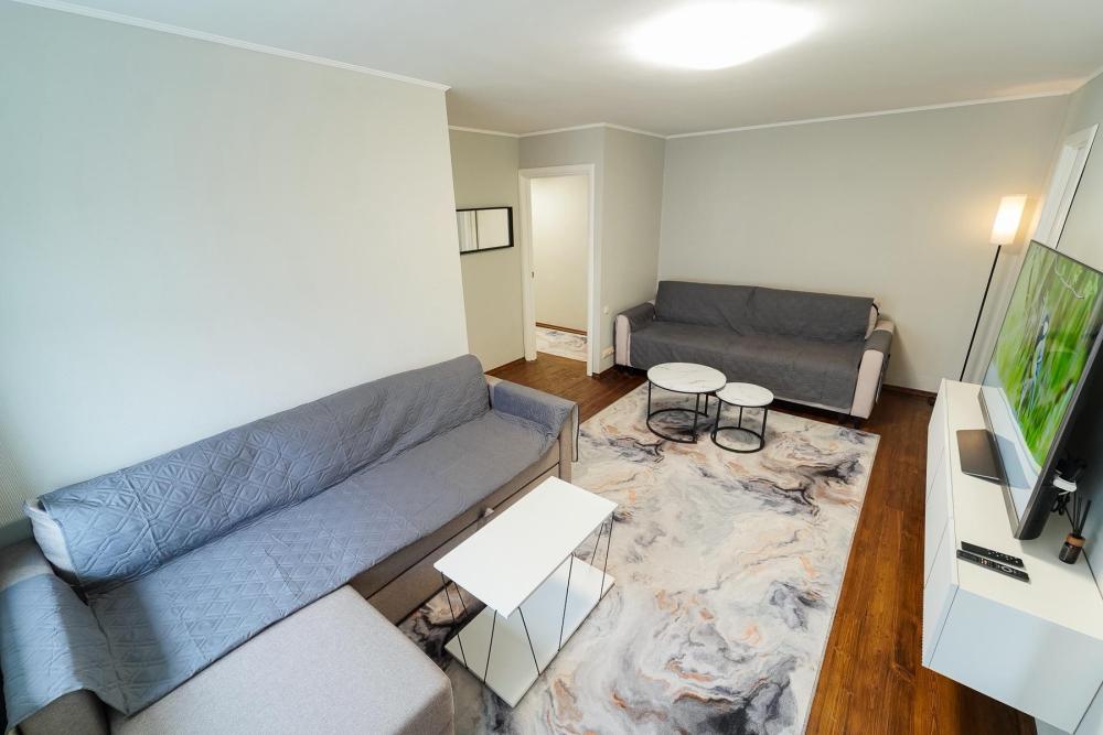 Уютные апартаменты для комфортного размещения гостей. В двухкомнатной квартире есть всё необходимое для комфортного проживания: предусмотрены комфортабельные спальные места, вся необходимая мебель и техника, оборудованная кухонная зона, стиральная машина, холодильник, пылесос, гладильная доска, фен, постельное бельё и полотенца. Имеется балкон.