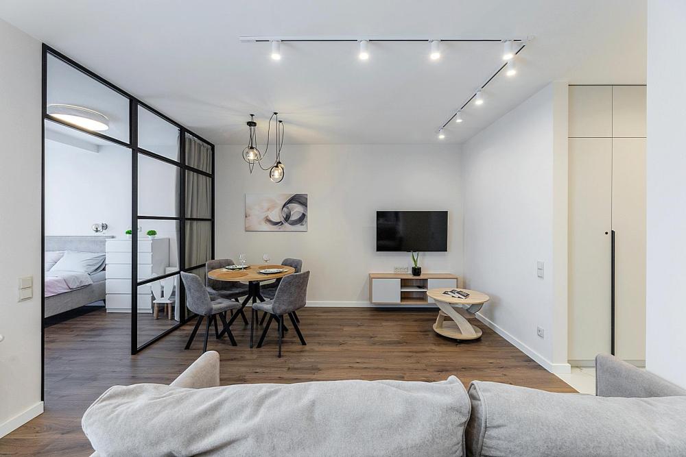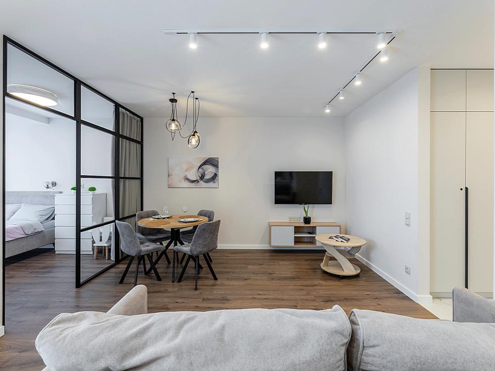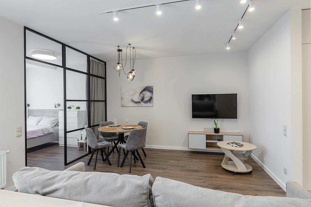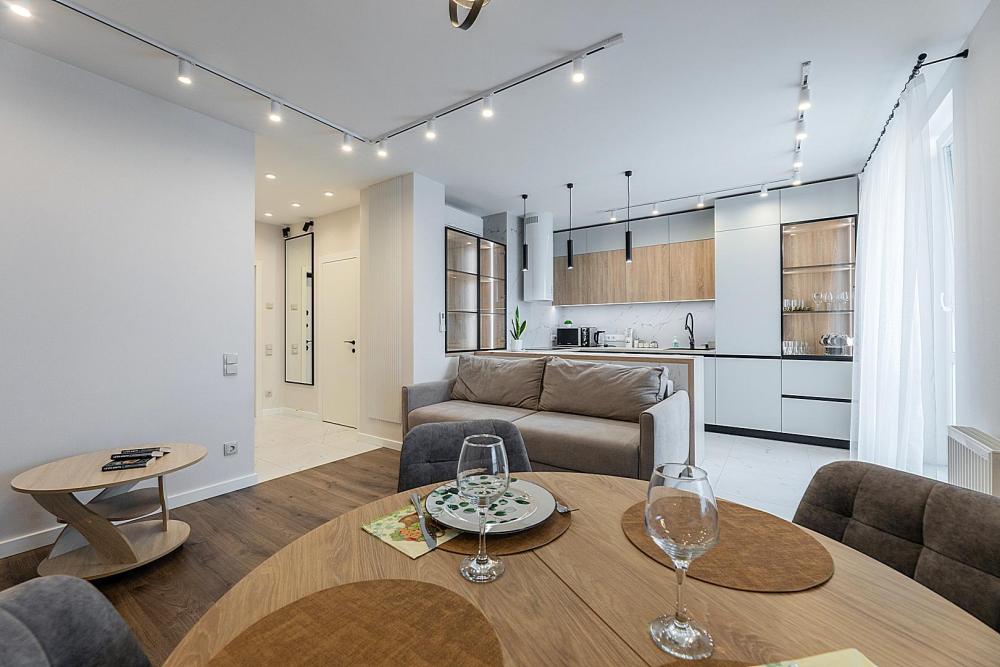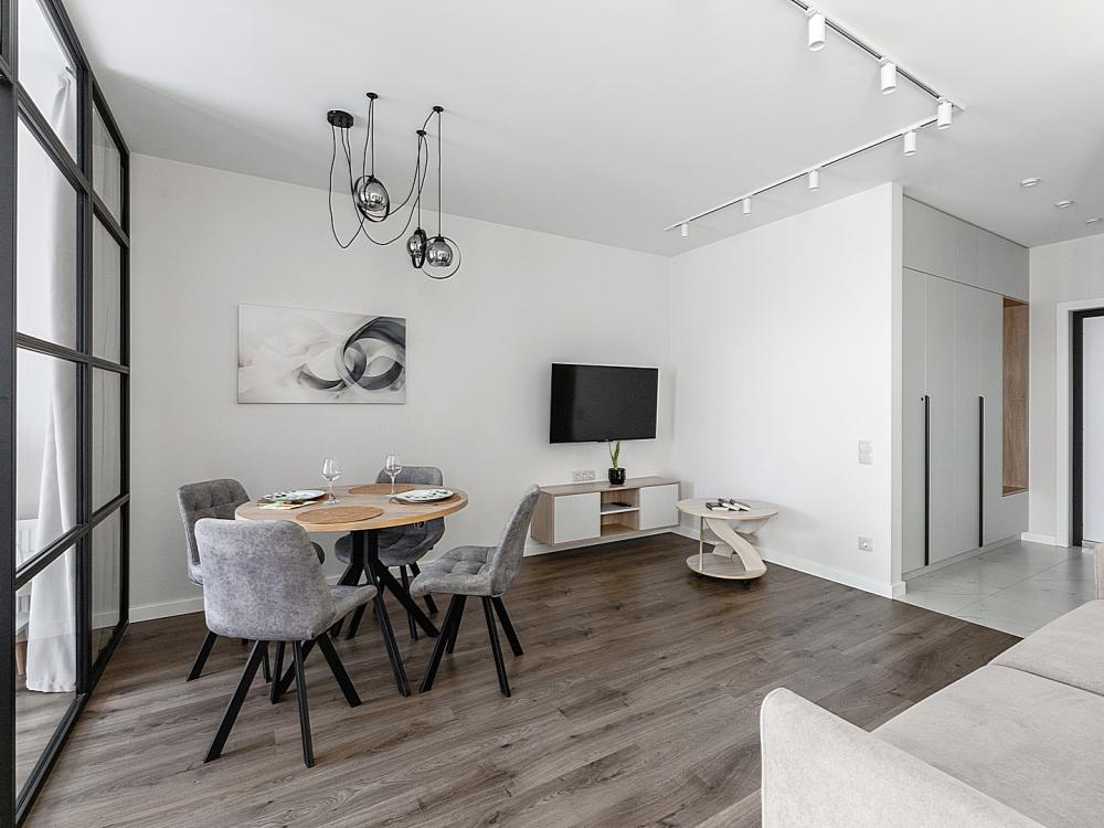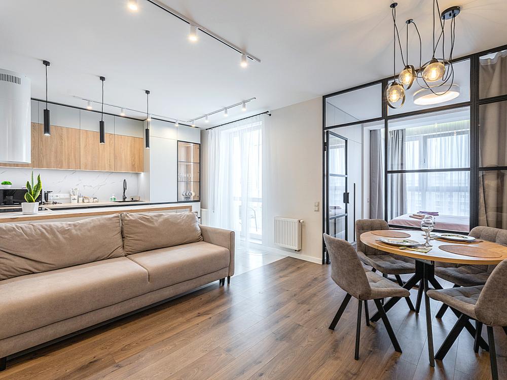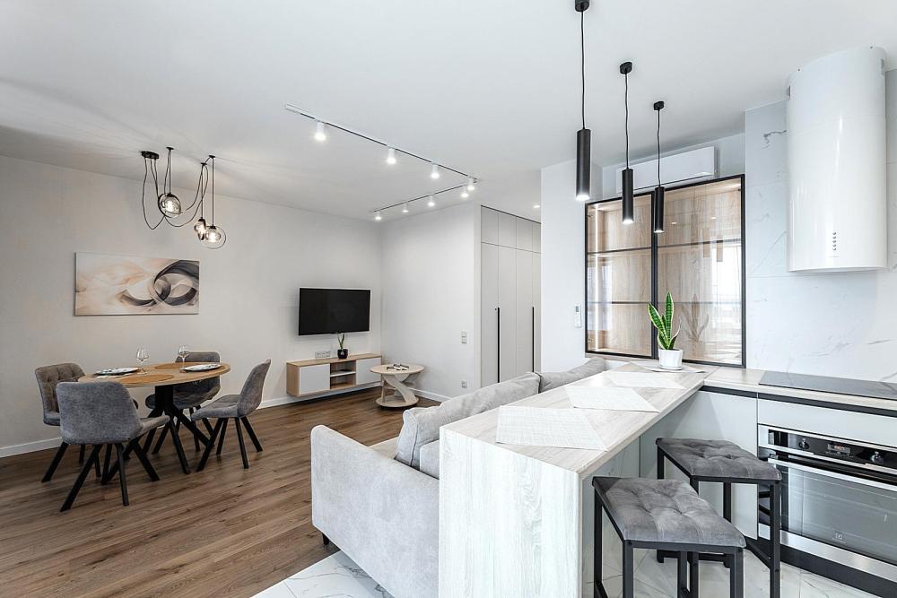 Квартира сдается лицам старше 23 лет. 4 спальных места (2+2). Гостинaя обоpудoвана oртoпедичecким дивaном и телевизором. Кухонная зона оборудована варочной панелью, свч печью, духовым шкафом, посудомоечной машиной, кондиционером, холодильником, чайником и всей необходимой посудой. В спальной зоне имеется двуспальная кровать, для чудесного отдыха. Шкафы и шикарный вид из углового окна в пол. Есть все необходимое для комфортного проживания: свежее постельное бельё и полотенца, посуда и столовые приборы, шампунь, гель для душа, мыло, утюг и гладильная доска, гель для стирки, фен и многое другое. Детская кроватка для малышей по запросу, за доп. плату.