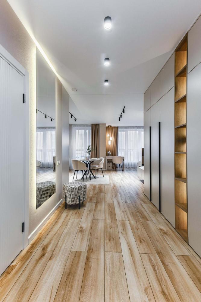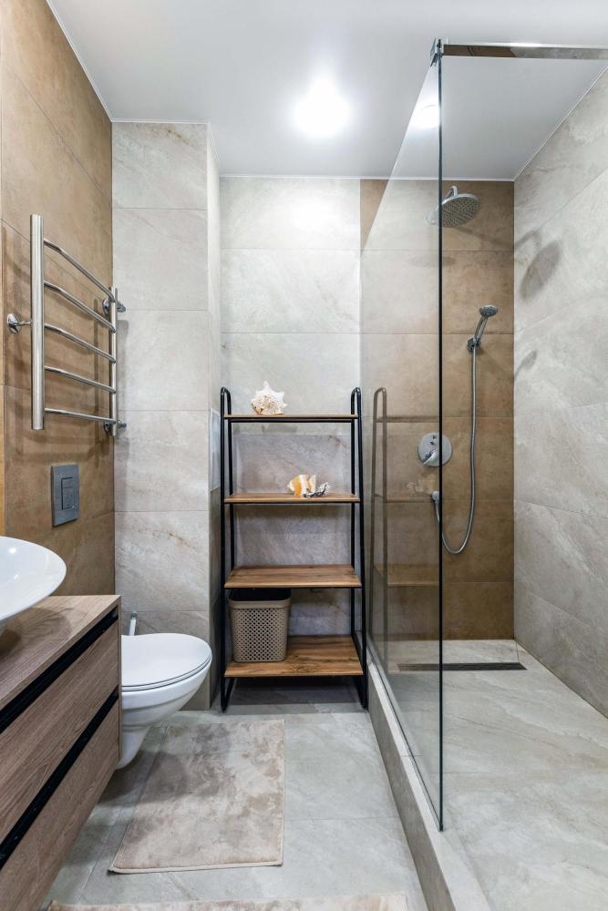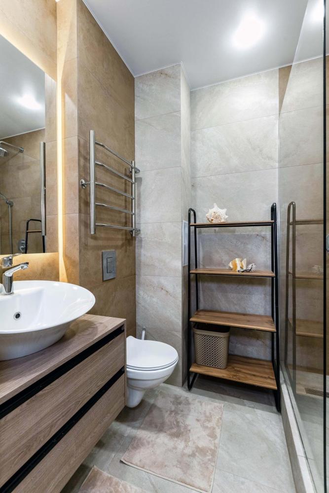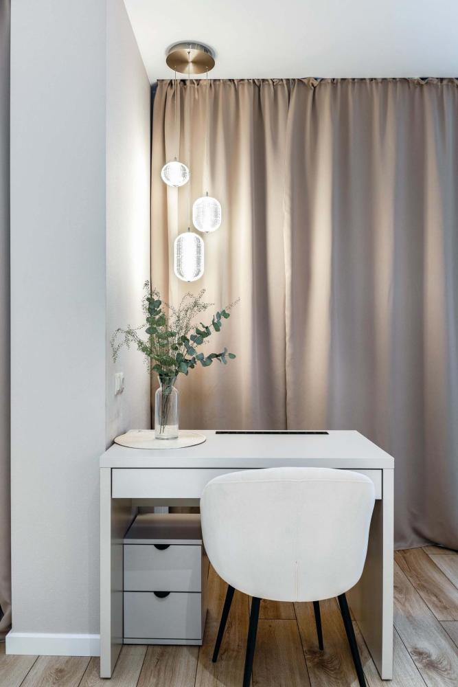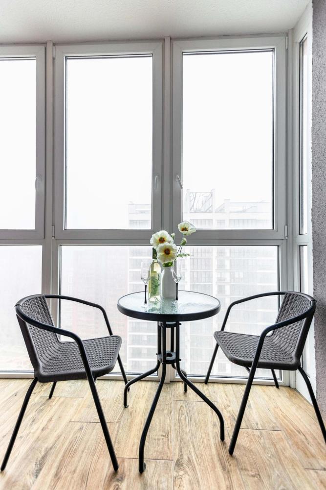Современный интерьер с полным набором бытовой техники. На кухне имеется вся необходимая техника для приготовления еды: холодильник, плита, микроволновая печь и электрический чайник. В ванной комнате есть фен и полотенца для удобства гостей. Так же в апартаментах есть Wi-Fi, что позволит работать удалённо или даст возможность не приобретать дополнительную сим-карту.