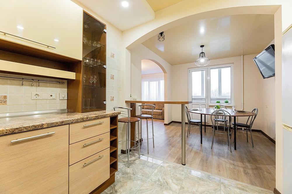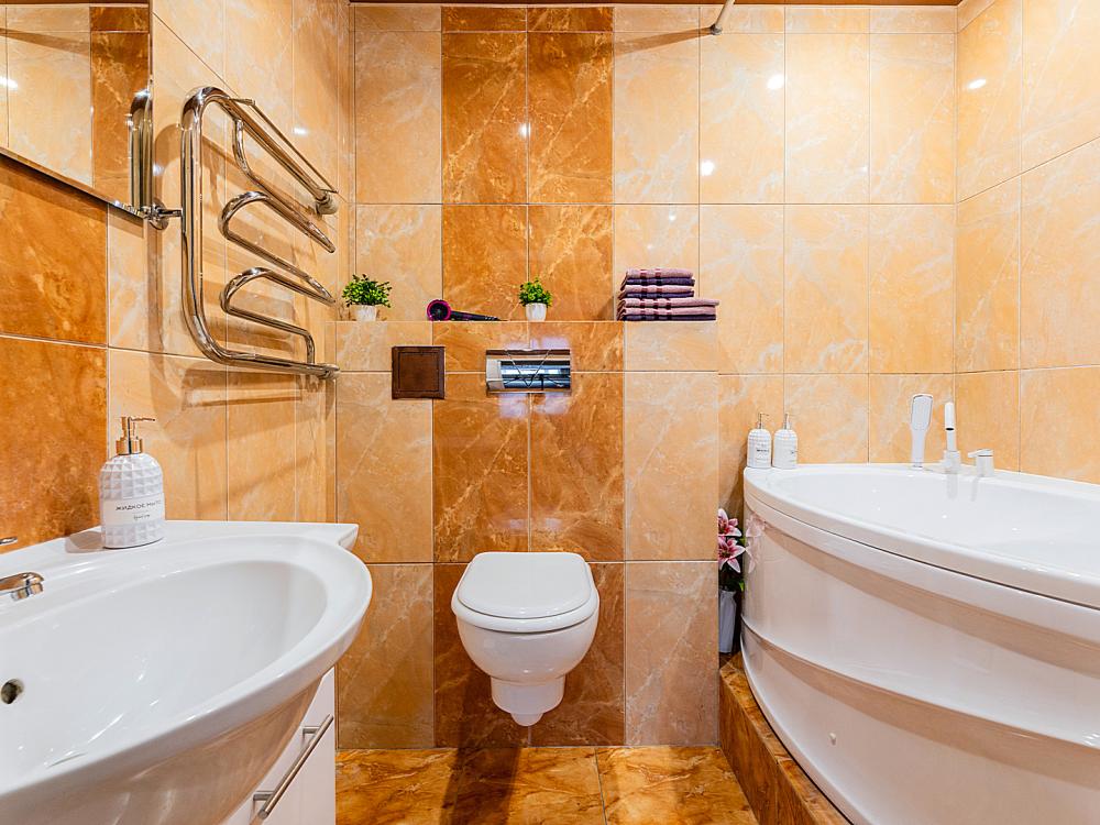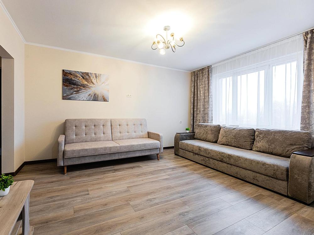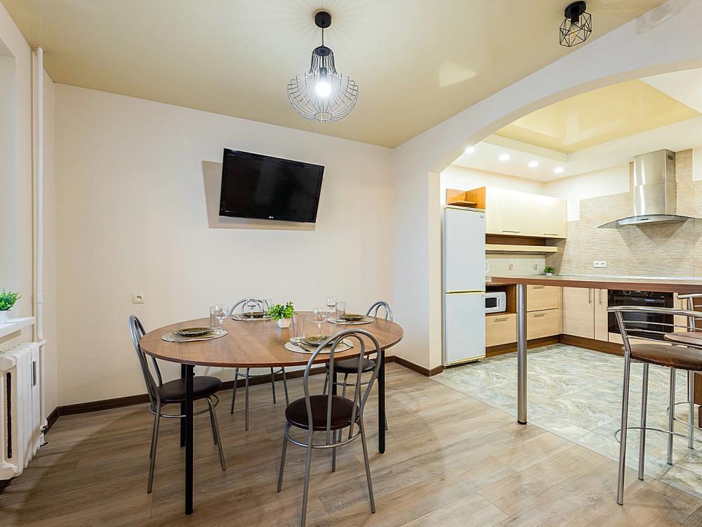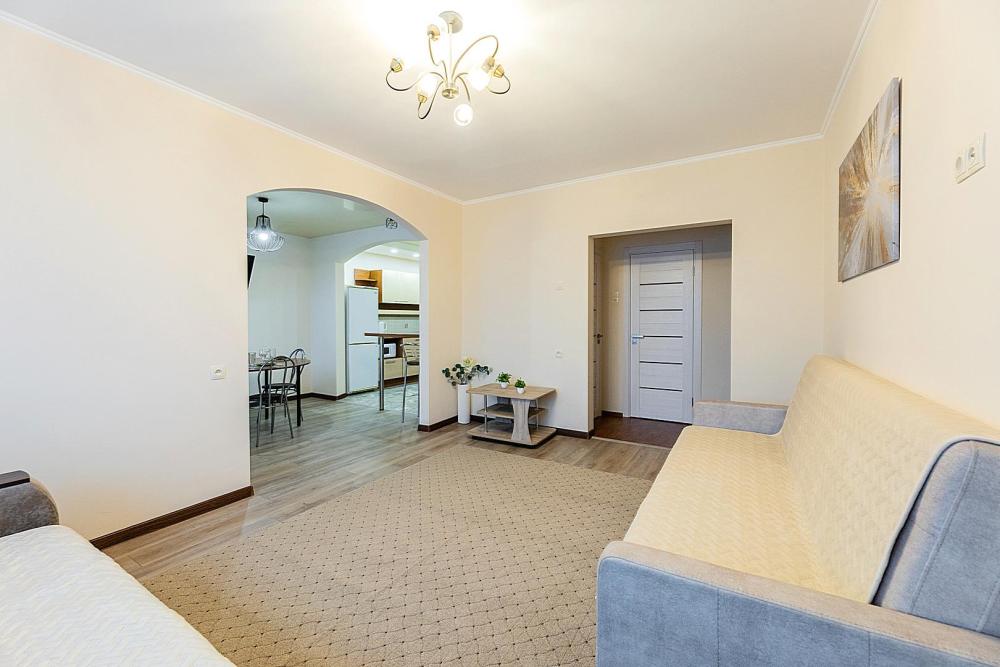 В квартире 9 спальных мест (2+2+2+2+1). Гостинaя обоpудoвана oртoпедичecкими дивaнами и телевизором. Кухонная зона оборудована варочной панелью, посудомоечной машиной, свч печь, духовой шкаф, встроенный холодильник и вся необходимая посуда. В комнатах также имеются двуспальные кровати. Есть все необходимое для комфортного проживания: свежее постельное бельё и полотенца, чистая посуда и столовые приборы, шампунь, гель для душа, мыло, утюг и гладильная доска, гель для стирки, фен и многое другое.