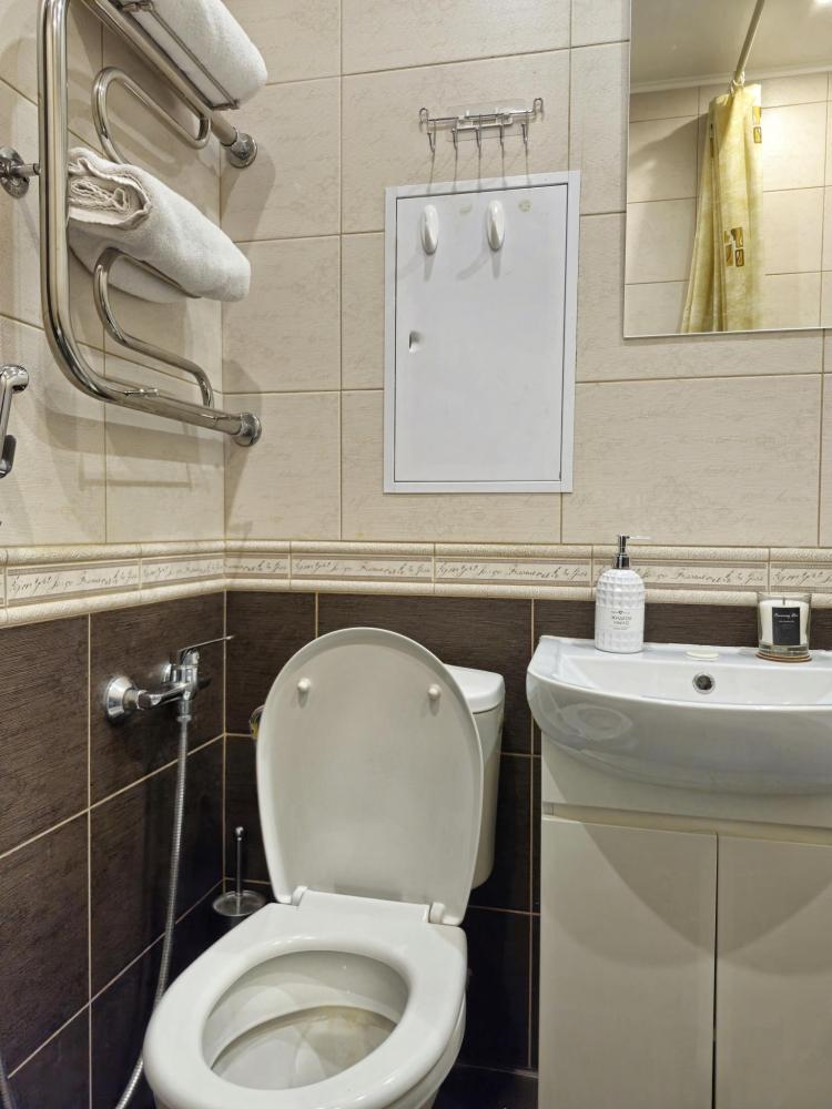 В апартаментах есть: спальня с двуспальной кроватью, гостиная с диваном и рабочем местом, телевизор, ванная совмещенная с туалетом, кухня со всем необходимым для готовки, балкон с видом на тихий двор, бесплатный Wi-Fi, постельное бельё и полотенце, утюг, гладильная доска, фен, стиральная машина и т.д. При заселении гостям предоставляется: чай, сахар. Поблизости множество магазинов, ресторанов, пиццерий, кинотеатров и т.д.