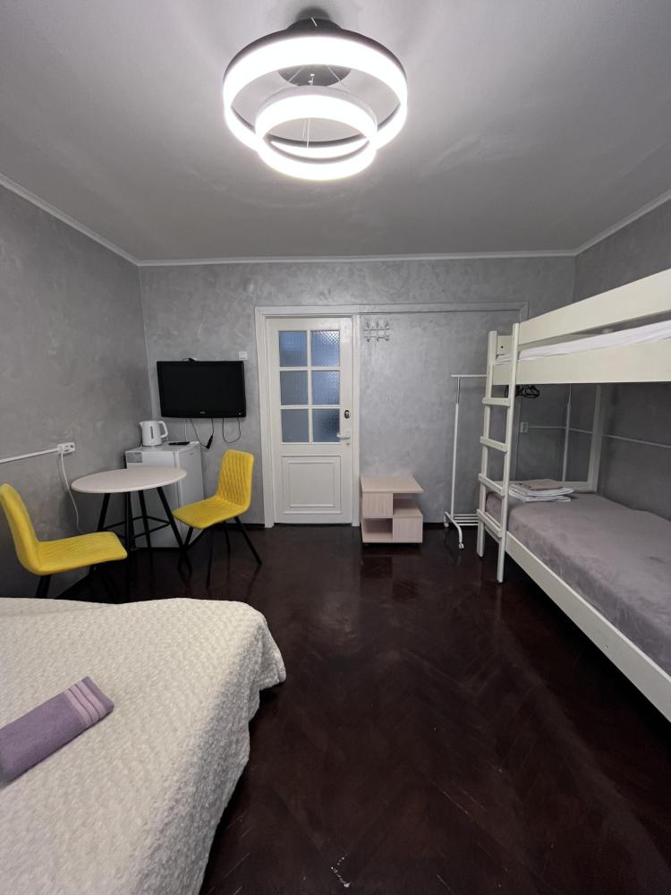 Предлагаем комнаты в трехкомнатной квартире для одиноких и семейных путешественников, командировочных и студентов.. Аккуратные комнаты с ремонтом вмещают от 1 до 4 гостей. В каждой комнате удобные спальные места ( двуместный диван-кровать и два места на двухъярусной кровати (постельное белье, набор полотенец и тапочки включены в стоимость), телевизор со Смарт ТВ, холодильник, электрочайник. Для гостей есть полностью оснащенная общая кухня ( варочная электроплита, набор посуды, микроволновая печь), общая душевая ( с просторным душем и умывальником) , стиральная машина, фен, сушилка, гладильная доска, утюг.