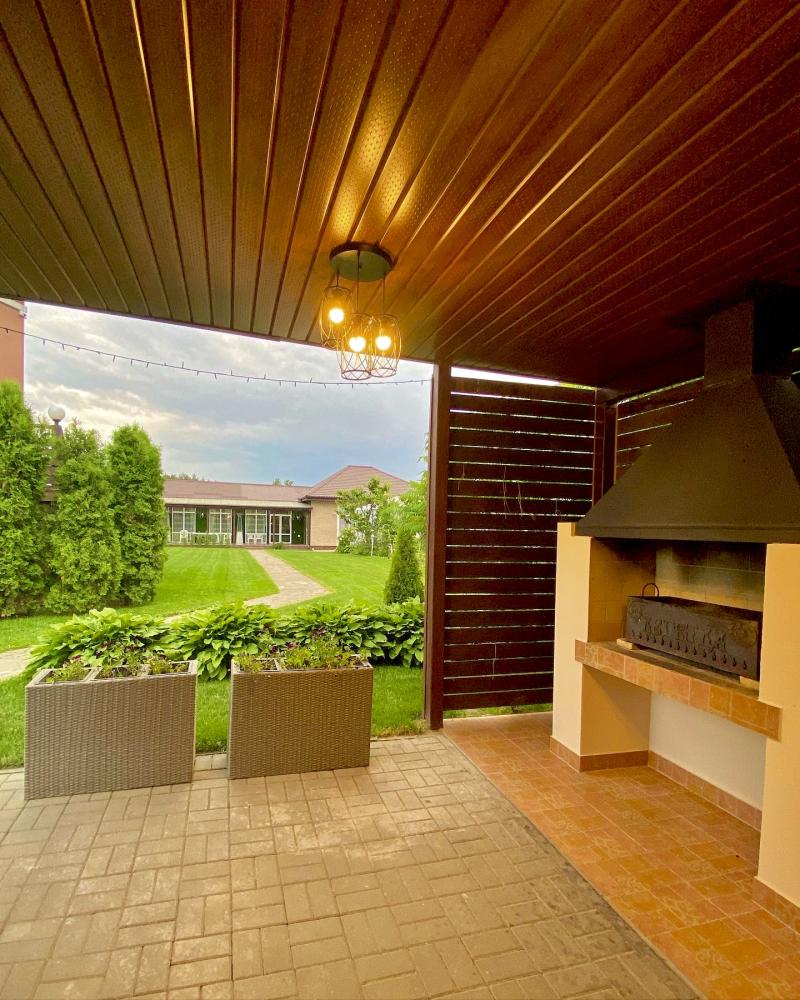 Гостей ждет трехуровневый чистый, светлый и теплый дом для отдыха семьей и для размещения до 35 гостей после мероприятий. 6 изолированных спален, две большие гостиные, столовая, кухня, 4 санузла, просторная терраса с видом на шикарные закаты - все, что нужно для комфортного размещения как на 1 сутки, так и для длительного проживания. В доме есть вся необходимая бытовая техника: большой холодильник, плита и духовой шкаф, СВЧ, посудомоечная и стиральная машины, утюг, гладильная доска. Широкий выбор посуды для самостоятельного приготовления пищи. 5 современных телевизоров со спутниковым ТВ и приставками для Интернета, музыкальная колонка, огромная библиотека DVD дисков и книг, настольный теннис помогут гостям найти развлечения на любой вкус.