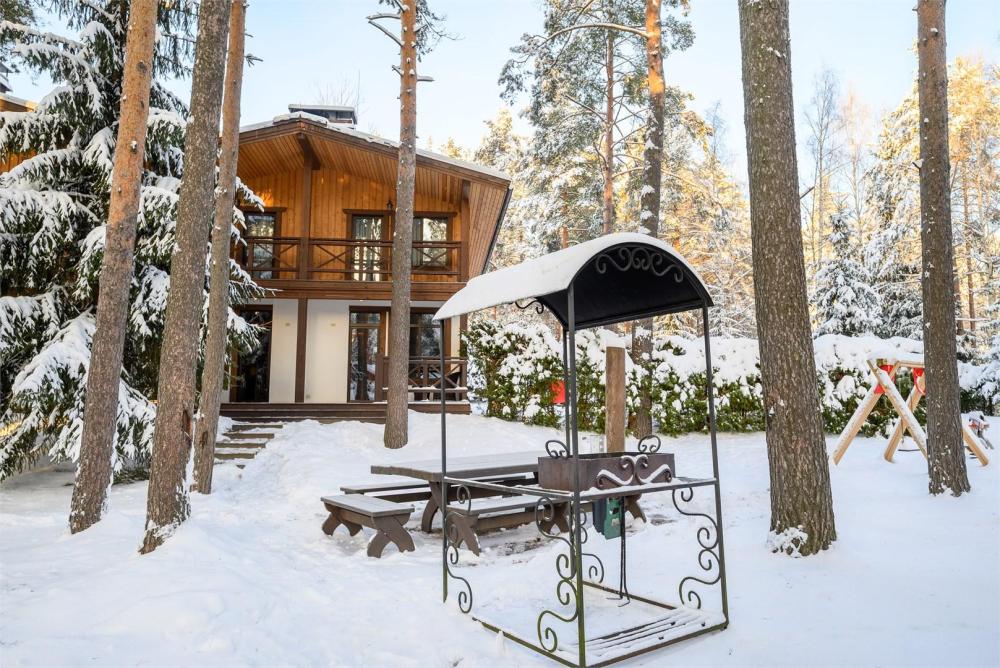 Просторные современные домики, расположенные всего в 10 км от Санкт-Петербурга. Изысканные и комфортные, обустроенные всем необходимым, они станут идеальным выбором для размещения семьи на загородном отдыхе. -Две спальни с двухместными кроватями, оборудованные отдельным санузлом с душевыми кабинами, на первом этаже и две спальни с двумя одноместными кроватями, оборудованные отдельным санузлом с ванными, на втором этаже. Гостиная с двуспальным диваном и возможностью размещения на нём двух персон без доплаты. -Кухня: холодильник с морозильной камерой, варочная поверхность, кофемашина, микроволновая печь, фильтр для воды, набор посуды для приготовления еды и для сервировки на 8 персон, большой обеденный стол, стулья, камин. -Стиральная машина, гладильная доска, сушильный шкаф, утюг, а также сейф для хранения ценных вещей, денег или документов. -Коттедж оборудован системой тёплый пол (ванная, прихожая). -Просторная терраса, уличный мангал.