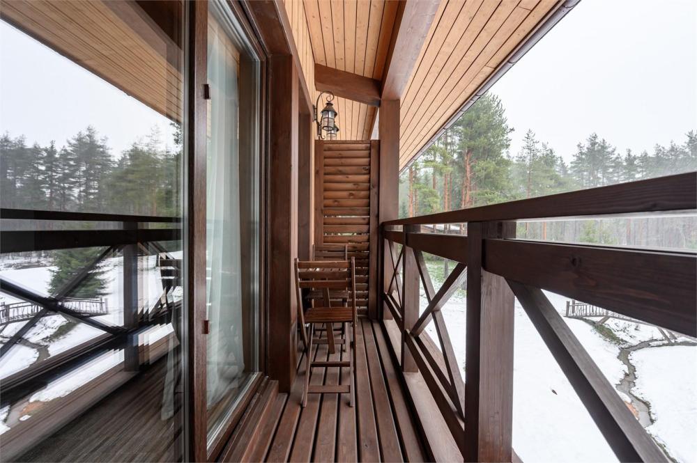 «Делюксы» расположены в отдалённой, самой тихой, зоне курорта. Из окон открывается вид на сосновый лес. Совсем недалеко шумит лесная река, а буквально в нескольких метрах находится всесезонный гастропроект высокой кухни «В Чаще». -Спальня с большой двуспальной кроватью. -Зона отдыха с камином, большим телевизором (интерактивное ТВ), столиком и креслами. -Сейф для хранения ценных вещей, денег, документов. -Прихожая с 2 вместительными шкафами для верхней одежды, чемодана и остальных вещей. -Фен, мини-холодильник, чайная станция (электрический чайник, кофемашина, чайный набор). -Освещённая терраса с уличной мебелью (стол, кресла, диван) Обращаем ваше внимание, что в данной категории размещение с питомцами невозможно.