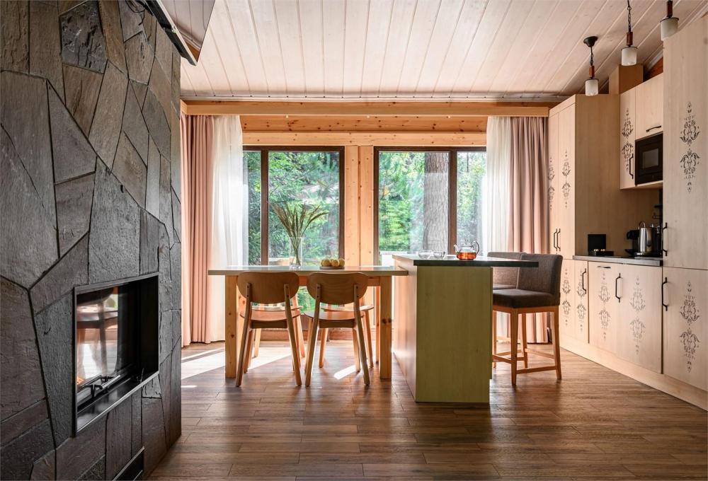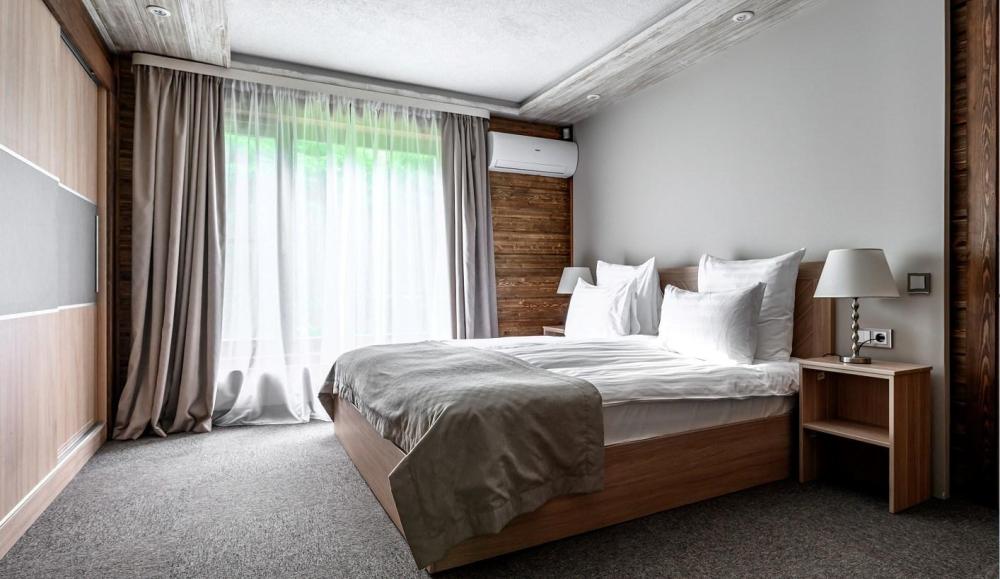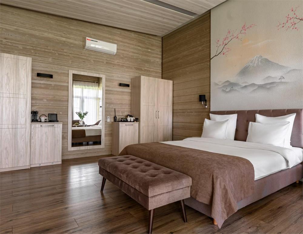 Изысканные двухместные номера с открытой террасой и видом на лесной ручей расположены в уединенной части курорта и располагают к размеренному отдыху. Панорамные окна, кровать king size, дровяной камин и премиальный текстиль создают атмосферу мягкости и спокойствия. В непосредственной близости находится спа-комплекс и ресторан авторской кухни. В каждом номере: - спальная с кроватью king size - зона отдыха с дровяным камином - панорамные окна - кондиционер, телевизор, халаты - терраса с ротанговой мебелью и качелями. Предназначен для проживания 2 гостей (по запросу возможно заказать дополнительное место). Дети до 2 лет размещаются бесплатно: без предоставления отдельного места, детская кроватка по запросу. Возможно проживание с животными до 30 см. в холке. Парковка - расположенная на прилегающей территории - не более 1 автомобиля на один номер. Мангальной зоны у номеров "Делюкс" не предусмотрено.