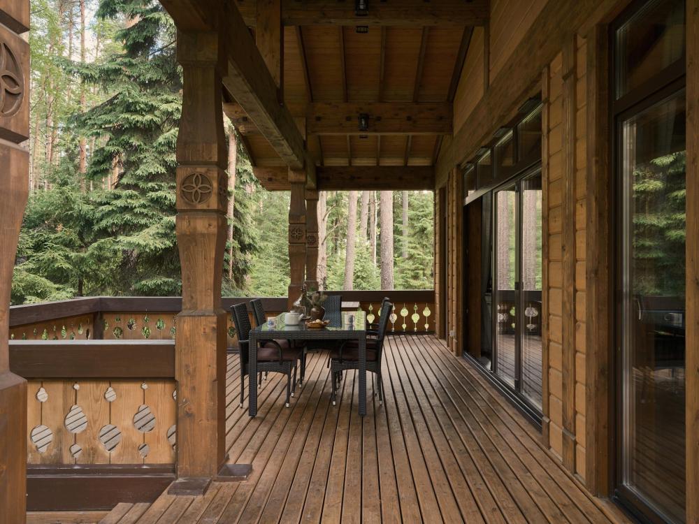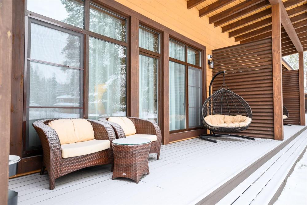 «Делюксы» расположены в отдалённой, самой тихой, зоне курорта. Из окон открывается вид на сосновый лес. Совсем недалеко шумит лесная река, а буквально в нескольких метрах находится всесезонный гастропроект высокой кухни «В Чаще». -Спальня с большой двуспальной кроватью. -Зона отдыха с камином, большим телевизором (интерактивное ТВ), столиком и креслами. -Сейф для хранения ценных вещей, денег, документов. -Прихожая с 2 вместительными шкафами для верхней одежды, чемодана и остальных вещей. -Фен, мини-холодильник, чайная станция (электрический чайник, кофемашина, чайный набор). -Освещённая терраса с уличной мебелью (стол, кресла, диван) Обращаем ваше внимание, что в данной категории размещение с питомцами невозможно.