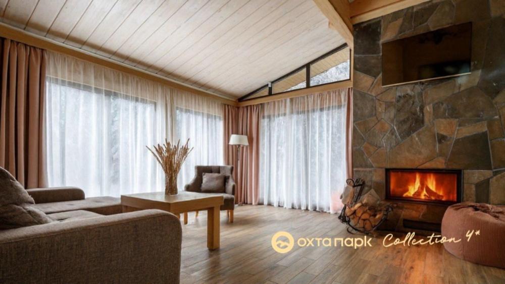 Коттеджи категории «Премиум» созданы для любителей первоклассного отдыха и предлагают превосходный уровень проживания недалеко от центра культурной столицы. Коттеджи расположены на живописном берегу реки Охта, отсюда открывается прекрасный вид на лес и окрестности курорта. При строительстве коттеджей этой категории использовались самые лучшие материалы. Кухня-гостиная с мягкой мебелью, отделённая от спальни двусторонним камином. Спальня с одной двухместной кроватью, декорированная подсветкой потолка «звёздное небо». Ванная комната с душевой и ванной с гидромассажем, поддерживается система «тёплые полы». Гостевой санузел. Камин. Кухня: холодильник, варочная поверхность, микроволновая печь, чайник, посудомоечная машина, фильтр для воды, набор посуды для приготовления еды и сервировки. Терраса с джакузи и качелями-кроватью. Сейф для хранения ценных вещей, денег и документов.