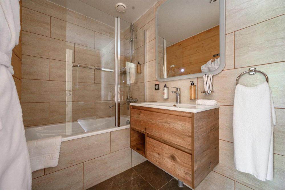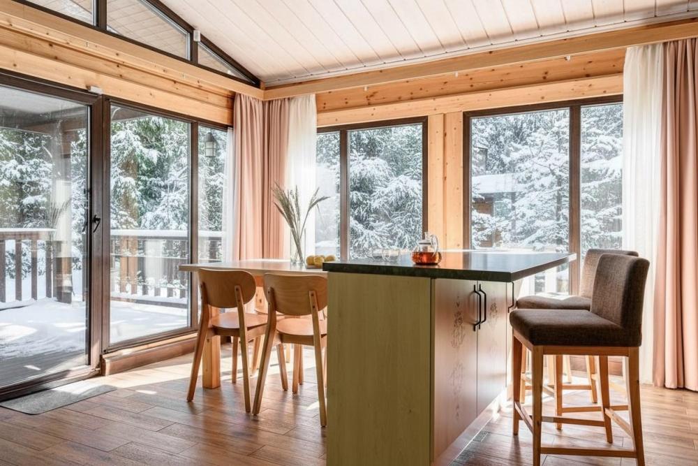 Этот современный таунхаус, выдержанный в стиле традиционного альпийского шале, создаёт для гостей тёплую и душевную атмосферу. Здесь сразу возникает ощущение, что ты дома. Пять спален, оборудованных отдельными санузлами с душевой кабиной. Одна расположена на первом этаже, четыре — на втором. Каждая спальня имеет две односпальные кровати, которые при необходимости объединяются в одну двуспальную. Кухня: холодильник с морозильной камерой, варочная поверхность, кофемашина, микроволновая печь, фильтр для воды, чайник, посудомоечная машина, набор посуды для приготовления еды и для сервировки на 10 персон, большой обеденный стол, стулья, камин. Гостиная с двуспальным диваном, с возможностью размещения на нём двух персон без доплаты и большим обеденным столом. Ванная комната с душевой и ванной. Гостевой санузел. Стиральная машина, сейф для хранения ценных вещей, денег и документов. Лужайка с зоной для пикника и мангалом-барбекю. Детская площадка.