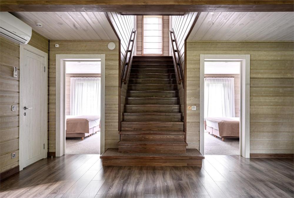 Просторные современные домики, расположенные всего в 10 км от Санкт-Петербурга. Изысканные и комфортные, обустроенные всем необходимым, они станут идеальным выбором для размещения семьи на загородном отдыхе. -Две спальни с двухместными кроватями, оборудованные отдельным санузлом с душевыми кабинами, на первом этаже и две спальни с двумя одноместными кроватями, оборудованные отдельным санузлом с ванными, на втором этаже. Гостиная с двуспальным диваном и возможностью размещения на нём двух персон без доплаты. -Кухня: холодильник с морозильной камерой, варочная поверхность, кофемашина, микроволновая печь, фильтр для воды, набор посуды для приготовления еды и для сервировки на 8 персон, большой обеденный стол, стулья, камин. -Стиральная машина, гладильная доска, сушильный шкаф, утюг, а также сейф для хранения ценных вещей, денег или документов. -Коттедж оборудован системой тёплый пол (ванная, прихожая). -Просторная терраса, уличный мангал.