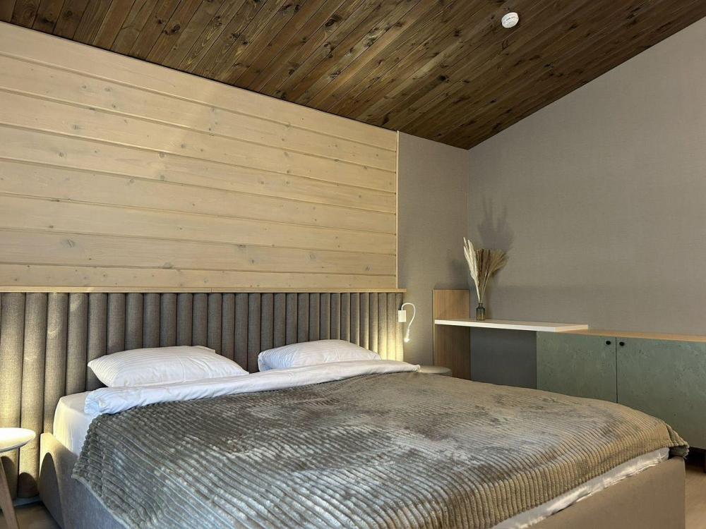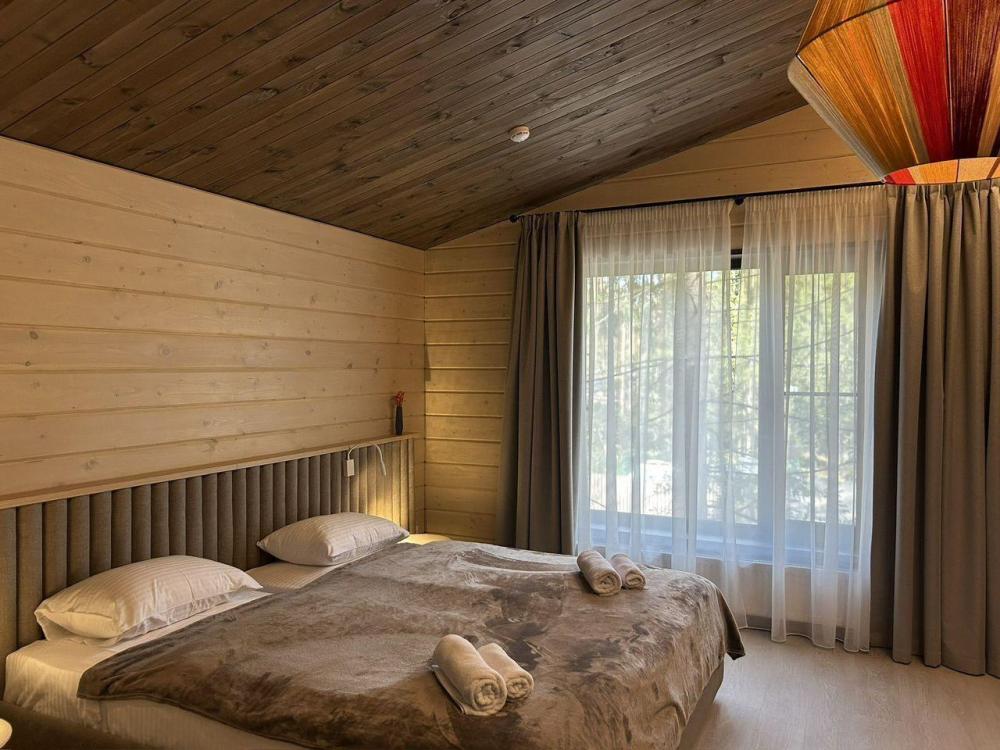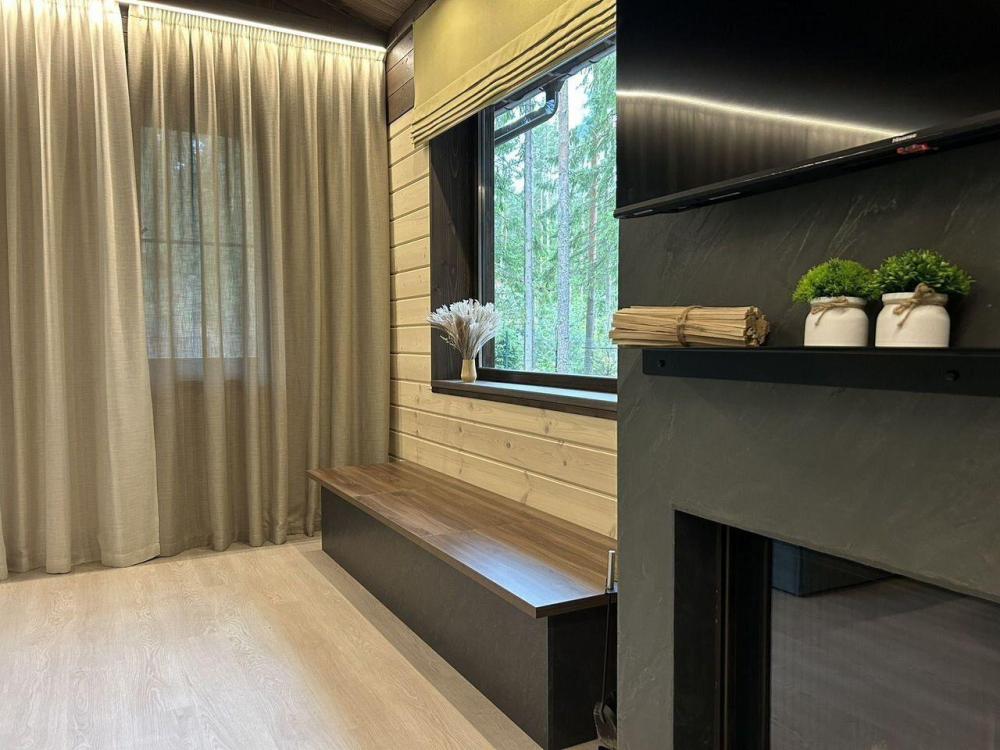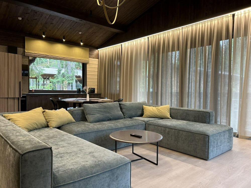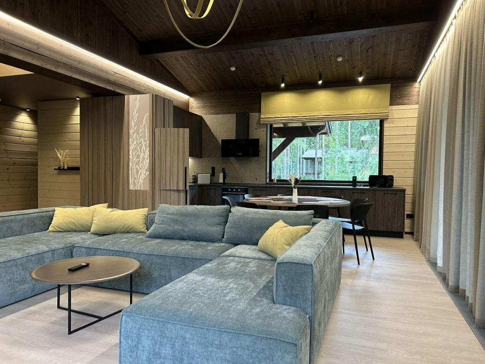 В доме есть все необходимое для комфортного отдыха. На первом этаже кухня-гостиная с выходом на террасу, камин, сауна, две спальни, санузел и постирочная. На втором - две спальни с выходом в личные ванные комнаты и балкон. В обеденной зоне стол, стулья и посуда на 8 персон. На кухне - посудомоечная машина, духовка, чайник, микроволновка, холодильник и плита. В зоне отдыха - удобный диван с подушками и телевизор (смарт-тв). В каждой спальне - кровати, прикроватные тумбы, шкафы. В доме 4 спальни: две - с большой двуспальной кроватью, две - с двумя односпальными кроватями (можно соединить в одну).