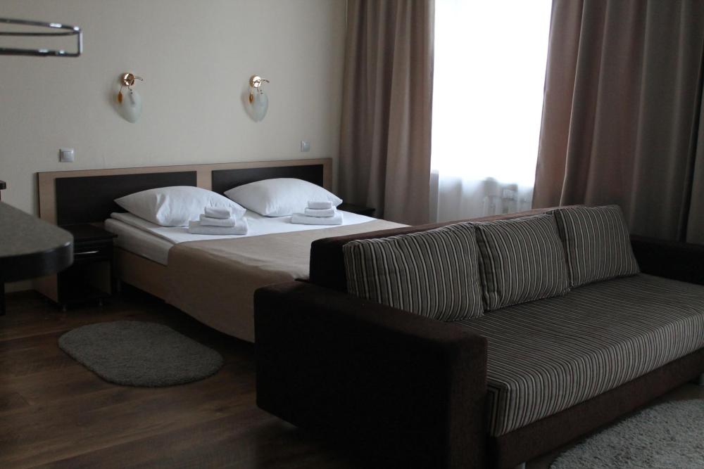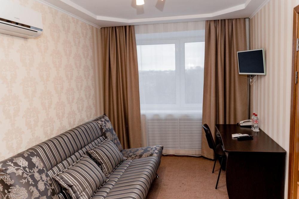 Уютный однокомнатный номер. Спальное место: две отдельные кровати (ширина 0,9м) Wi-Fi Телевизор (кабельное TV) Холодильник Телефон Ванная комната: ванна,WC, косметические и банные принадлежности