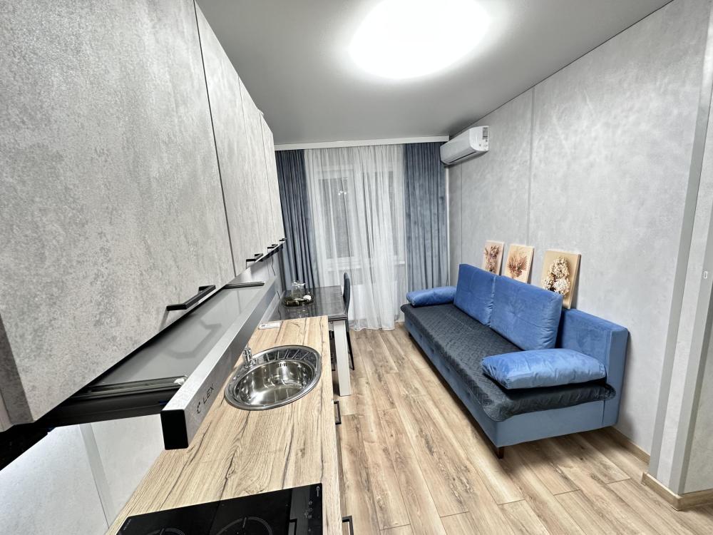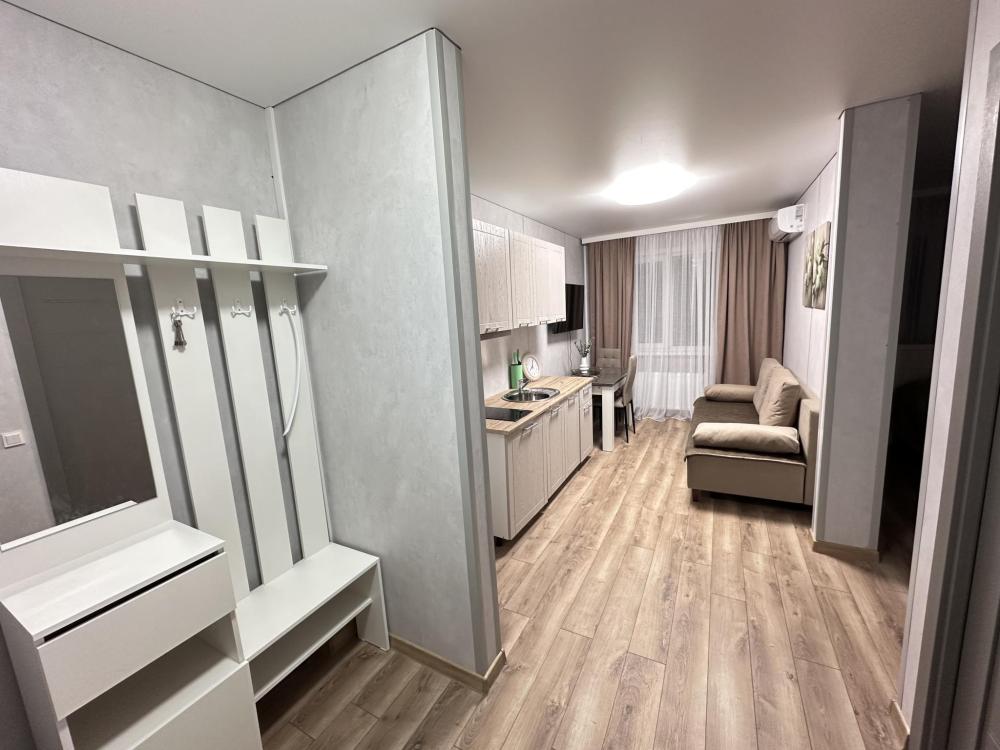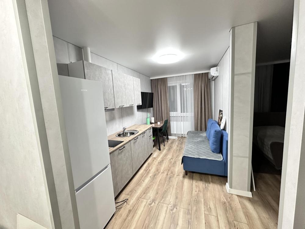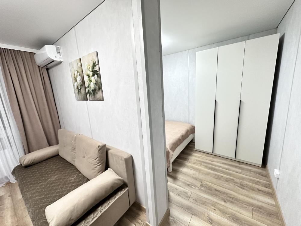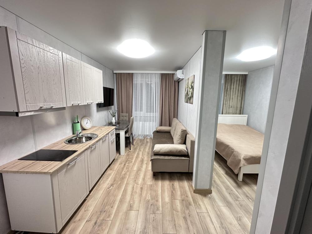 Уютные апартаменты для 3 гостей, оборудованные всем необходимым для комфортного проживания. В апартаментах: двуспальная кровать, раскладной диван, высокоскоростной, бесплатный wi-fi, телевизор с Android tv, кондиционер, центральное отопление, балкон, холодильник с морозильной камерой, индукционная электроплита, набор кухонной и столовых принадлежностей.