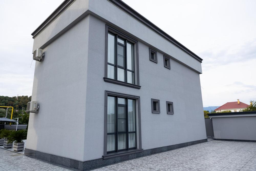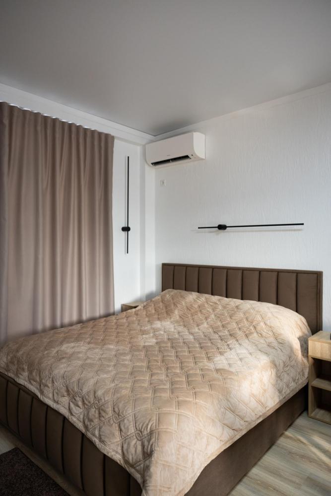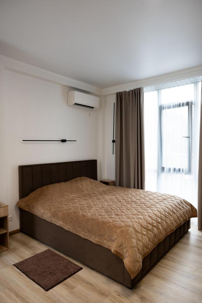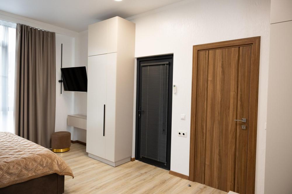 Апартамент полностью автономен, при желании можно ни с кем не пересекаться. Помимо отдельного входа, в апартаменте имеется оборудованная кухонная зона (холодильник, плита, микроволновая печь, электрочайник, посуда), в спальной зоне расположена двухместная кровать, диван, телевизор, а также есть стиральная машина. Каждый апартамент обеспечен системой кондиционирования и теплыми полами. Во всех комнатах проложена хорошая шумоизоляция, позволяющая наслаждаться работой аэропорта без каких-либо неудобств. Также с территории открывается шикарная панорама на горы.