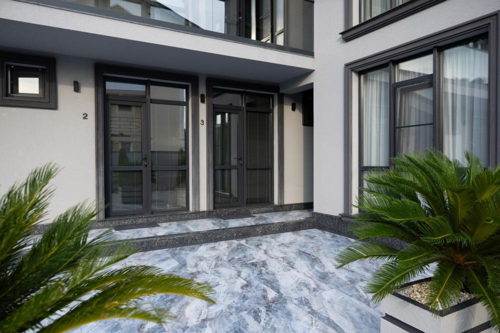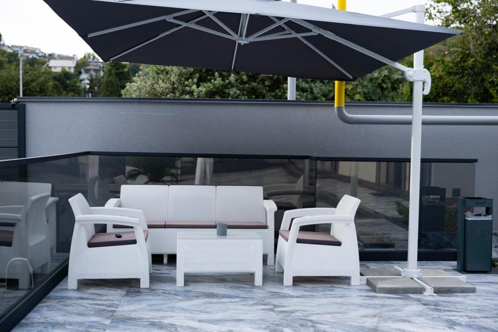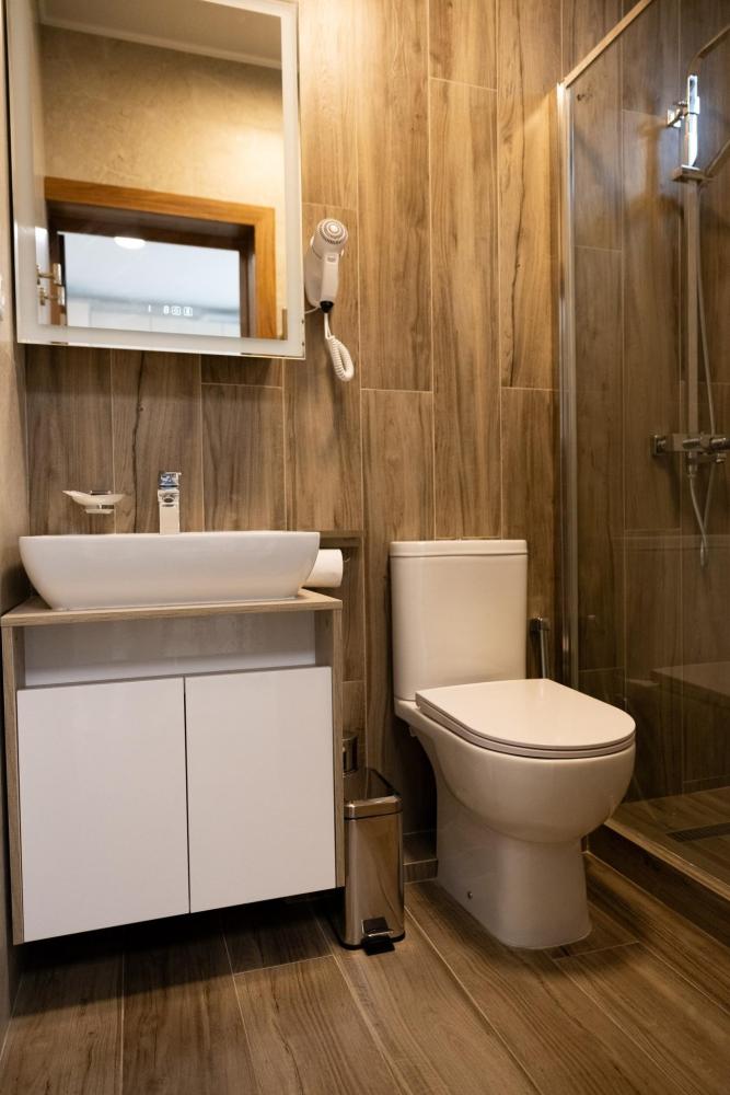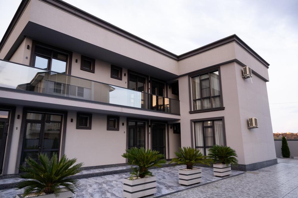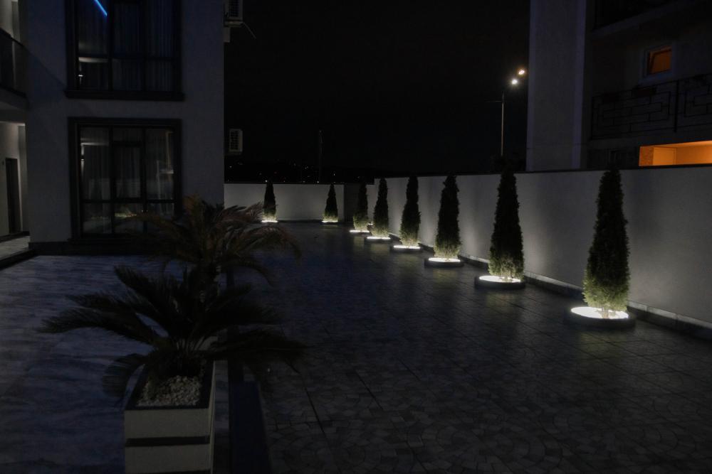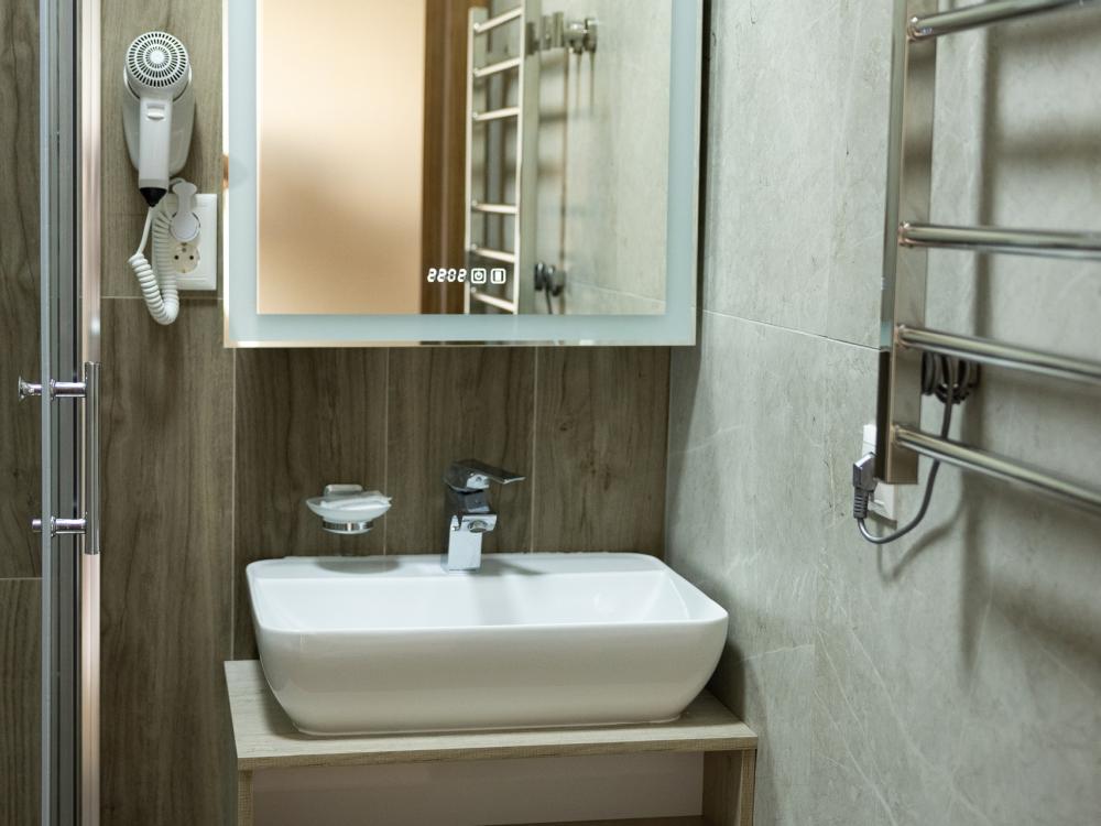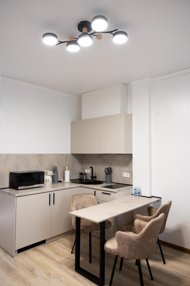 Апартамент полностью автономен, при желании можно ни с кем не пересекаться. Помимо отдельного входа, в апартаменте имеется оборудованная кухонная зона (холодильник, плита, микроволновая печь, электрочайник, посуда), в спальной зоне расположена двухместная кровать, диван, телевизор, а также есть стиральная машина (в 2-ух посудомоечная). Каждый апартамент обеспечен системой кондиционирования и теплыми полами. Во всех комнатах проложена хорошая шумоизоляция, позволяющая наслаждаться работой аэропорта без каких-либо неудобств. Также с территории открывается шикарная панорама на горы.