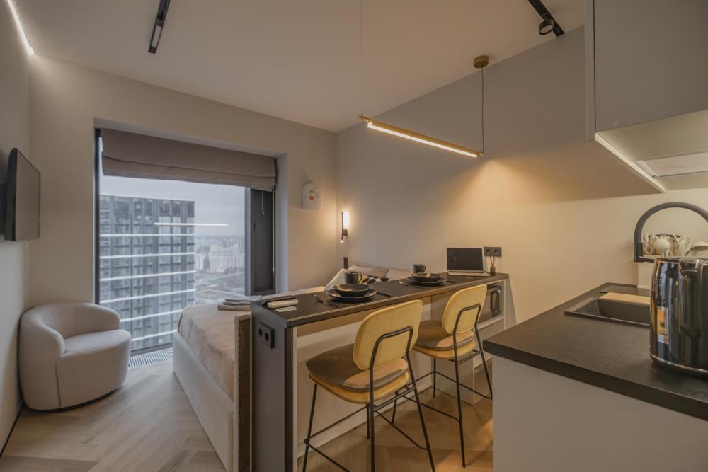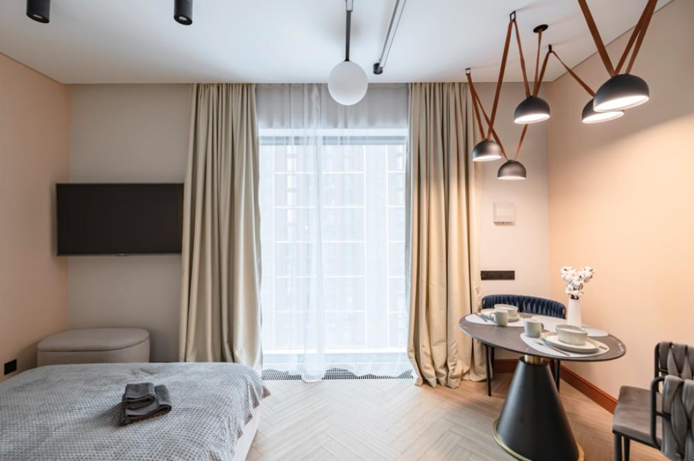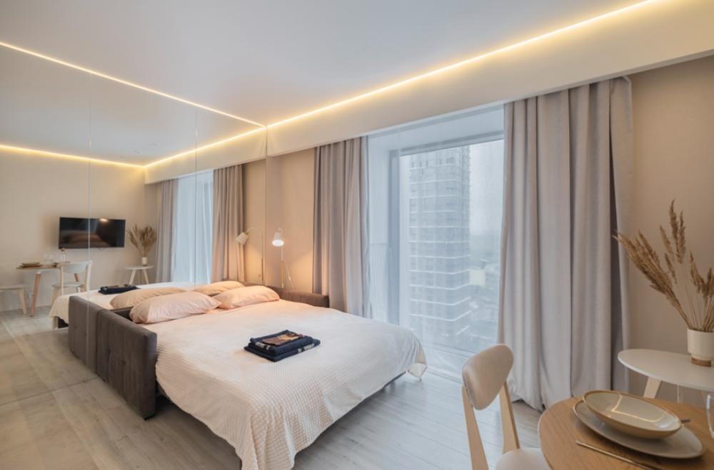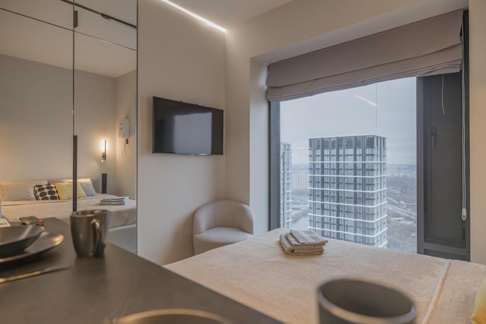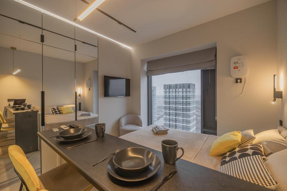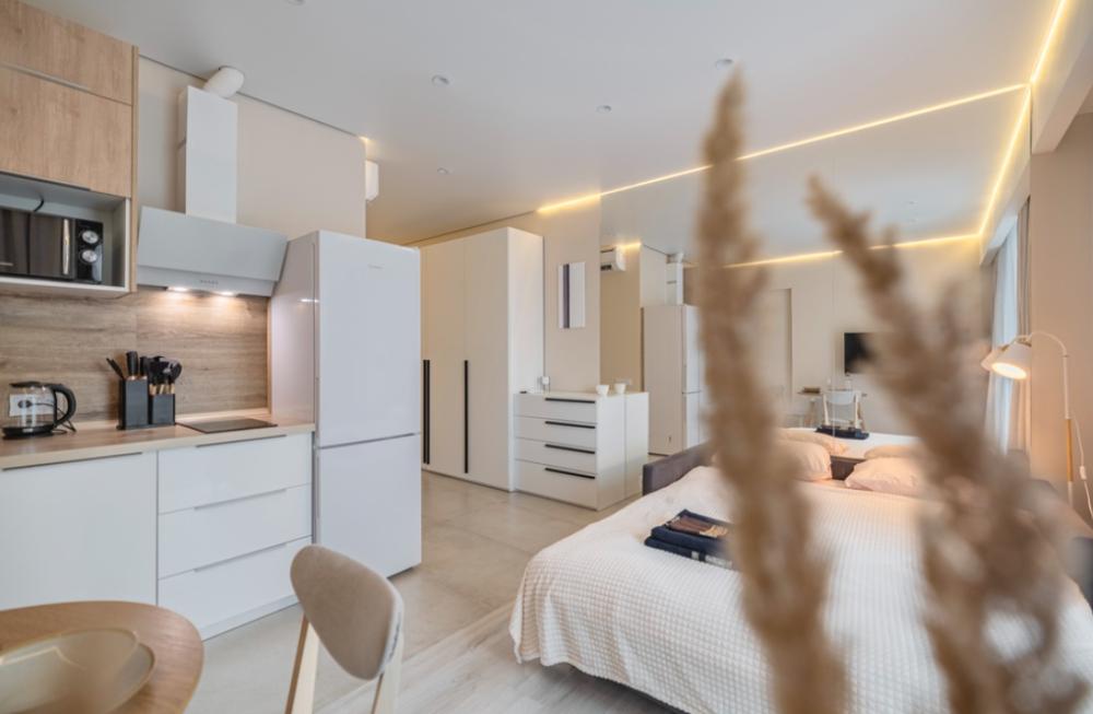 Просторная, светлая квартира - студия с остеклением в пол и свежим дизайнерским ремонтом с интересными и стильными акцентами в спокойных тонах. В апартаментах комфортно может разместиться до 2-ух гостей. Широкая двуспальная кровать с супер удобным ортопедическим матрасом. А так же, все, что нужно, что бы чувствовать себя как дома: • Смарт ТВ с Алисой • Кондиционер • Вай-фай • Центральная система отопления • Стиральная/сушильная машина • Полноценная гардеробная комната Кухонная зона оборудована всем необходимым: • Электрическая плита • Духовой шкаф • Микроволновая печь • Чайник • Вытяжка • Кухонные принадлежности На близлежащей территории ЖК, есть все для комфортного пребывания в наших апартаментах: • Кофейни • Продуктовые магазины • Салоны красоты Так же, в доме присутствует зона лобби для деловых встреч или встречи с друзьями, зона коворкинга В шаговой доступности находится огромный торговый центр «Vegas Crocus City» (20 минуты пешком, 10 минут на авто); станция МЦД Трикотажная (5 минут пешком). Апартаменты встретят вас с радостью, уютные домашние тапочки, ванная комната, оборудованная всем необходимым, одноразовые гигиенические наборы включающие в себя зубную щетку, пасту, гель для душа и шампунь. С нетерпением ждем вас, дорогие гости. Добро пожаловать в АРАRТ СОNТINЕNТАL !