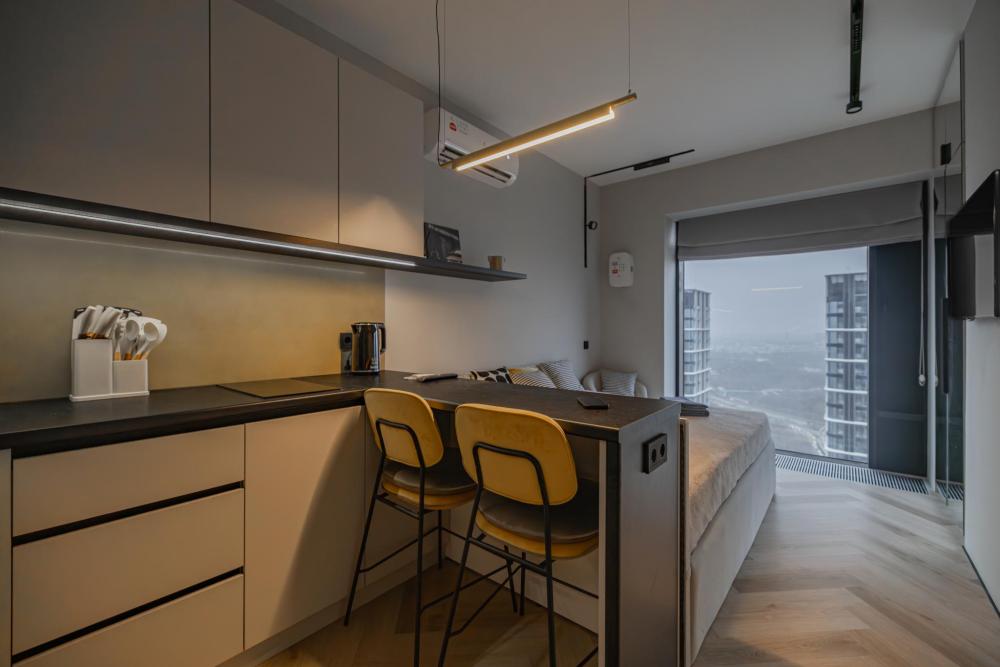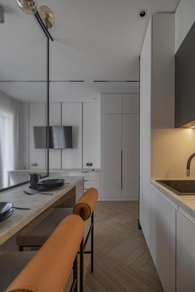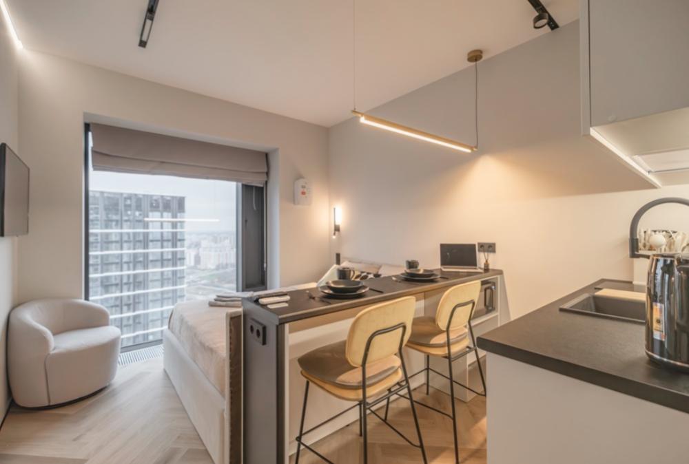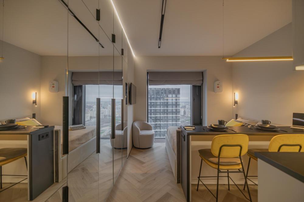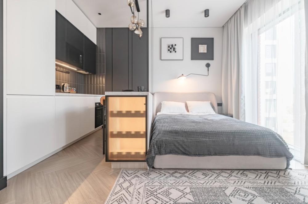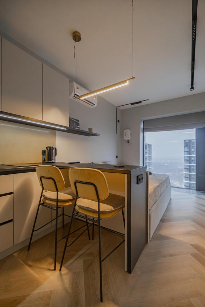Просторная, светлая квартира - студия с остеклением в пол и свежим дизайнерским ремонтом с интересными и стильными акцентами в спокойных тонах. В апартаментах комфортно может разместиться до 2-ух гостей. Широкая двуспальная кровать с супер удобным ортопедическим матрасом. А так же, все, что нужно, что бы чувствовать себя как дома: • Смарт ТВ с Алисой • Кондиционер • Вай-фай • Центральная система отопления • Стиральная/сушильная машина • Полноценная гардеробная комната Кухонная зона оборудована всем необходимым: • Электрическая плита • Духовой шкаф • Микроволновая печь • Чайник • Вытяжка • Кухонные принадлежности На близлежащей территории ЖК, есть все для комфортного пребывания в наших апартаментах: • Кофейни • Продуктовые магазины • Салоны красоты Так же, в доме присутствует зона лобби для деловых встреч или встречи с друзьями, зона коворкинга В шаговой доступности находится огромный торговый центр «Vegas Crocus City» (20 минуты пешком, 10 минут на авто); станция МЦД Трикотажная (5 минут пешком). Апартаменты встретят вас с радостью, уютные домашние тапочки, ванная комната, оборудованная всем необходимым, одноразовые гигиенические наборы включающие в себя зубную щетку, пасту, гель для душа и шампунь. С нетерпением ждем вас, дорогие гости. Добро пожаловать в АРАRТ СОNТINЕNТАL !