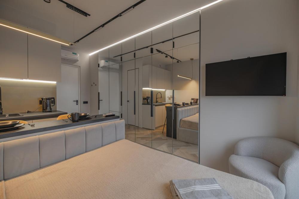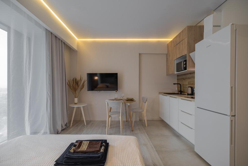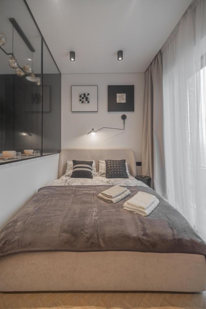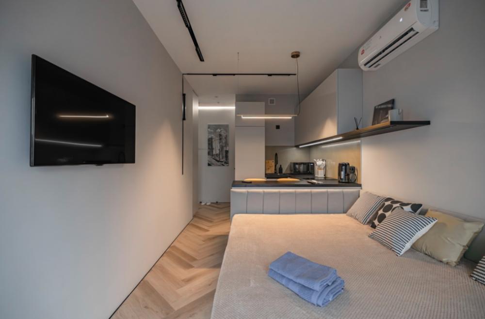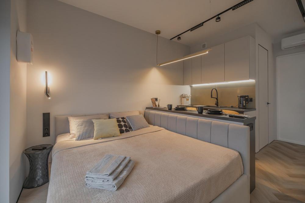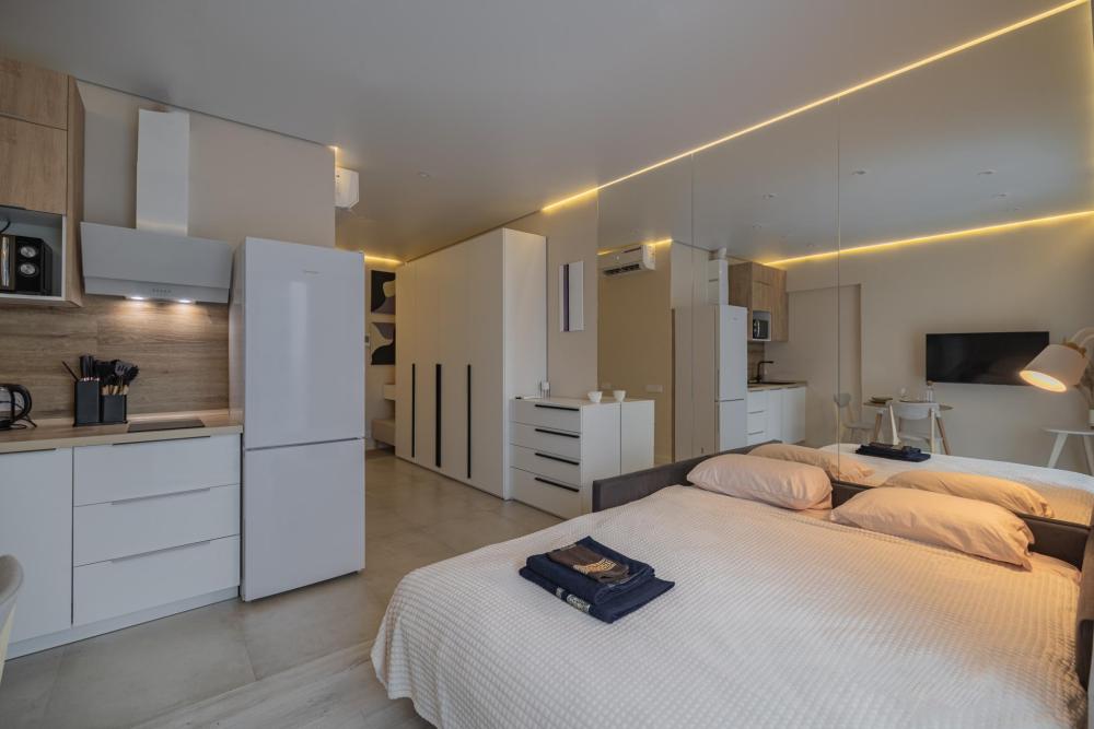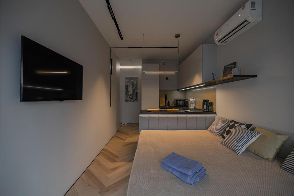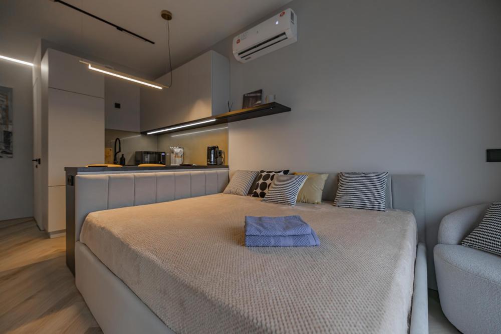 В апартаментах комфортно может разместиться до 2-ух гостей. Широкий двуспальный диван комфортней большинства кроватей. А так же, все, что нужно, что бы чувствовать себя как дома: • Смарт ТВ • Кондиционер • Вай-фай • Центральная система отопления • Стиральная машина
