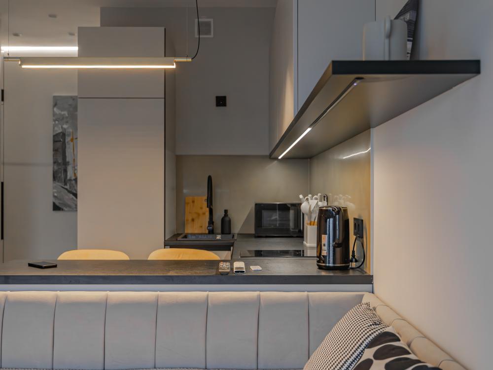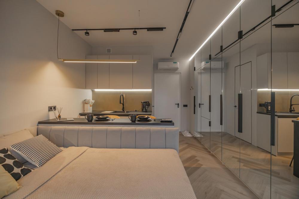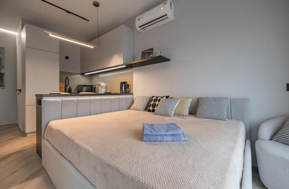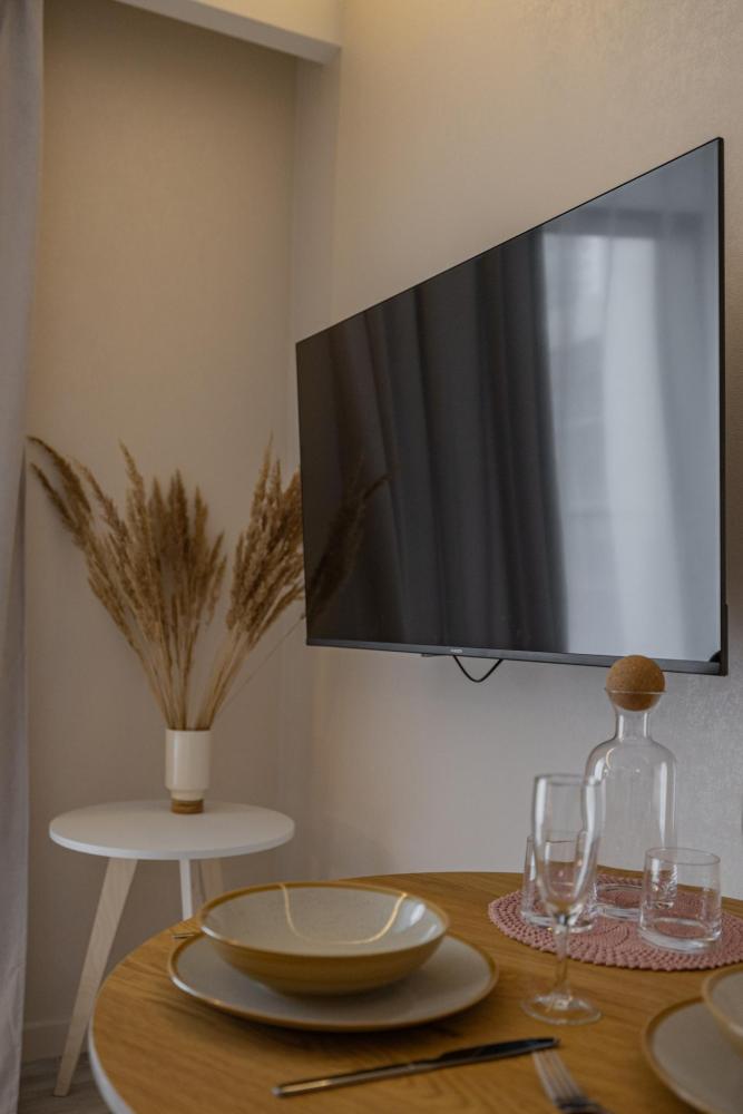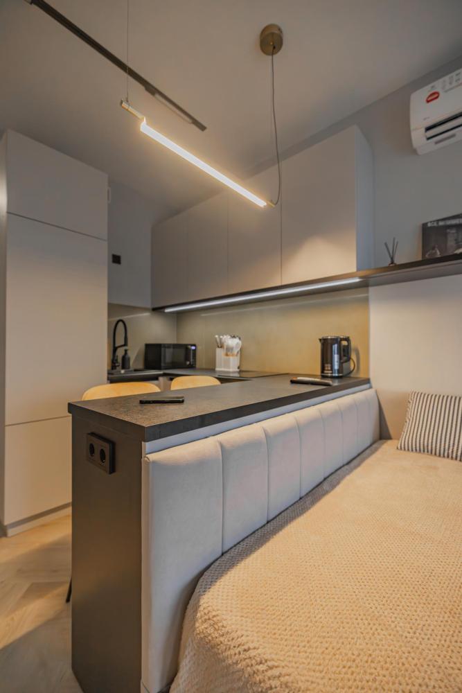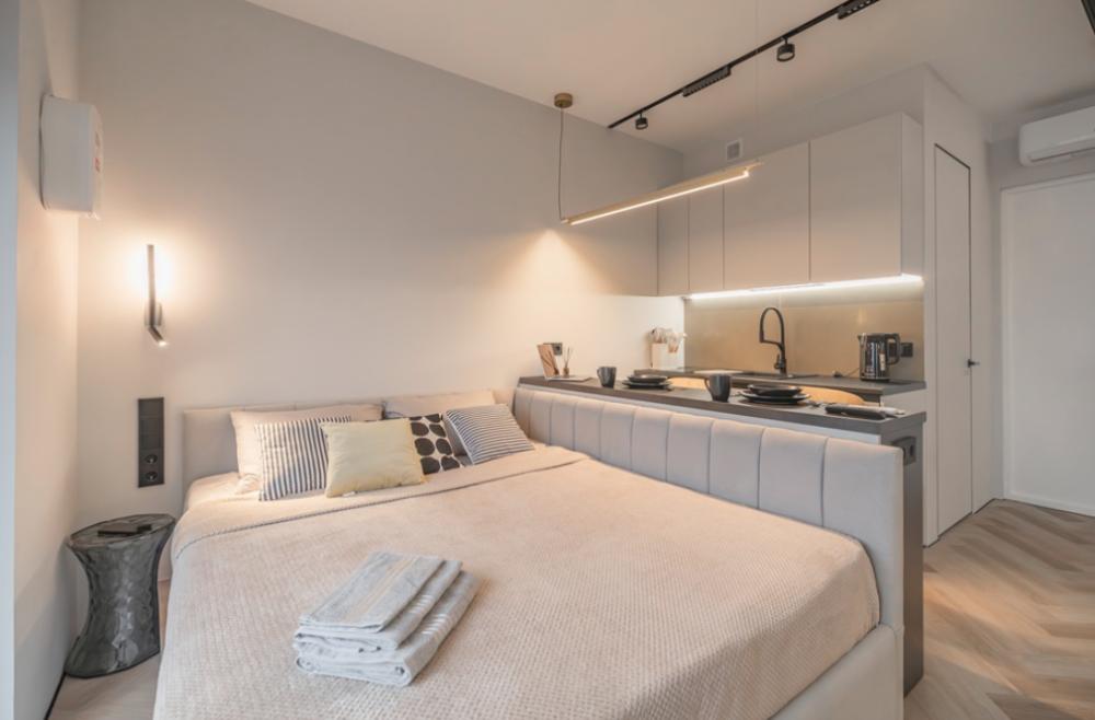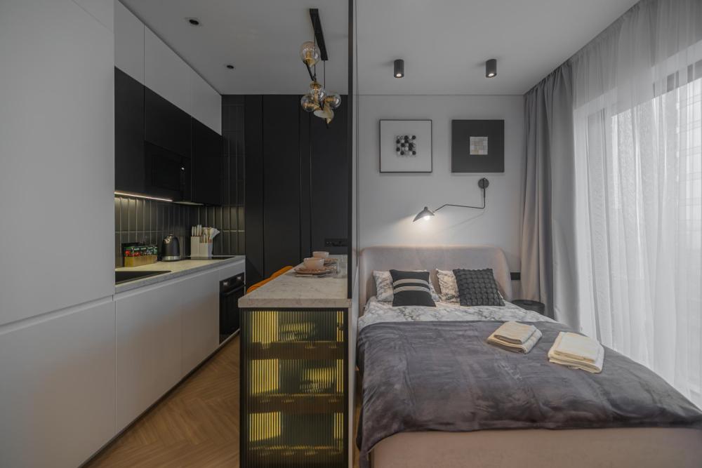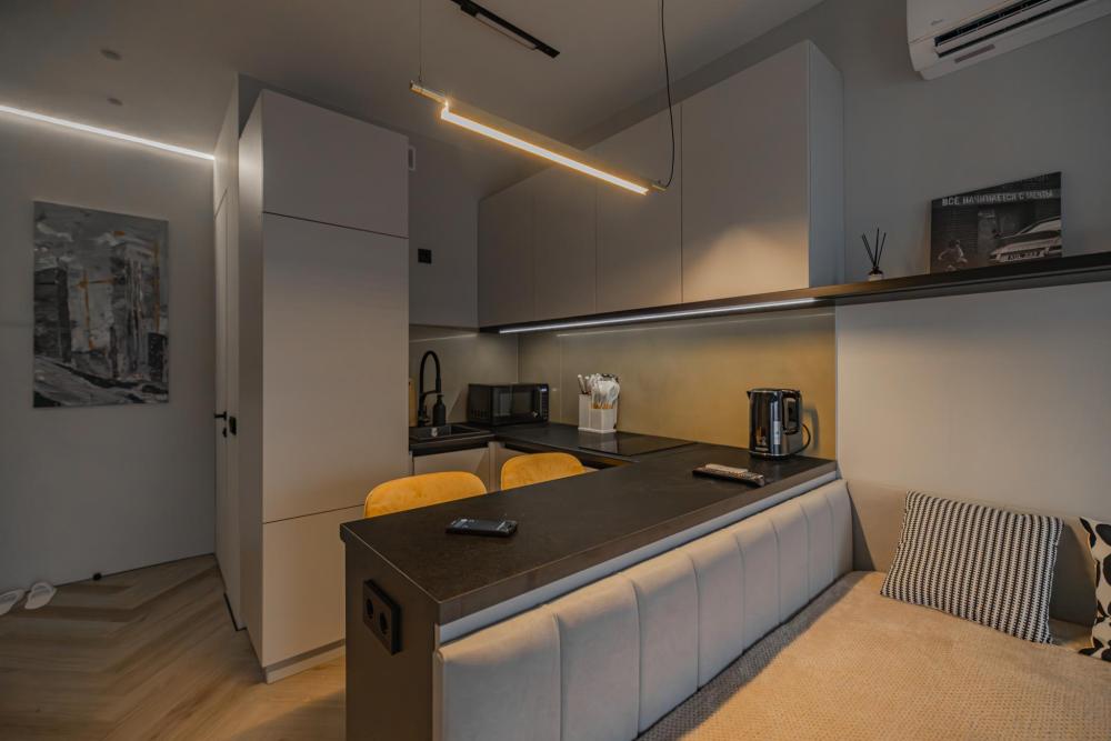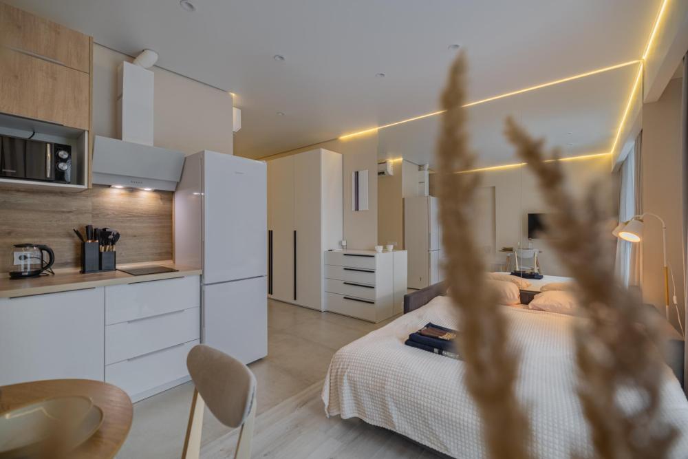 В апартаментах комфортно может разместиться до 2-ух гостей. Широкий двуспальный диван комфортней большинства кроватей. А так же, все, что нужно, что бы чувствовать себя как дома: • Смарт ТВ • Кондиционер • Вай-фай • Центральная система отопления • Стиральная машина