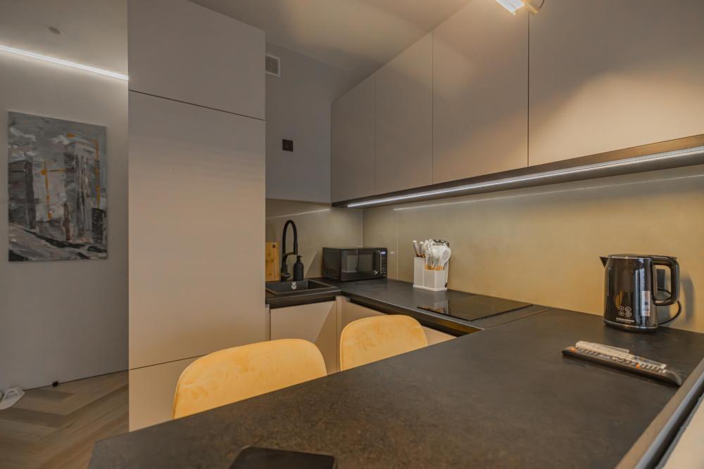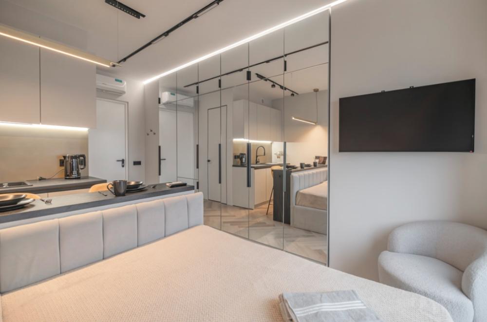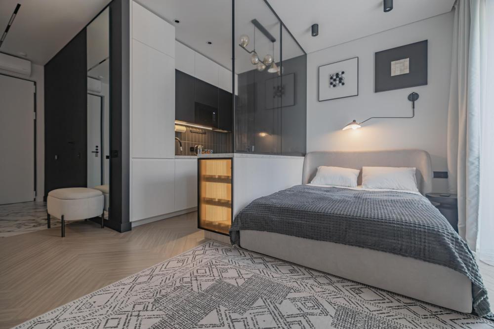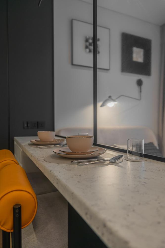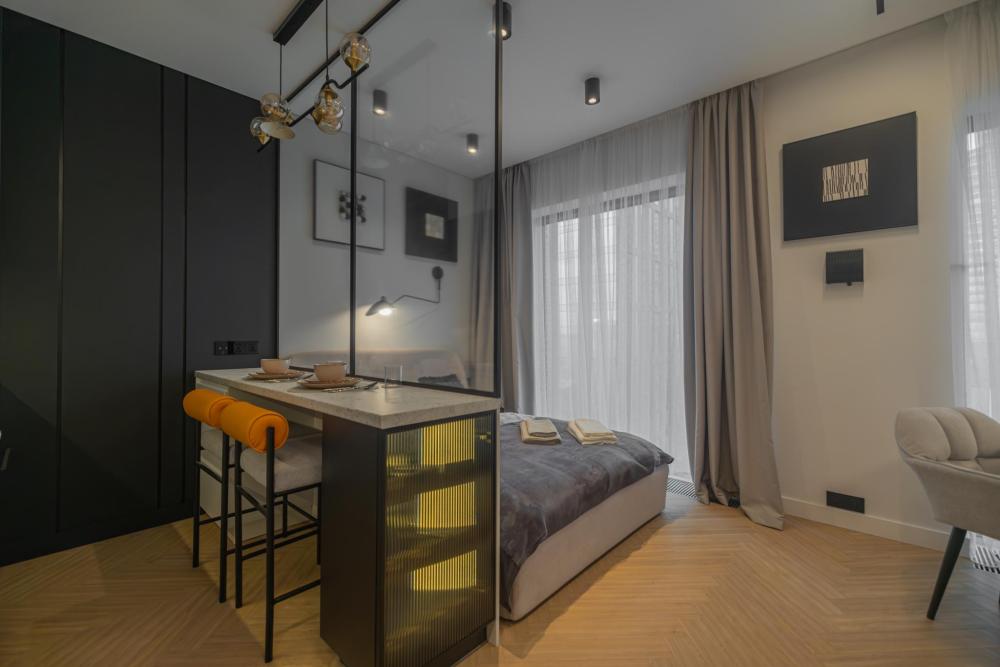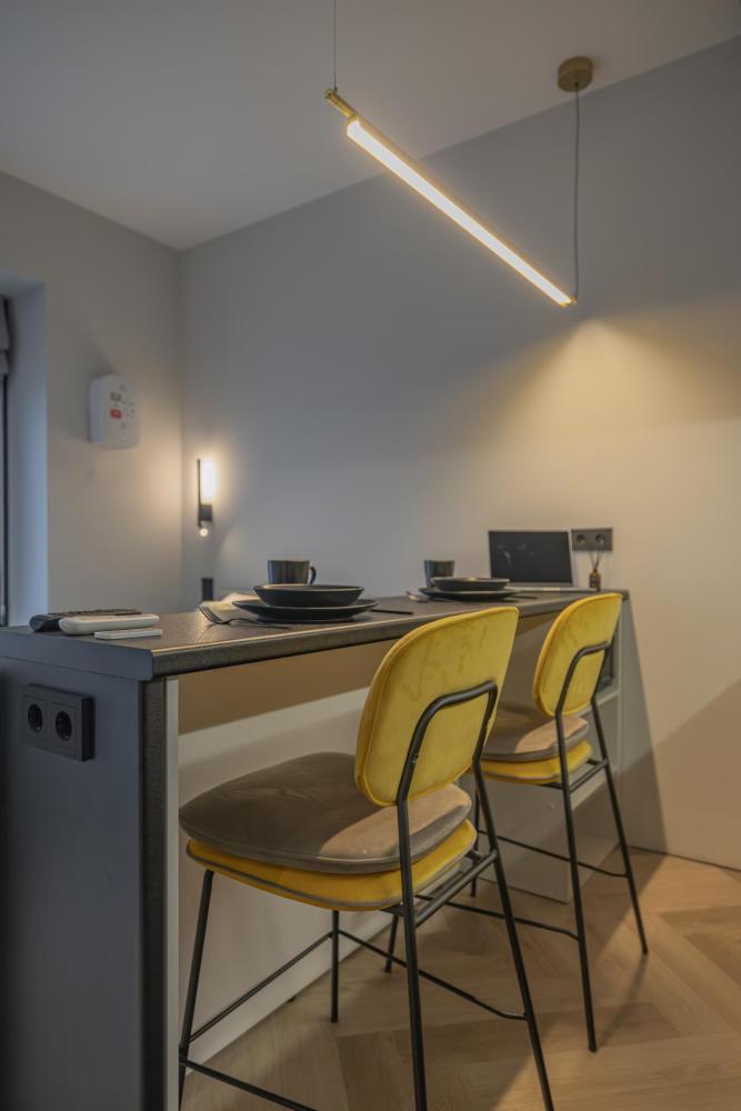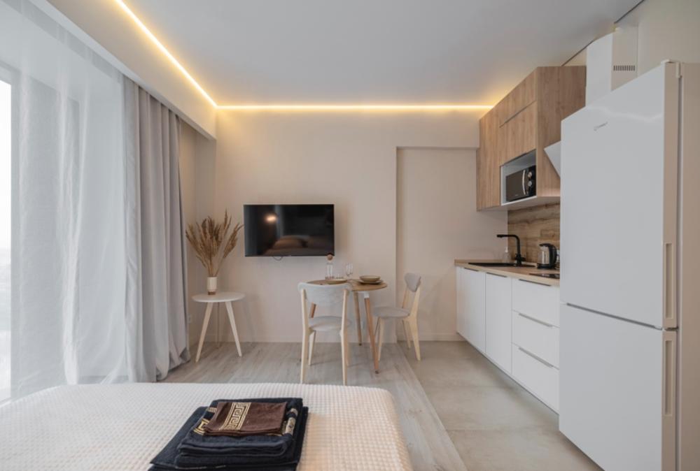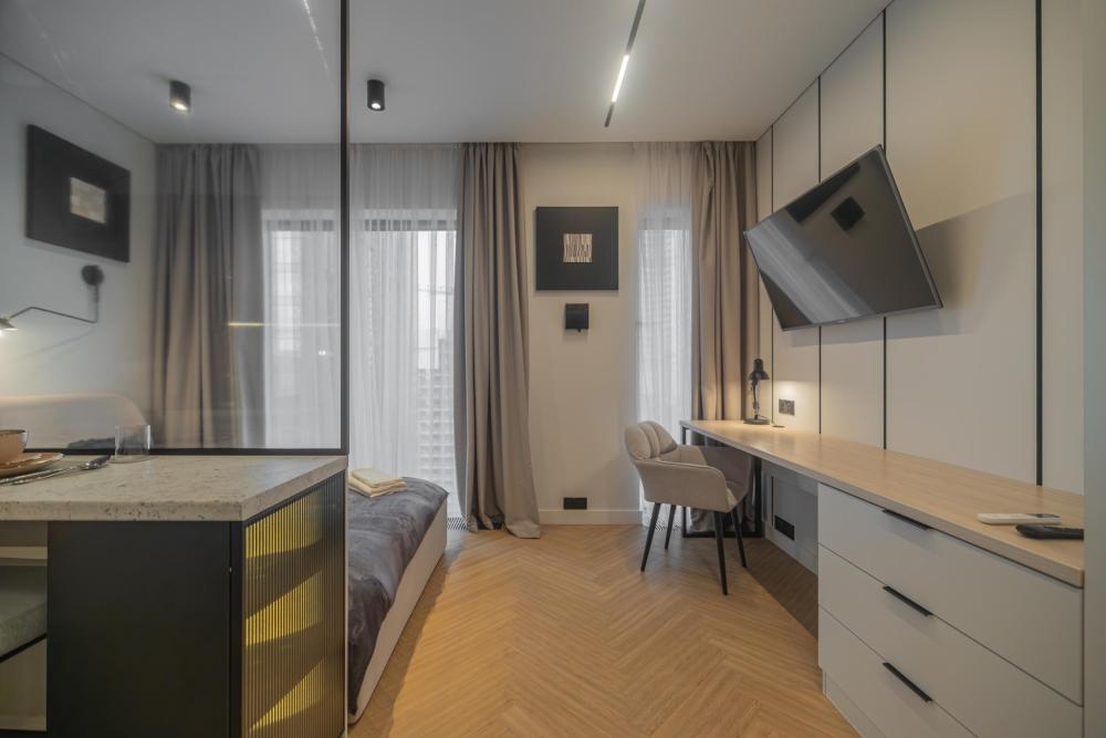 В апартаментах комфортно может разместиться до 2-ух гостей. Широкий двуспальный диван комфортней большинства кроватей. А так же, все, что нужно, что бы чувствовать себя как дома: • Смарт ТВ • Кондиционер • Вай-фай • Центральная система отопления • Стиральная машина