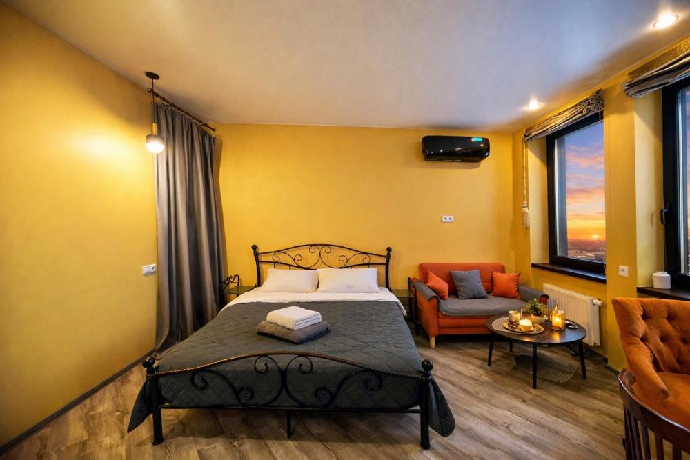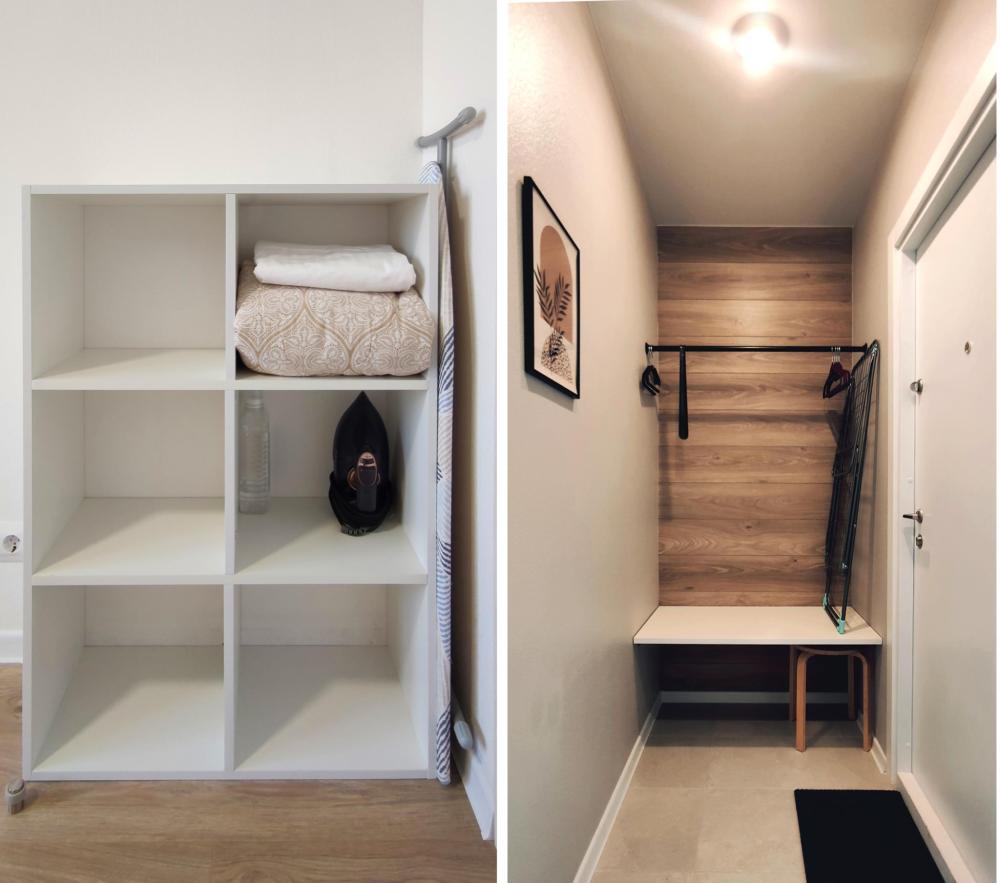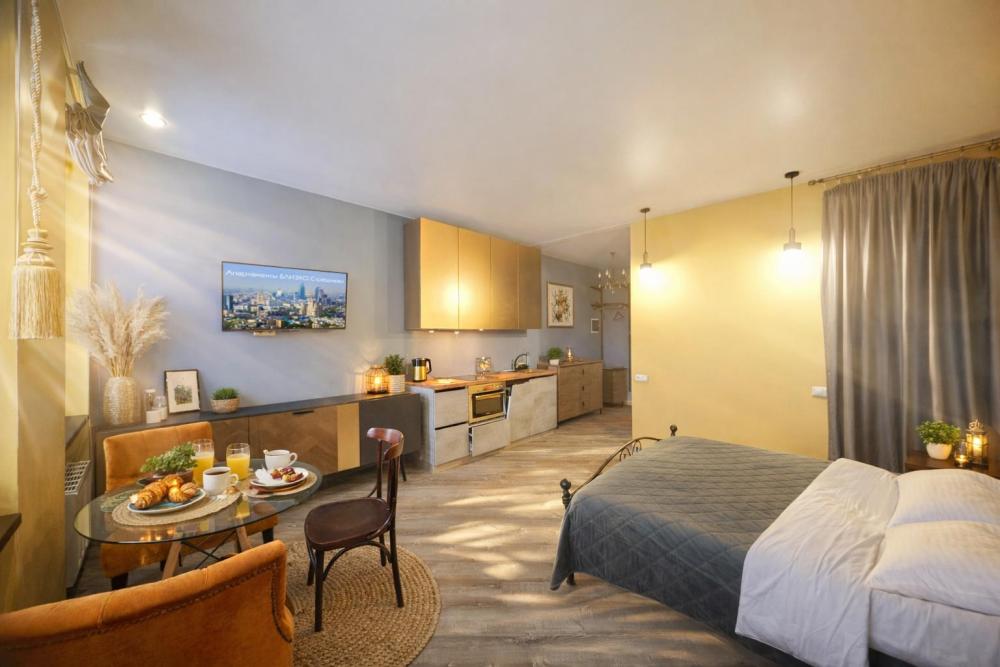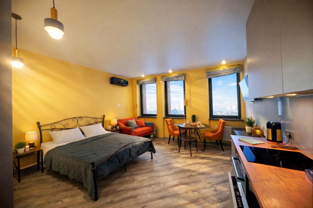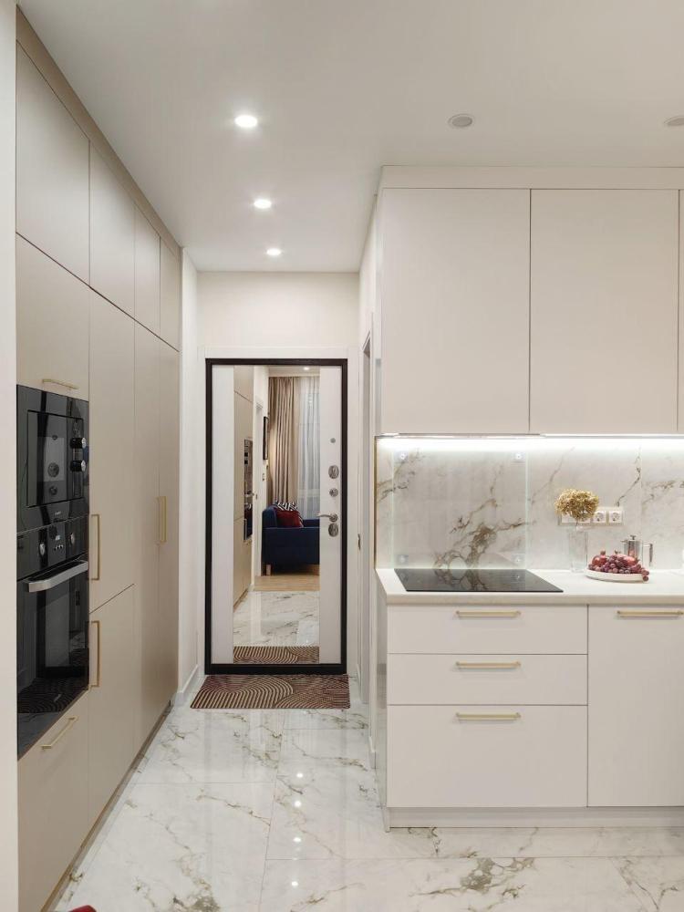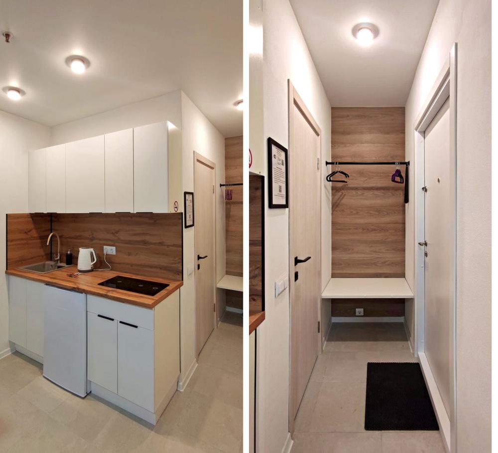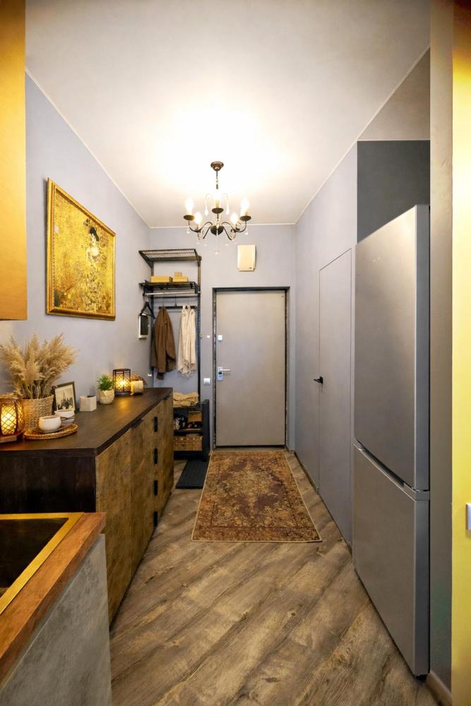 Широкая кровать 160×200 с новым анатомическим матрасом Раскладной диван 130×200 — удобно для 1 взрослого или 2 детей Полноценная кухня с посудой Духовка с СВЧ Посудомоечная машина Фильтр для питьевой воды Стиральная машина с сушкой Сплит система Smart TV Фен, утюг, гладильная доска Просторная гардеробная и много мест хранения