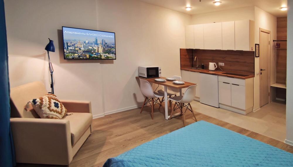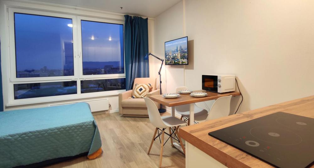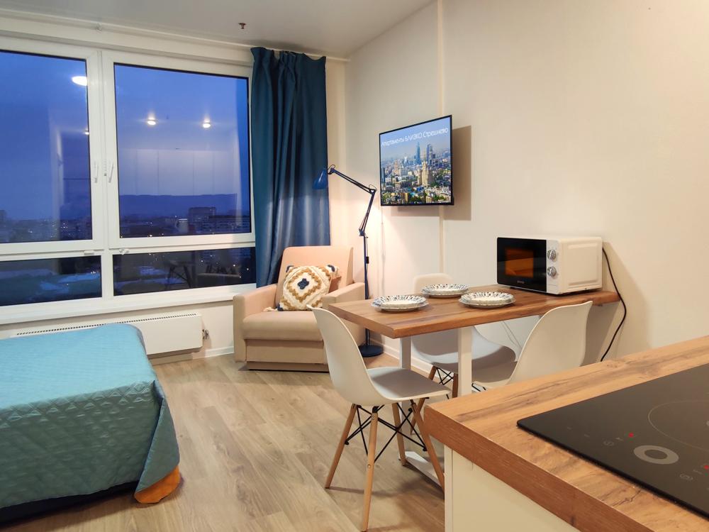 Красивый панорамный вид на Москву с высоты 19 этажа! Апартаменты в Москве БЛИЗКО.Стрешнево для 3х гостей (оптимально для 2х взрослых + 1 ребенок) ой площадкой и беседками для отдыха и работы.