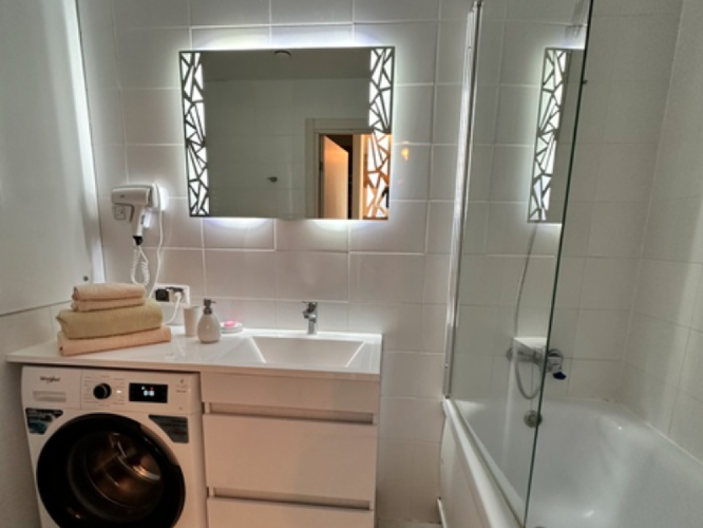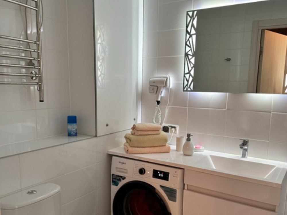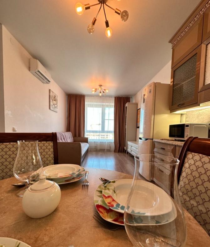 В квартире есть все необходимое для проживания: кухня фабрики "Мария",корпусная мебель "Ангстрем", двухспальная кровать 1600х2000 с ортопедическим матрасом «Аскона», диван *Калинка" с размером спального места 1600х2000. Микроволновая печь LG; Холодильник с морозильной камерой LG; Кондиционер Haier; Электрочайник Midea; Посуда/столовые приборы; Варочная индукционная панель Haier; Стиральная машина Whirlpool ; Телевизор Samsung c большой диагональю; Безлимитный wi-fi; Электросушилка для одежды; Утюг; Гладильная доска; Фен; Гель для душа, шампунь, мыло;