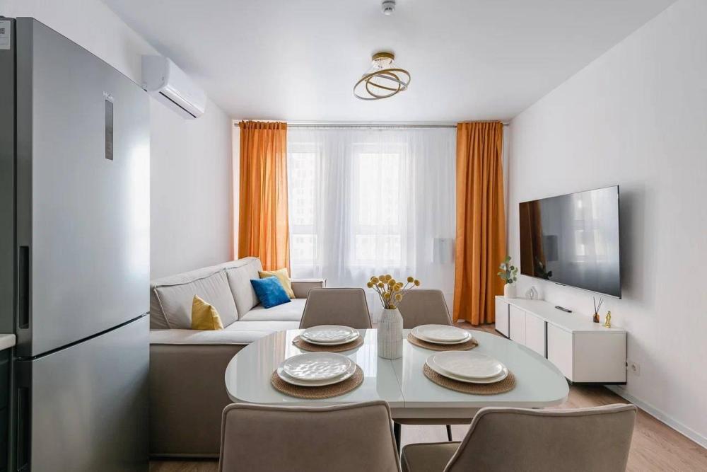 ?Москва, ул. Ленинградское шоссе, 229А, корп. 2 ?До 4 гостей: По запросу можем предоставить за дополнительную оплату кровать- манеж и стульчик для кормления, если приезжаете с малышом. Спальня: двуспальная кровать (160×200), хлопковое белое постельное белье, утюг и гладильная доска, большой вместительный шкаф. Кухня-гостиная: диван (150×200), хлопковое белое постельное белье, Smart TV, кондиционер, полный набор посуды для комфортного проживания, микроволновка, духовка, холодильник, посудомоечная машина, кофемашина, чай,кофе,печенье Ванная: полотенца, шампунь, гель, фен, зубные наборы, стиральная и сушильная машинка.