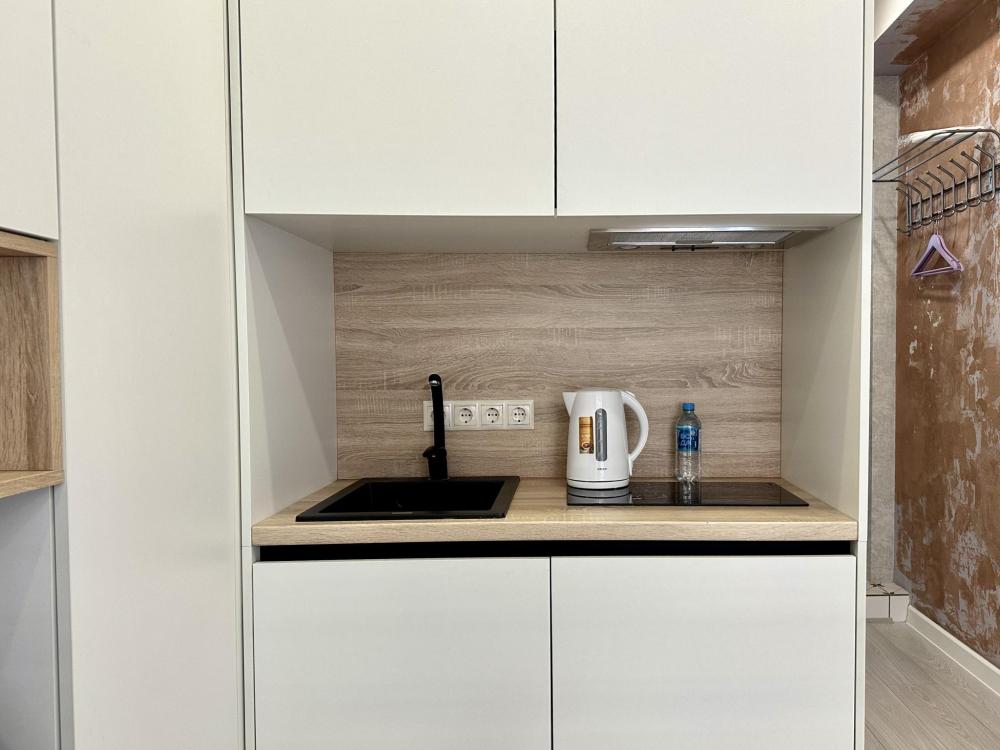 Уютные апартаменты, оборудованные всем необходимым для комфортного проживания. В апартаментах: раскладной диван, компактная кухня с плитой, чайником и посудой, удобный диван-кровать, кондиционер, стиральная машина и современный санузел с душем. Площадь квартиры — 13 м², что делает её идеальной для краткосрочного пребывания.