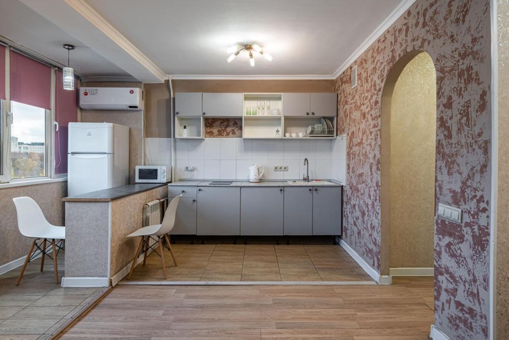 Апартаменты Flat Inn у метро Динамо. Современные апартаменты Flat Inn расположены в доме на Ленинградском проспекте, всего в 3 минутах пешком от станции метро «Динамо» и в шаге от стадиона «ВТБ Арена». Из окон открывается прямой вид на арену и Петровский парк. В квартире предусмотрено всё для комфортного проживания до 4 гостей: кухня-гостиная с обеденной зоной, барной стойкой и бытовой техникой (холодильник, плита, микроволновая печь, чайник, посуда); зона отдыха с раскладным диваном и телевизором; спальное место с двуспальной кроватью и вместительным шкафом; современный санузел с душевой кабиной, стиральной машиной и косметическими наборами Flat Inn. К услугам гостей: Wi-Fi, кондиционер, фен, утюг, гладильная доска.