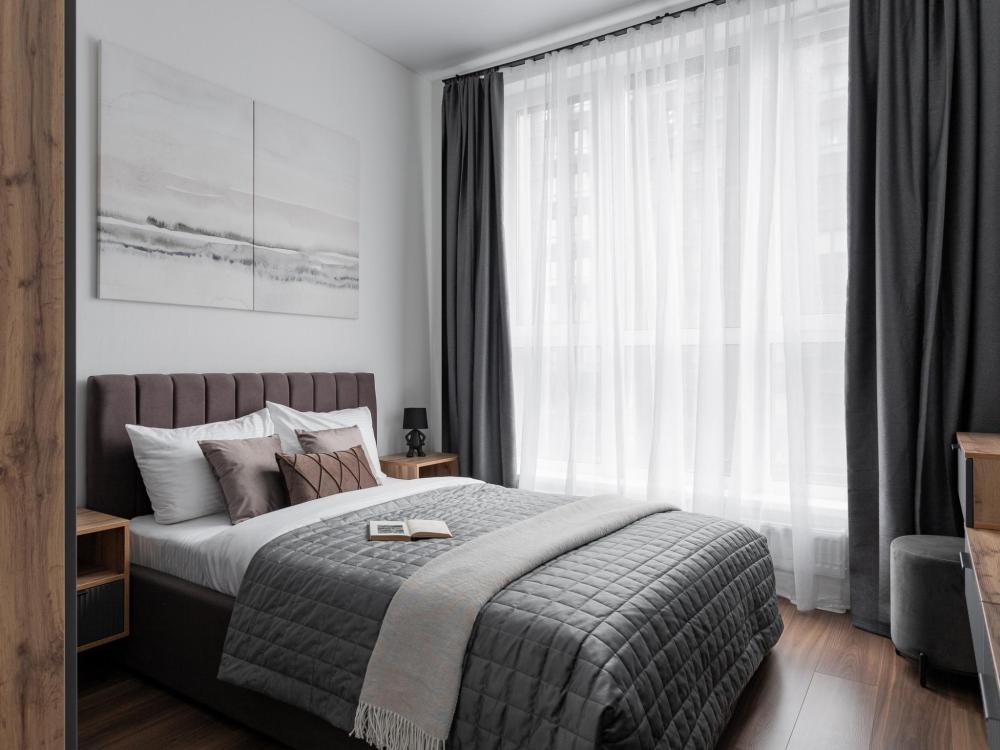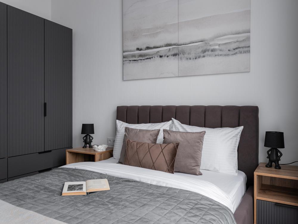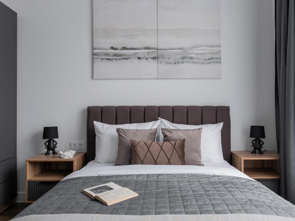 В квартире есть двуспальная кровать с ортопедическим матрасом (160), удобный раскладной диван (140), кухня со всем необходимым. Площадь квартиры 44 м (10 этаж); 4 комфортных спальных места: 1 двуспальная кровать с ортопедическим матрасам, 1 диван-кровать; ванная комната с ванной; безлимитный и бесплатный WiFi; постельное белье и полотенца; посуда и все для приготовления еды; холодильник, стиральная машина, электрическая плита, электрическая духовка, чайник; просторный балкон. Вид во двор и на реку; двор закрытый с детской площадкой; парковка свободная во дворе.