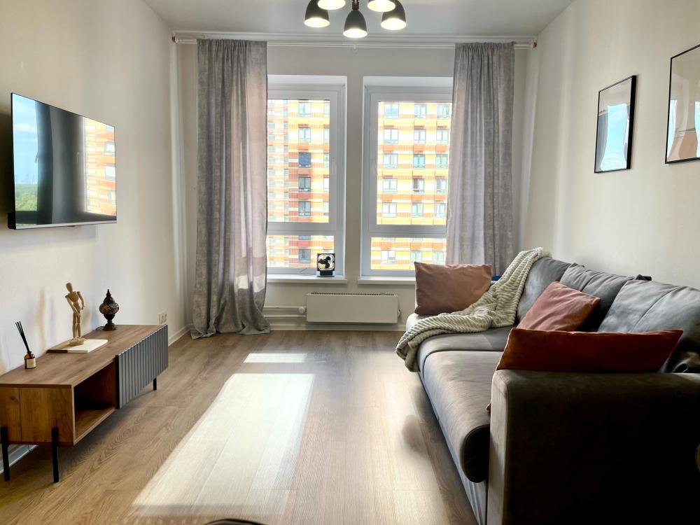 Представляем вашему вниманию уникальную квартиру расположенную в ЖК " Мякинино парк", на живописном полуострове с видом на канал Москвы-реки, в окружении природных водоемов и лесопарков. Для любителей природы утро можно начать с прогулки по сосновому лесу, наслаждаясь вкусным кофе и свежим воздухом. А вечером устройте пикник на берегу Живописной бухты, откуда открывается великолепный вид на закат. Идеально подойдут для семейного отдыха, поездки с друзьями или просто уединённого отдыха в окружении природы и города. РЯДОМ РАСПОЛАГАЕТСЯ : - ТВЦ Крокус Сити - НМИЦ Кардиологии - Рига Молл - Пляж Soho Beach - Кафе и рестораны - Аптеки - Магазины КВАРТИРА ОСНАЩЕНА: - Двуспальная кровать, диван-кровать-2 шт. - Свежее постельное бельё, комплект полотенец для каждого гостя. - Кухня, со всеми кухонными принадлежностями и бытовой техникой (чайник, холодильник, микроволновая печь, духовка, плита, посудомоечная машина, посуда для приготовления и сервировки). - Раздельный санузел с ванной - Стиральная, машина, сушилка, гладильная доска и утюг - Скоростной wi-fi - Smart-TV. Стоимость проживания зависит от количества гостей. В квартире могут разместиться 6 человек. НАШИ ПРЕИМУЩЕСТВА: - Квартира 100% соответствует фото. - Работаем с командированными и организациями. - Предоставляем по запросу отчетные документы. - Оснащенность всем необходимым. ПРАВИЛА ЗАСЕЛЕНИЯ: - Расчетное время заезда с 15:00 - Расчетное время выезда до 12:00 - Возвратный залог 5000 рублей - Дети до 18 лет могут жить только с родителями Условия раннего заселения и позднего выезда оговариваются индивидуально. БЕСКОНТАКТНОЕ ЗАСЕЛЕНИЕ Во всех наших квартирах предусмотрено самостоятельное удаленное заселение при помощи технологии электронных замков в любое время суток. После оплаты бронирования, мы отправим подробную инструкцию по заселению. КВАРТИРА НЕ ПРЕДОСТАВЛЯЕТСЯ: - для проведения шумных праздников и вечеринок; - для лиц, курящих в помещении и алкогольном /наркотическом опьянении. - проживание с животными запрещено Мы готовы обеспечить индивидуальный подход каждому клиенту, быстро решать любые возникающие вопросы и обеспечивать полное сопровождение всего периода аренды. Остались вопросы? Свяжитесь с нами ответим в любое время суток. Приглашаем Вас в гости ! Команда «MONTY Moscow»