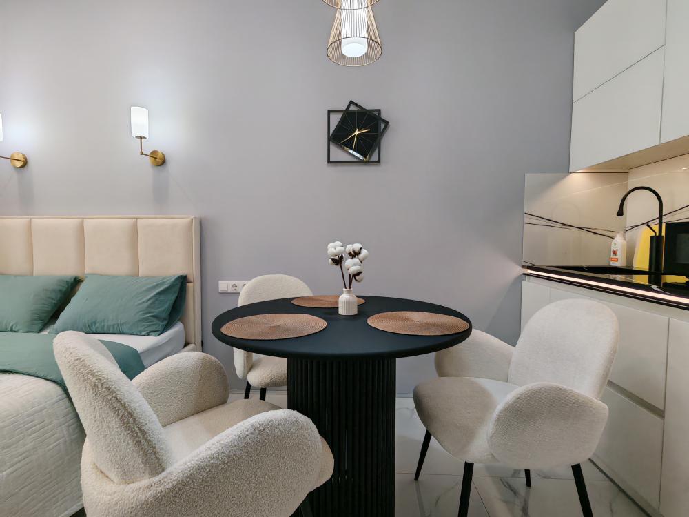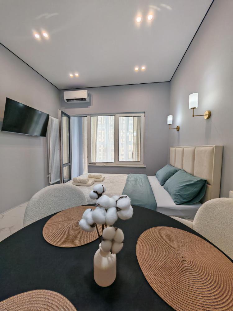 Уютная студия с дизайнерским ремонтом в ЖК бизнес - класса в Хорошёво - Мнёвниках. Квартира прекрасно подойдёт для командированных, туристов, путешественников, романтических свиданий. ДЛЯ КОМФОРТНОГО ПРОЖИВАНИЯ НАШИ АПАРТАМЕНТЫ ОСНАЩЕНЫ: Мультимедиа: Wi-Fi, Smart TV. Бытовая техника: кондиционер, стиральная машина, кофемашина, плита, холодильник, микроволновая печь, электрочайник, фен, утюг. Удобства: Двуспальная кровать, заправленная свежим постельным бельем и удобное раскладное кресло. Посуда, кухонные принадлежности, свежее постельное белье и мягкие полотенца, средства гигиены.