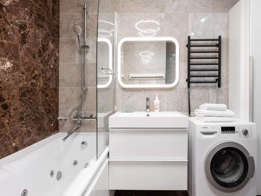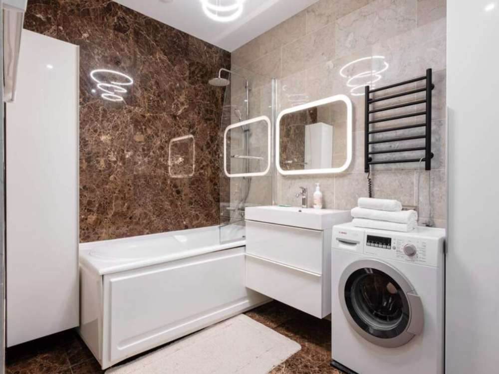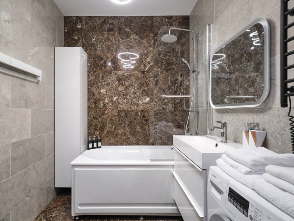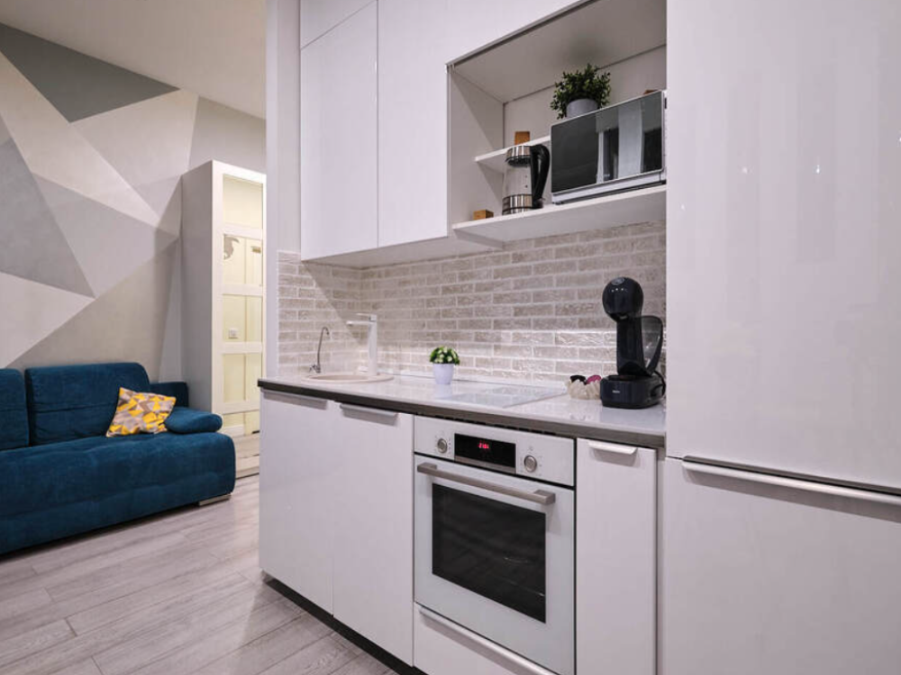 В апартаментах 4 комфортных спальных места:кровать и раскладной диван. Совмещенный санузел с комфортной ванной и тропическим душем. Также предусмотрены средства личной гигиены, полотенца, мыло, шампунь и гель для душа. Кухня полностью оборудована:посуда и столовые приборы, сковородки, кастрюли, холодильник, духовка, микроволновая печь, чайник, бокалы разных типов. Апартаменты оборудованы всей необходимой техникой, а именно : кондиционер с системой климат-контроля, телевизор со Smart-tv, высокоскоростной Wi-Fi, стиральная машина, утюг, гладильная доска, фен, в каждой комнате шторы black-out.