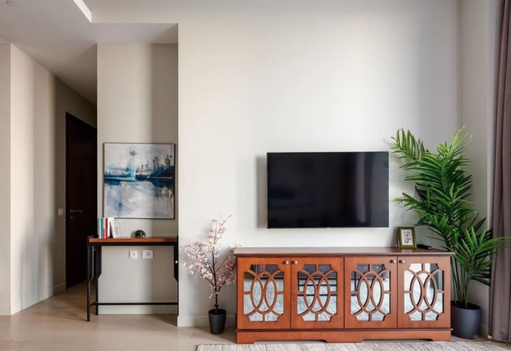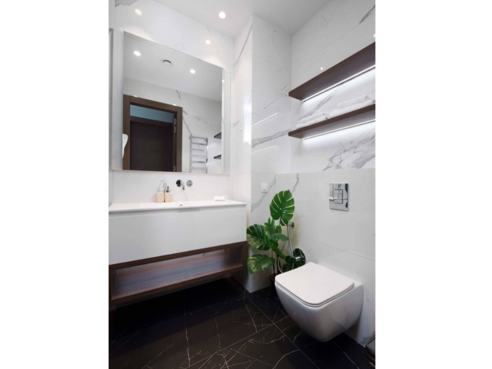 В апартаментах 4 комфортных спальных места:кровать и раскладной диван. Совмещенный санузел с комфортной ванной и тропическим душем. Также предусмотрены средства личной гигиены, полотенца, мыло, шампунь и гель для душа. Кухня полностью оборудована:посуда и столовые приборы, сковородки, кастрюли, холодильник, духовка, микроволновая печь, чайник, бокалы разных типов. Апартаменты оборудованы всей необходимой техникой, а именно : кондиционер с системой климат-контроля, телевизор со Smart-tv, высокоскоростной Wi-Fi, стиральная машина, утюг, гладильная доска, фен, в каждой комнате шторы black-out.