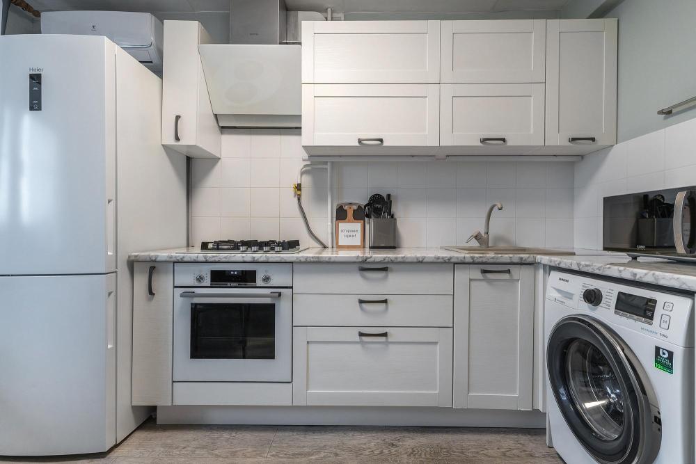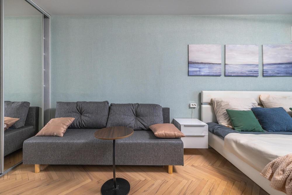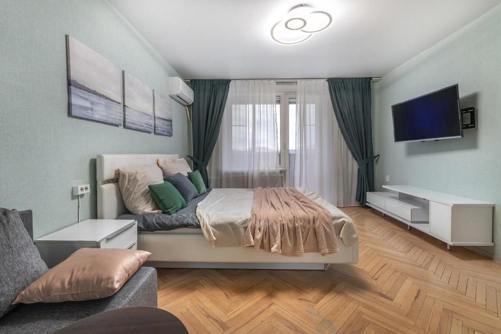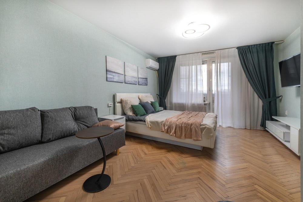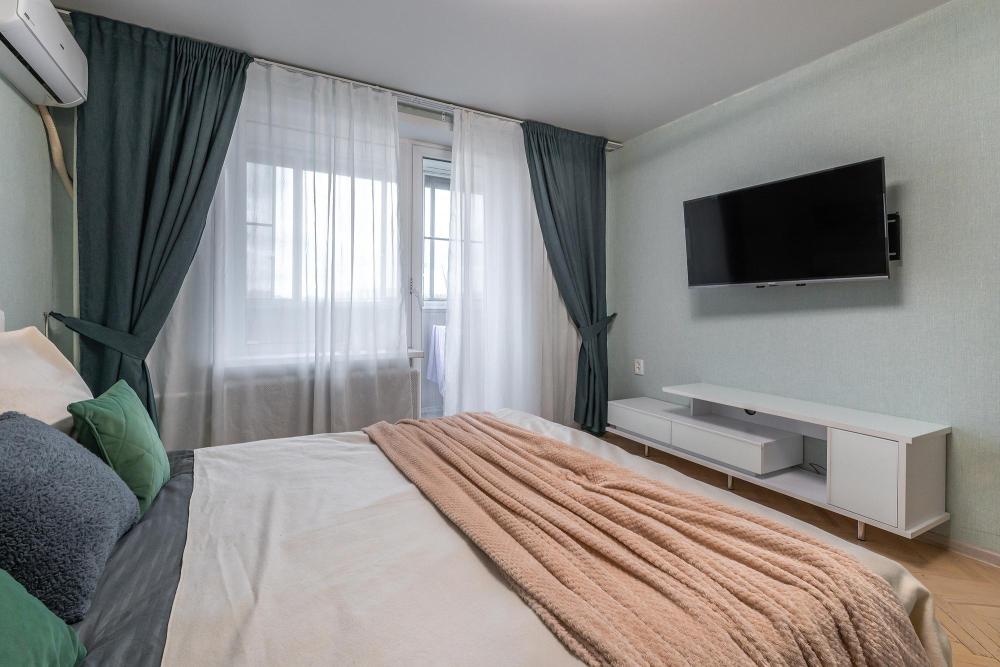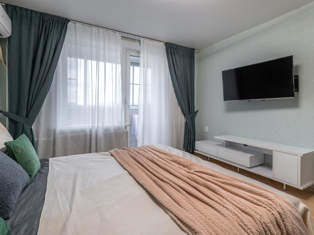 Уютные однокомнатные апартаменты с дизайнерским ремонтом. Гостей ждет просторная комната с двуспальной кроватью и раскладной диван для гостей, полностью оборудованная кухня и современная техника. Высокоскоростной Wi-Fi (500 Мб/с) для работы и развлечений, телевизор с кабельным ТВ (130 каналов, включая детские). Вся необходимая техника: кондиционер, стиральная машина, холодильник, СВЧ-печь, чайник. Белоснежное постельное белье и мягкие махровые полотенца. Новая посуда и вся кухонная утварь.