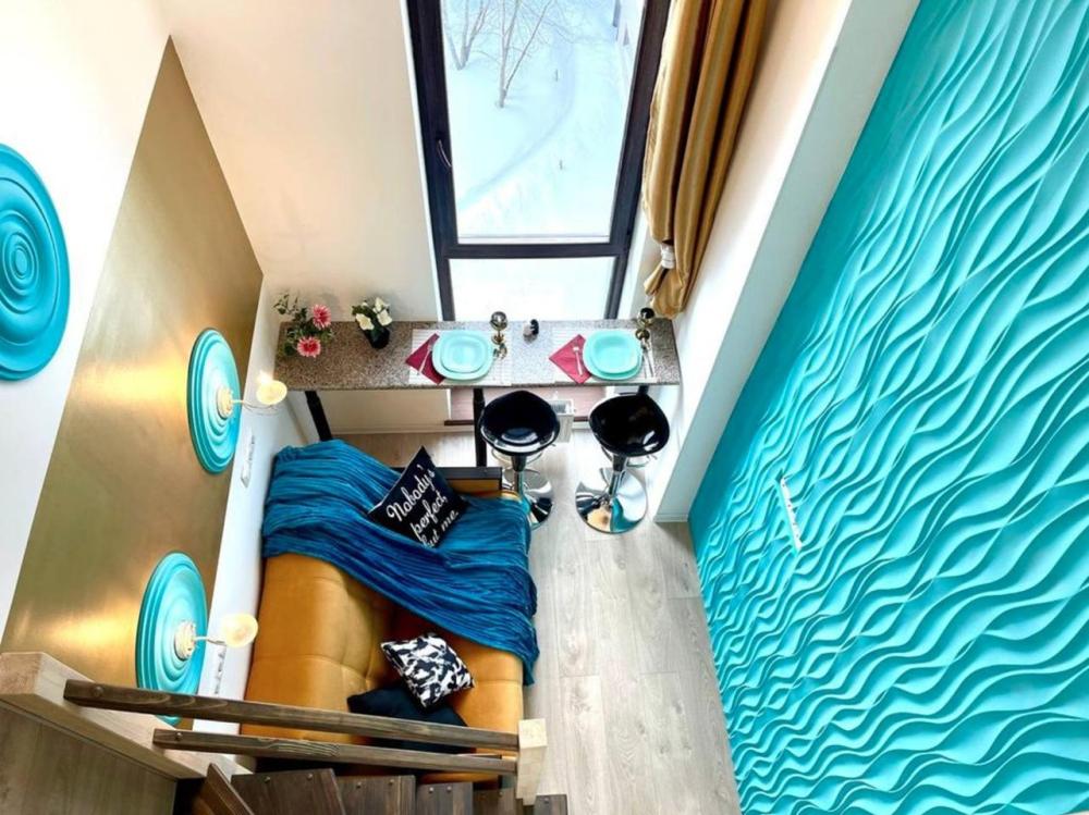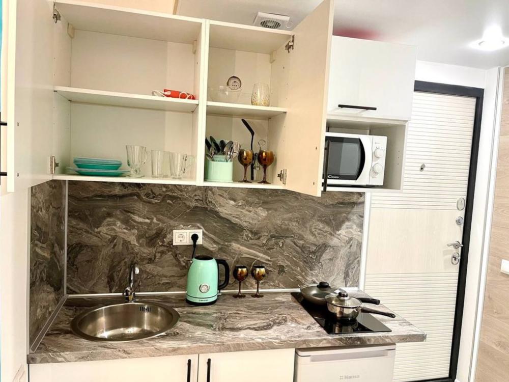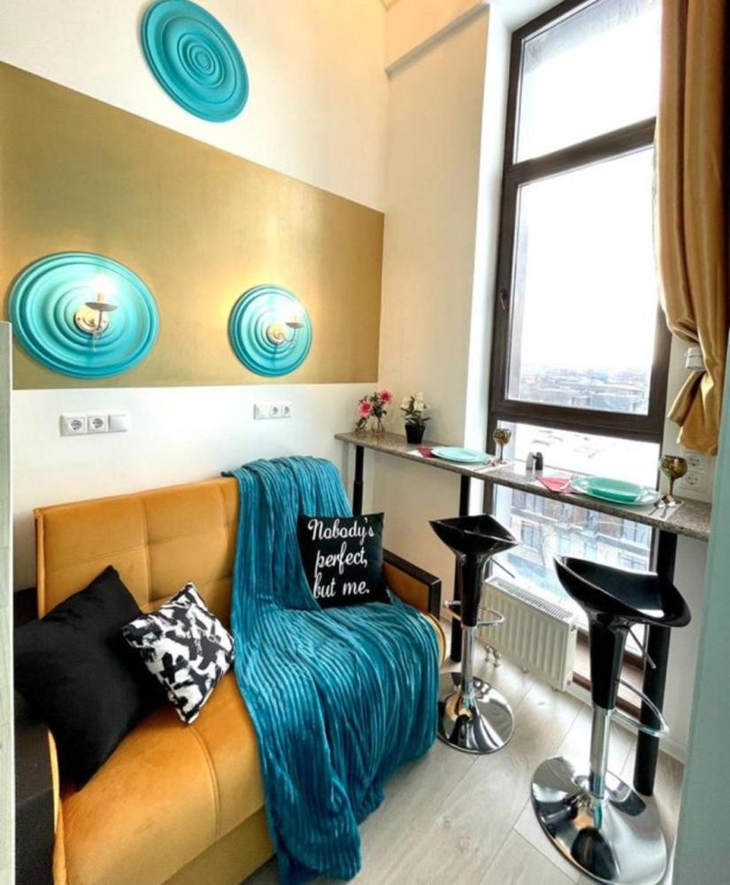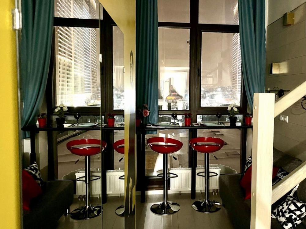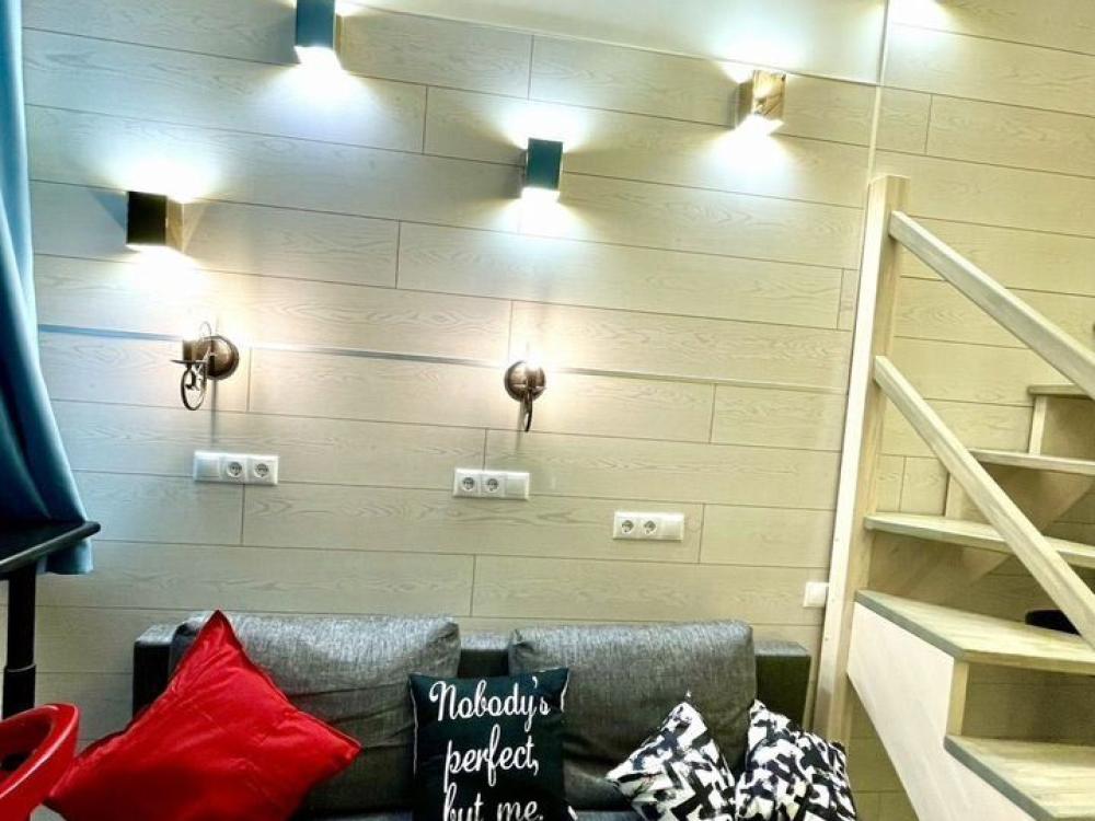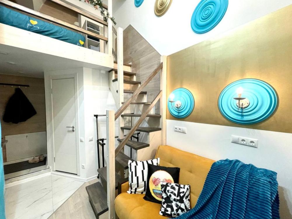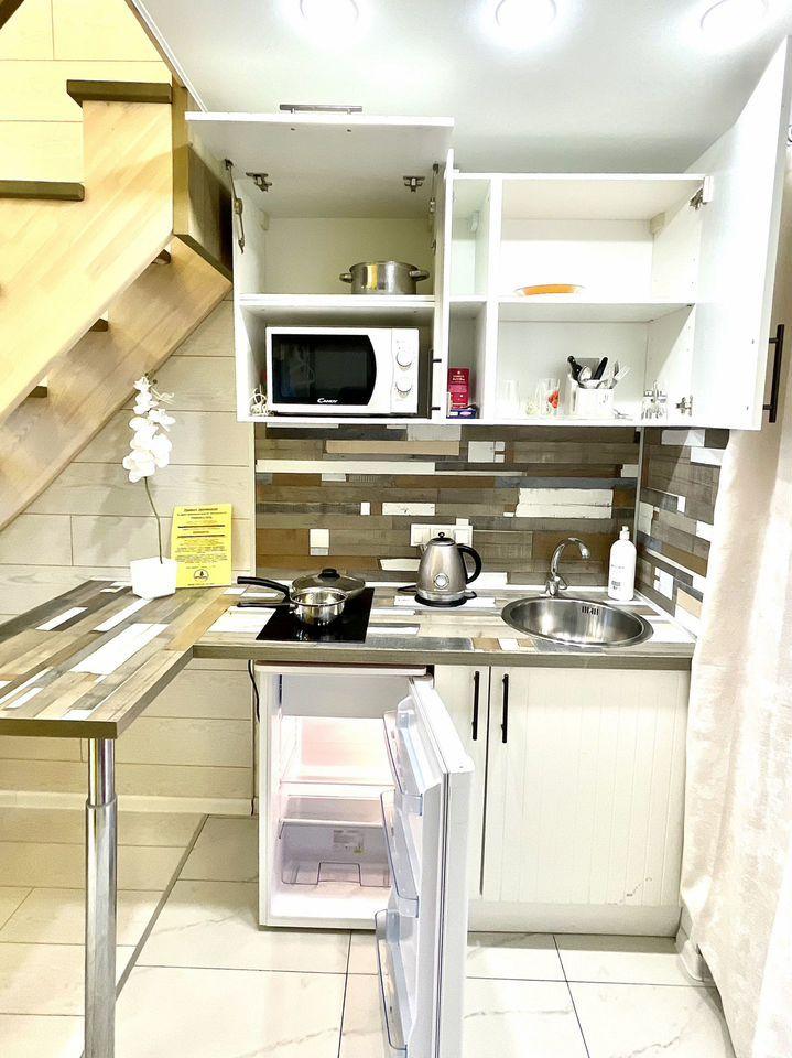 В студии панорамное остекление с красивыми видами. У окна гранитная барная стойка с высокими стульями, за которой можно завтракать или ужинать, наслаждаясь с красивыми видами на вечернюю Москву. На первом этаже есть прихожая и кухня с обеденной зоной. На втором этаже располагается большая уютная спальня с двуспальной кроватью. Напротив кровати висит жк телевизор с кабельными каналами. Квартира оборудована полноценной кухней со всей необходимой техникой и набором посуды. Также имеется душевая комната. Качественный дизайнерский ремонт. Вся мебель и предметы интерьера тщательно подбирались, чтобы ни одна мелочь не была упущена. В студии есть: — необходимый набор посуды — телевизор — двуспальная кровать на 2 этаже — диван длиной 1,3 метра на 1 этаже не раскладывающийся — утюг — стиральная машина — обеденный стол — чайник — холодильник — электрическая плита — микроволновка — прихожая В стоимость включено: — проживание двух человек — чистое постельное бельё — бесплатный wi-fi интернет — цифровое телевидение — отчётные документы Основные спальные места: 2 + 1 место на диване.