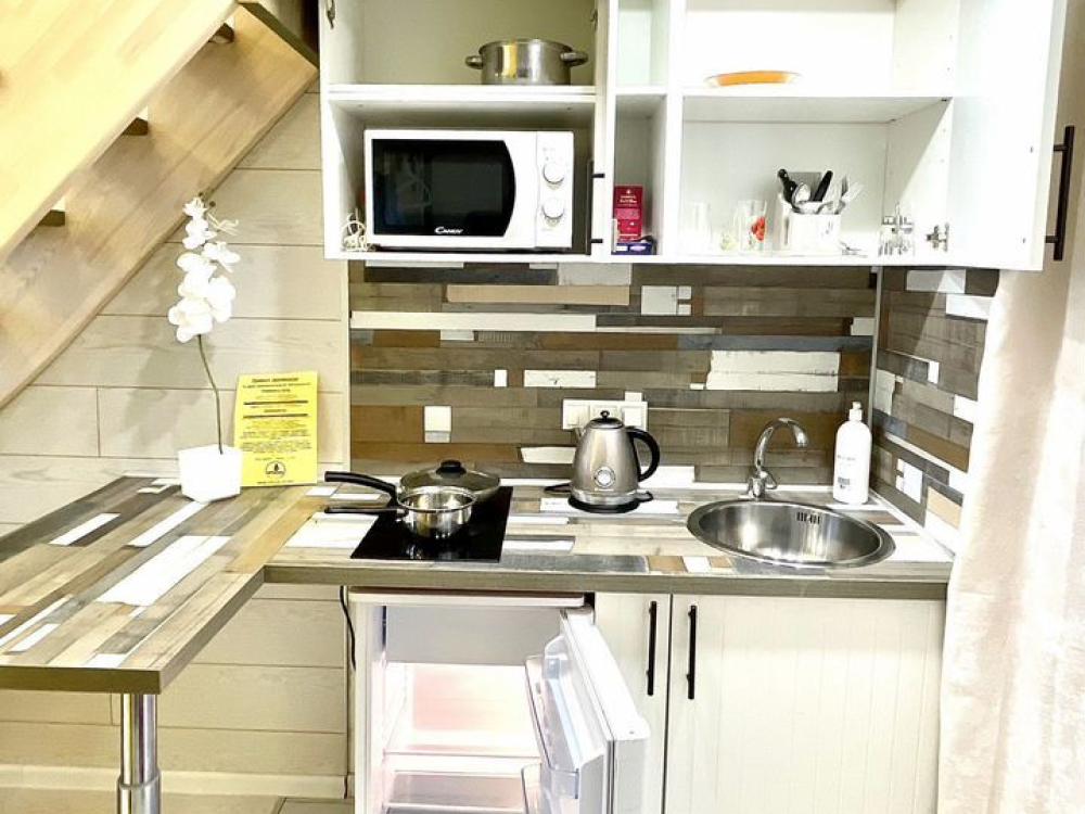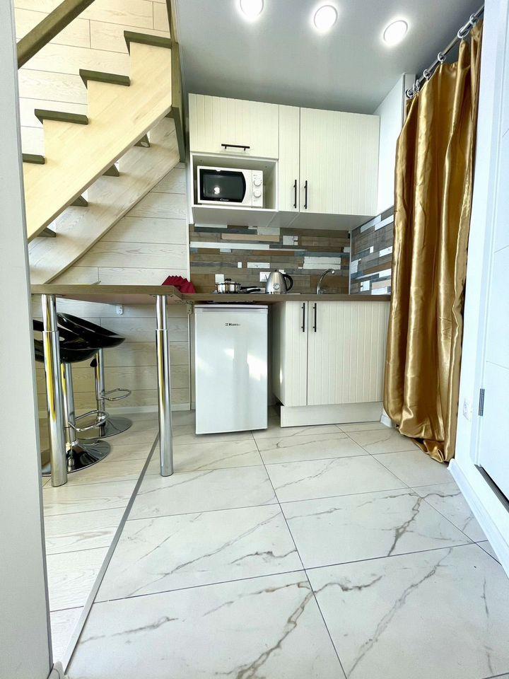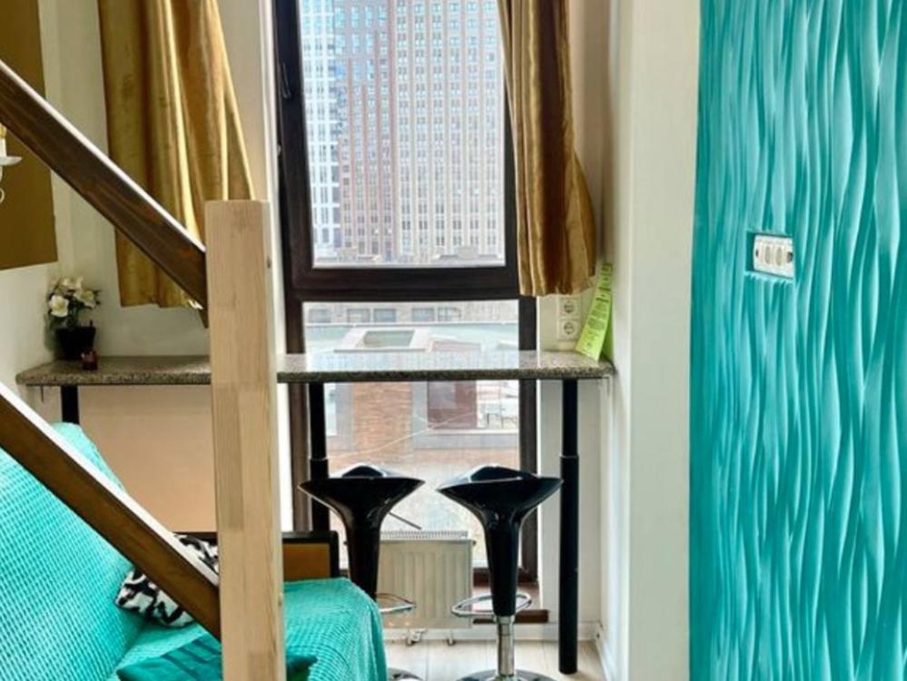 В студии панорамное остекление с красивыми видами. У окна гранитная барная стойка с высокими стульями, за которой можно завтракать или ужинать, наслаждаясь с красивыми видами на вечернюю Москву. На первом этаже есть прихожая и кухня с обеденной зоной. На втором этаже располагается большая уютная спальня с двуспальной кроватью. Напротив кровати висит жк телевизор с кабельными каналами. Квартира оборудована полноценной кухней со всей необходимой техникой и набором посуды. Также имеется душевая комната. Качественный дизайнерский ремонт. Вся мебель и предметы интерьера тщательно подбирались, чтобы ни одна мелочь не была упущена. В студии есть: — необходимый набор посуды — телевизор — двуспальная кровать на 2 этаже — диван длиной 1,3 метра на 1 этаже не раскладывающийся — утюг — стиральная машина — обеденный стол — чайник — холодильник — электрическая плита — микроволновка — прихожая В стоимость включено: — проживание двух человек — чистое постельное бельё — бесплатный wi-fi интернет — цифровое телевидение — отчётные документы Основные спальные места: 2 и 1 место на диване.