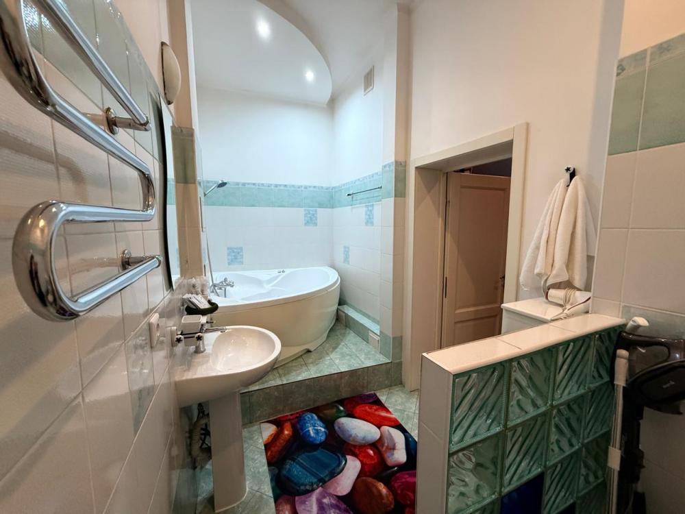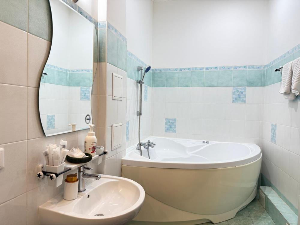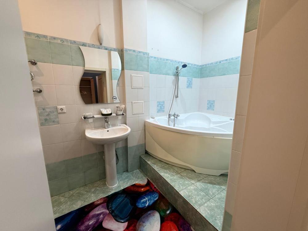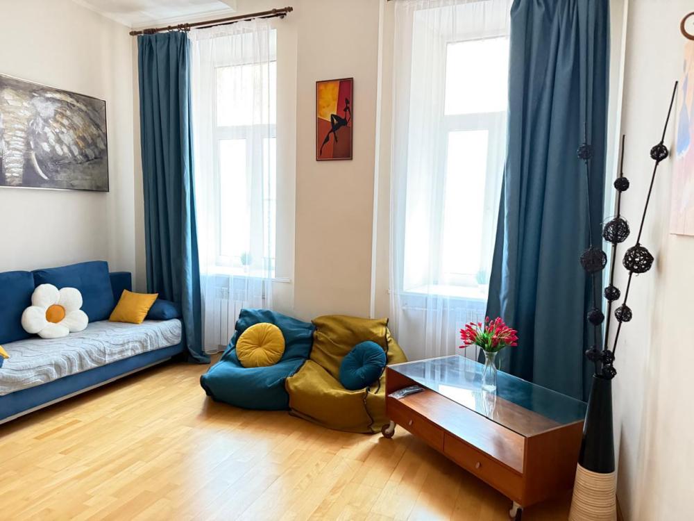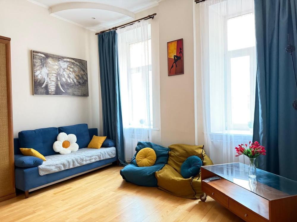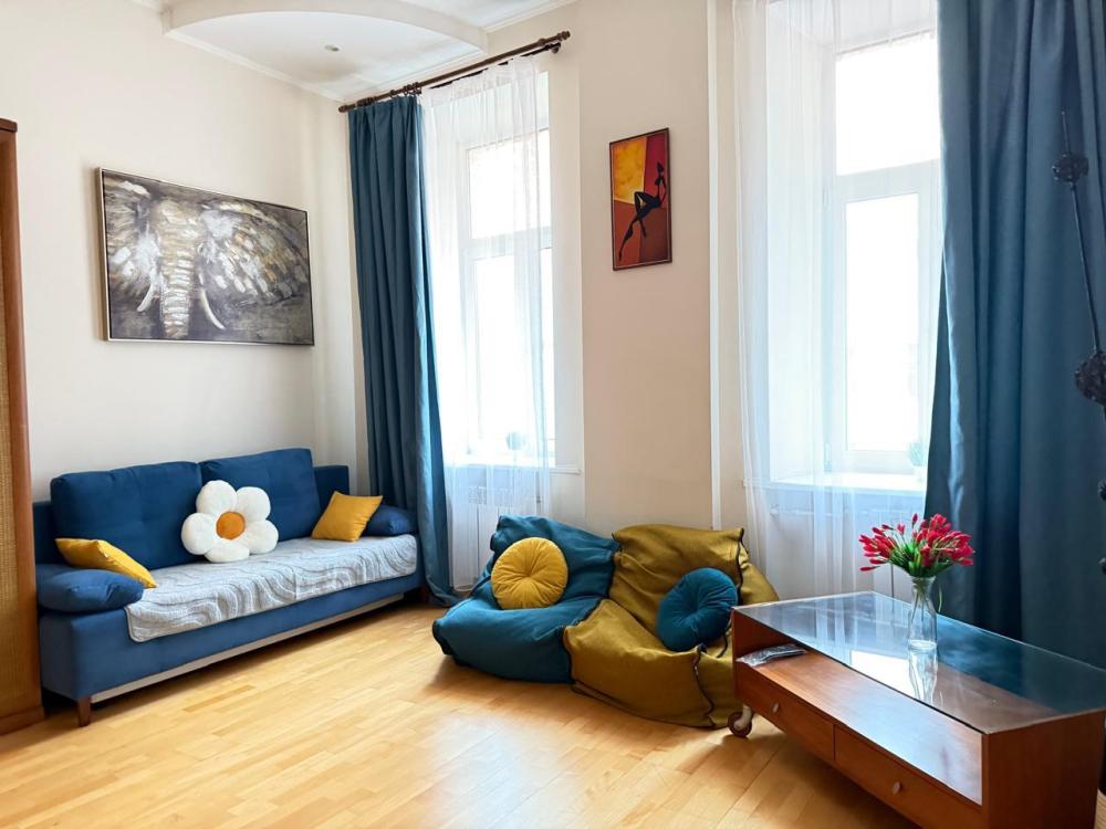 Уютные двухкомнатные апартаменты, оборудованные всем необходимы для комфортного проживания. В апартаментах6 двуспальная кровать, диван, кухня с обеденной зоной, оборудованная всей необходимой техникой и посудой, санузел с ванной. Гостям предоставляются постельное белье и полотенца.